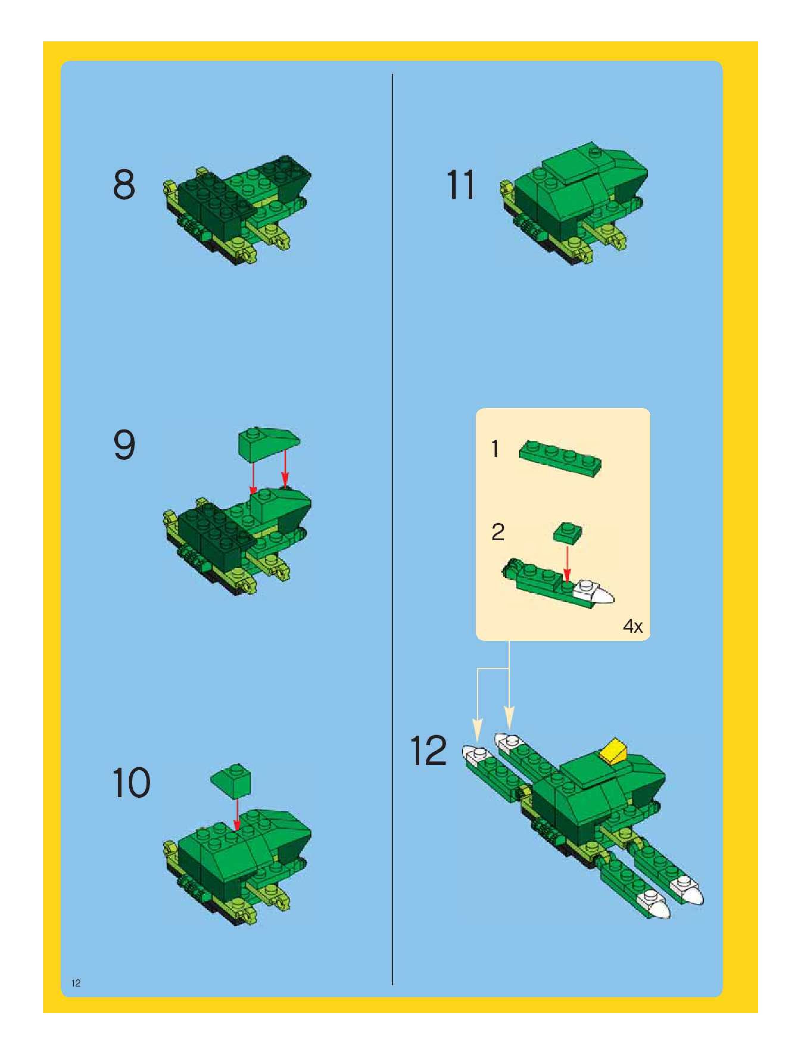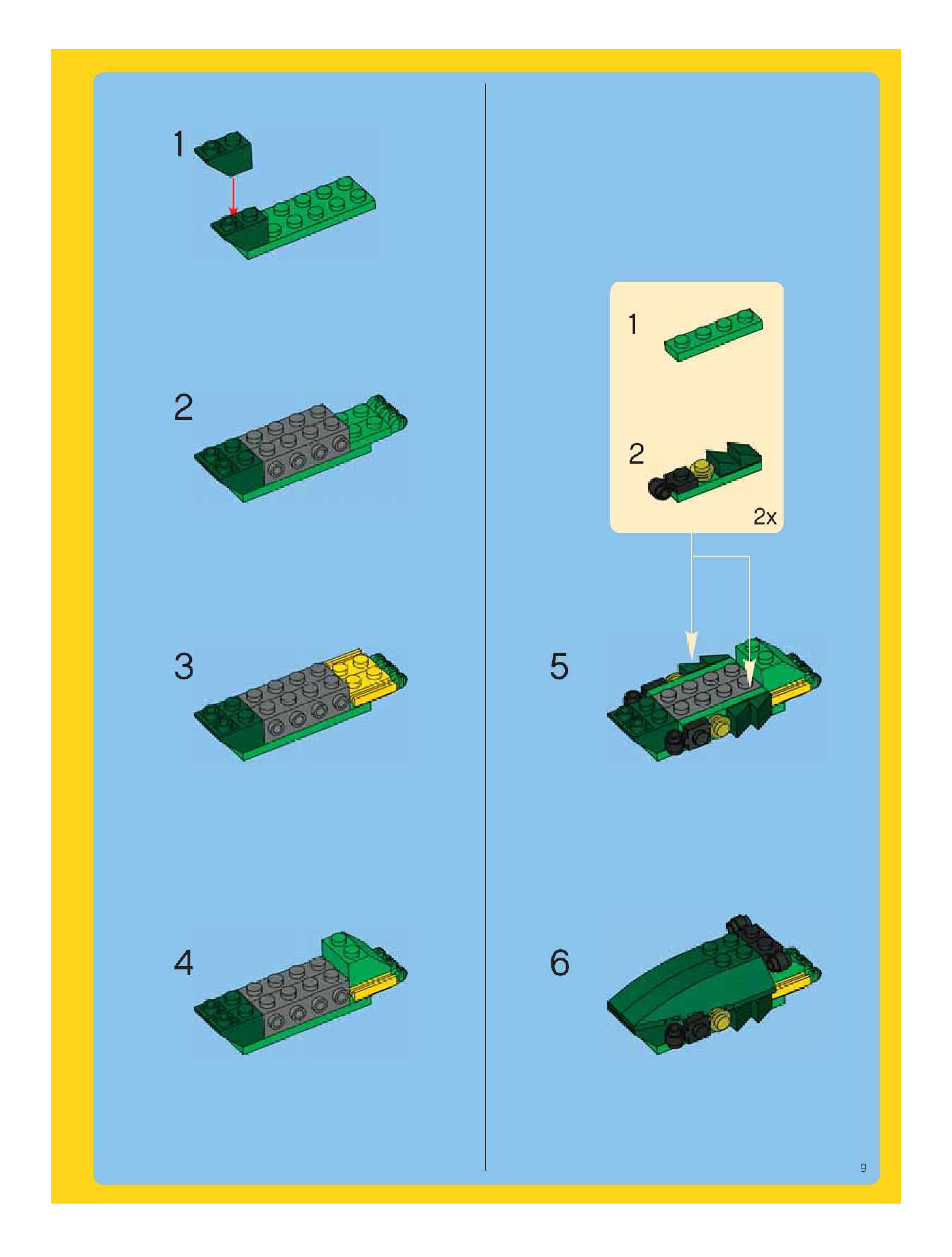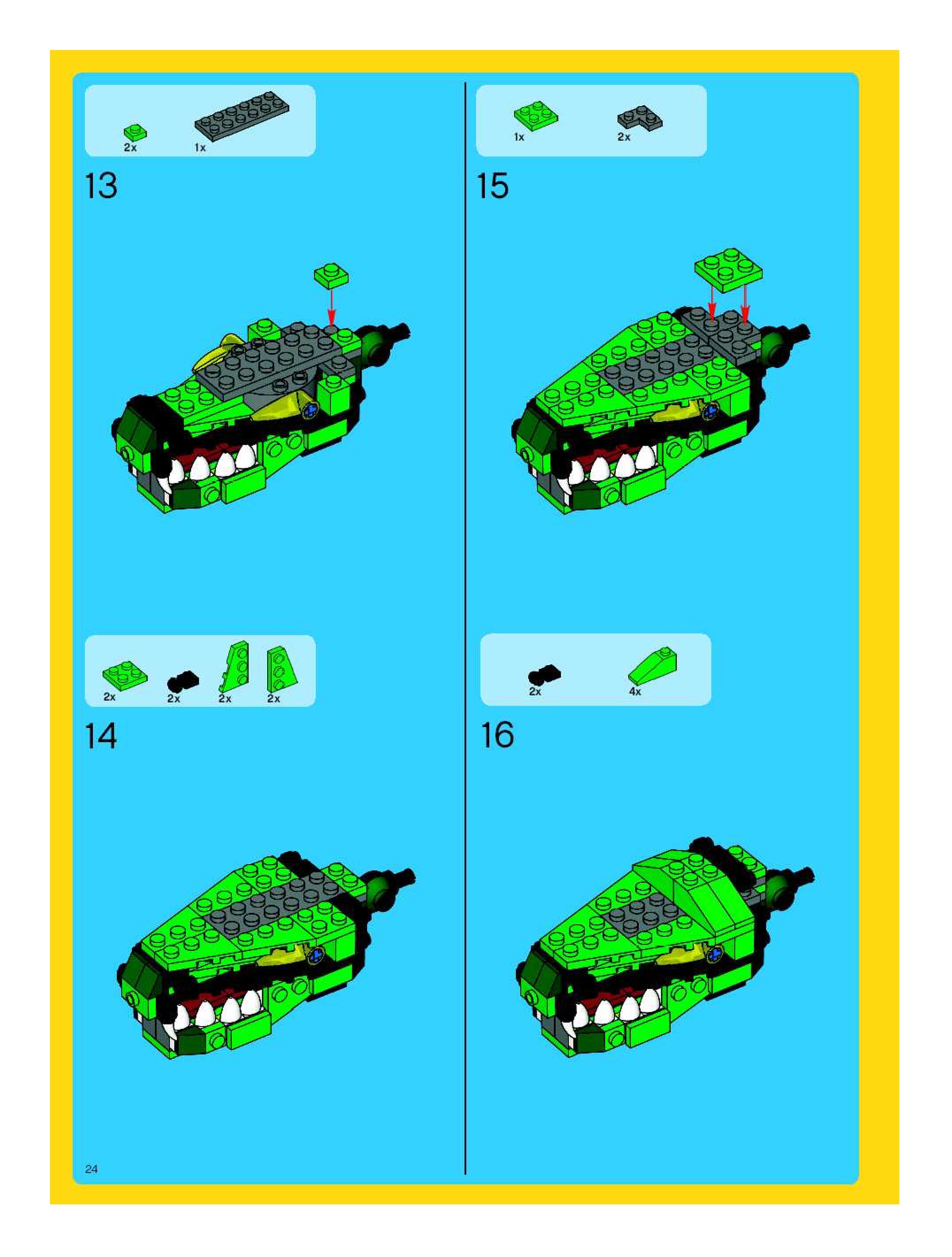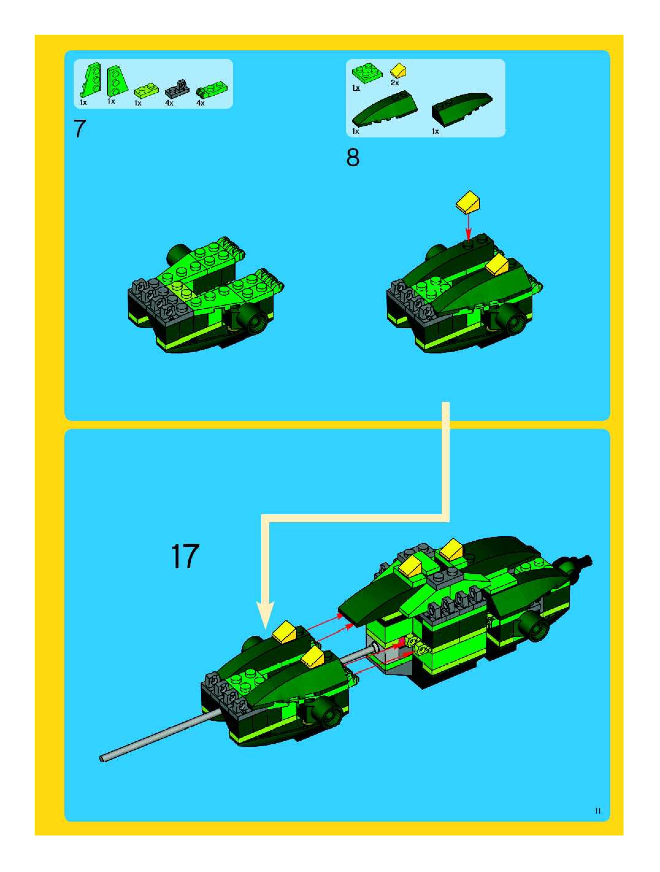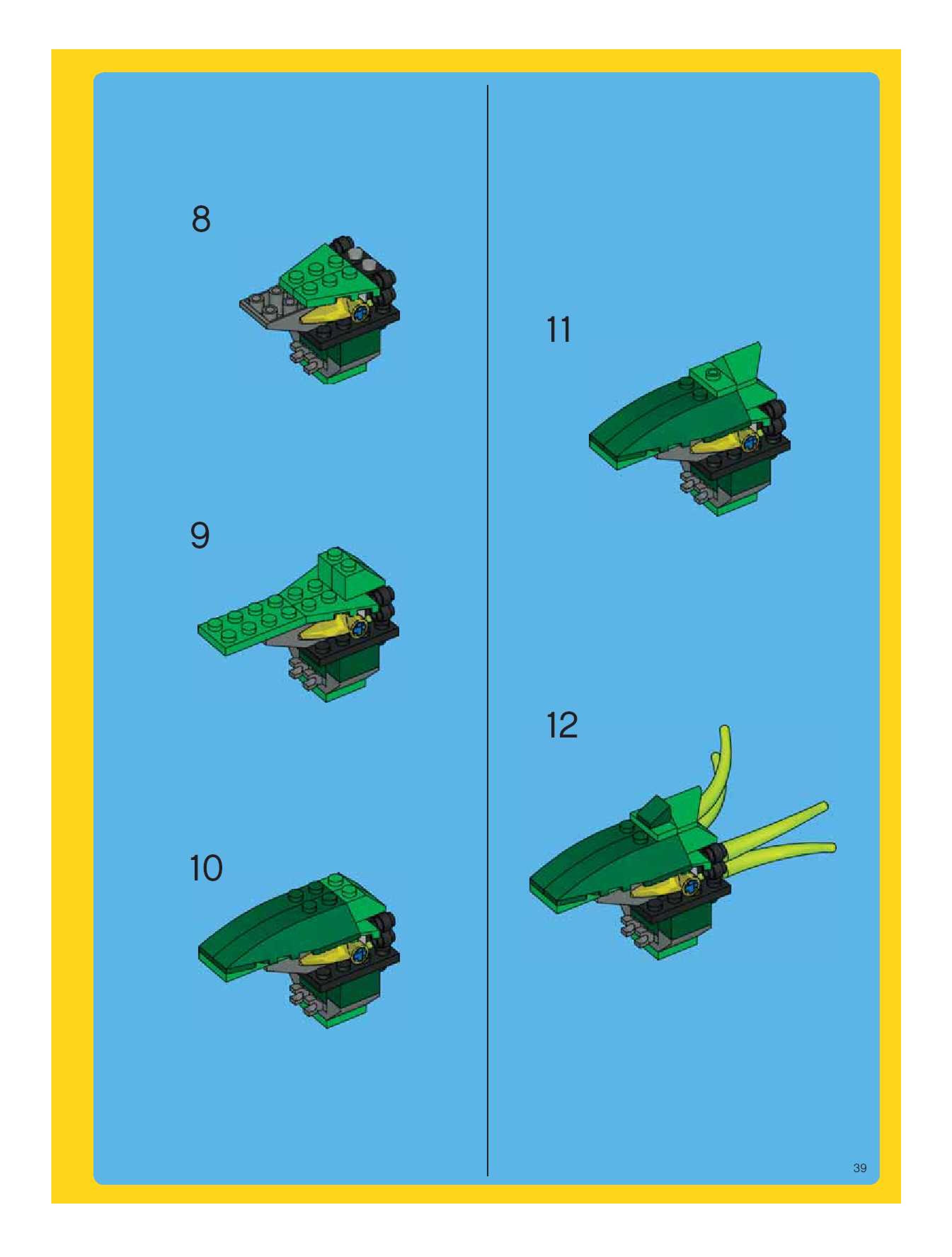 The assembly guide is prepared in a very understandable way for children and adult LEGO enthusiasts. A total of 184 picture galleries are shown, explaining the step-by-step construction stages for 2 different structures.