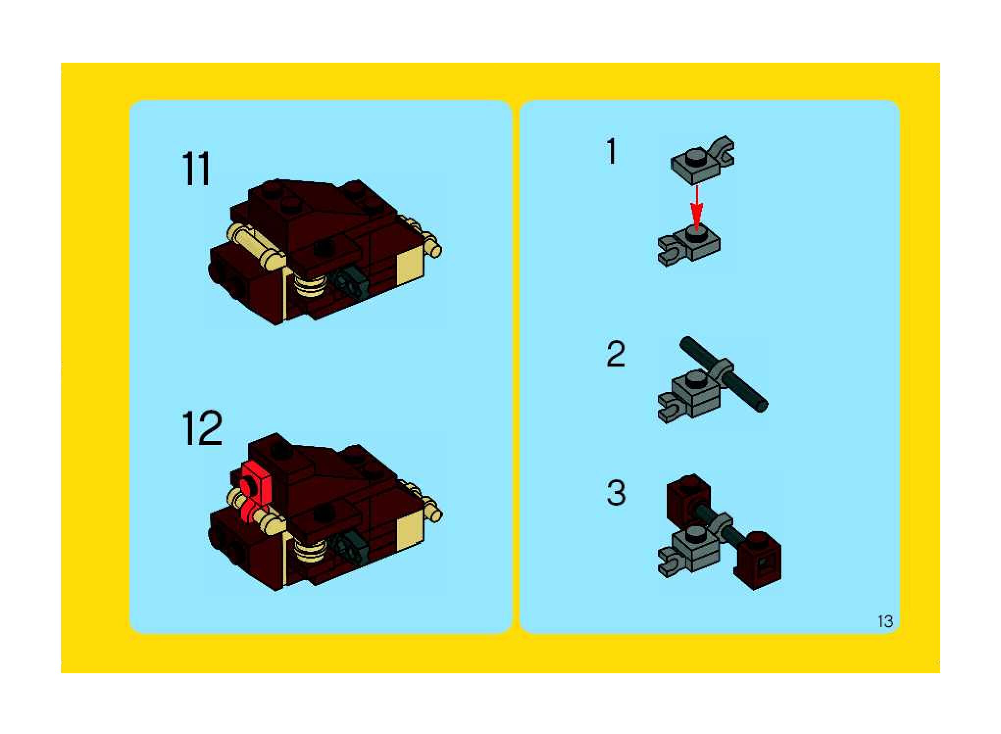 The assembly guide is prepared in a very understandable way for children and adult LEGO enthusiasts. A total of 120 picture galleries are shown, explaining the step-by-step construction stages for 1 different structures.