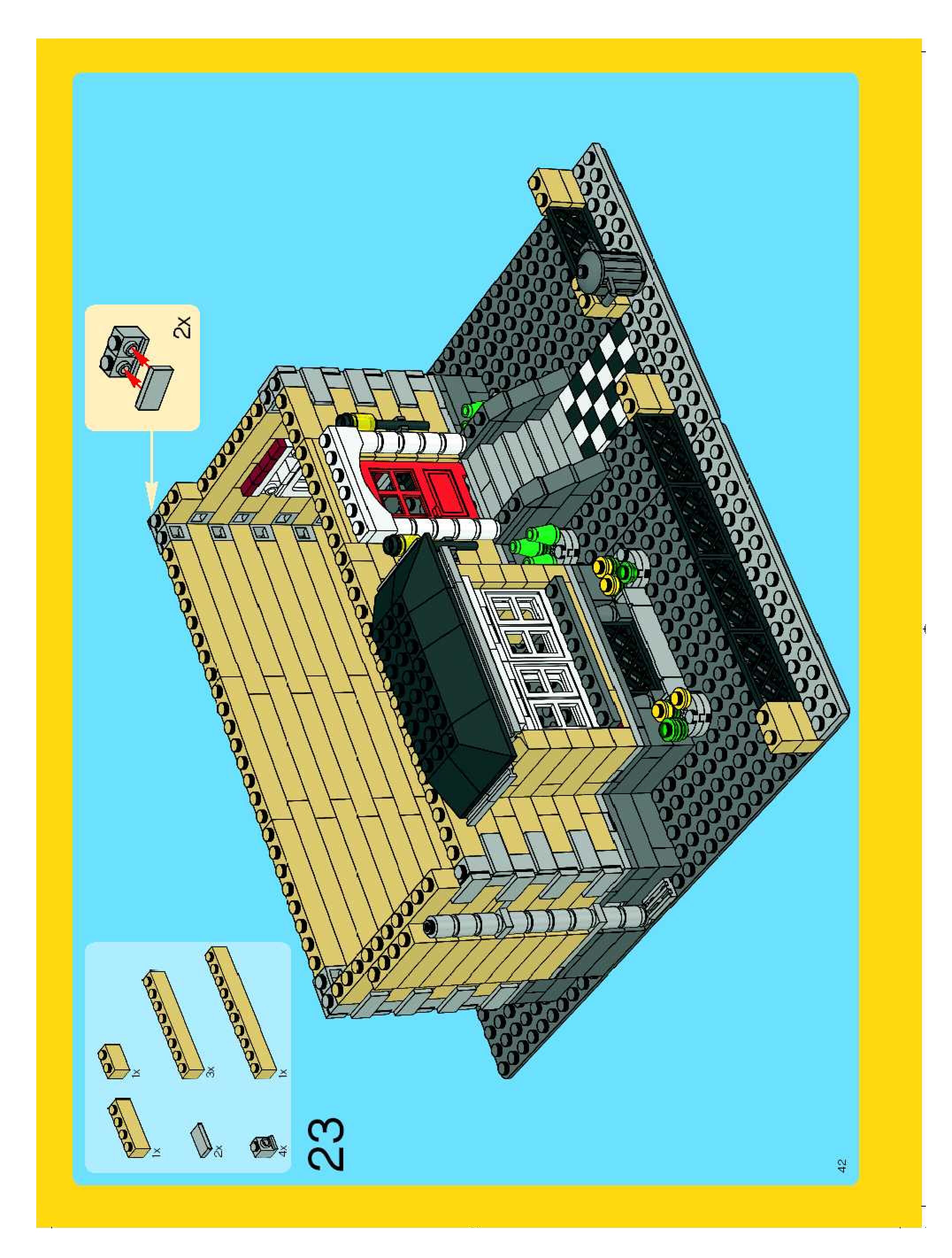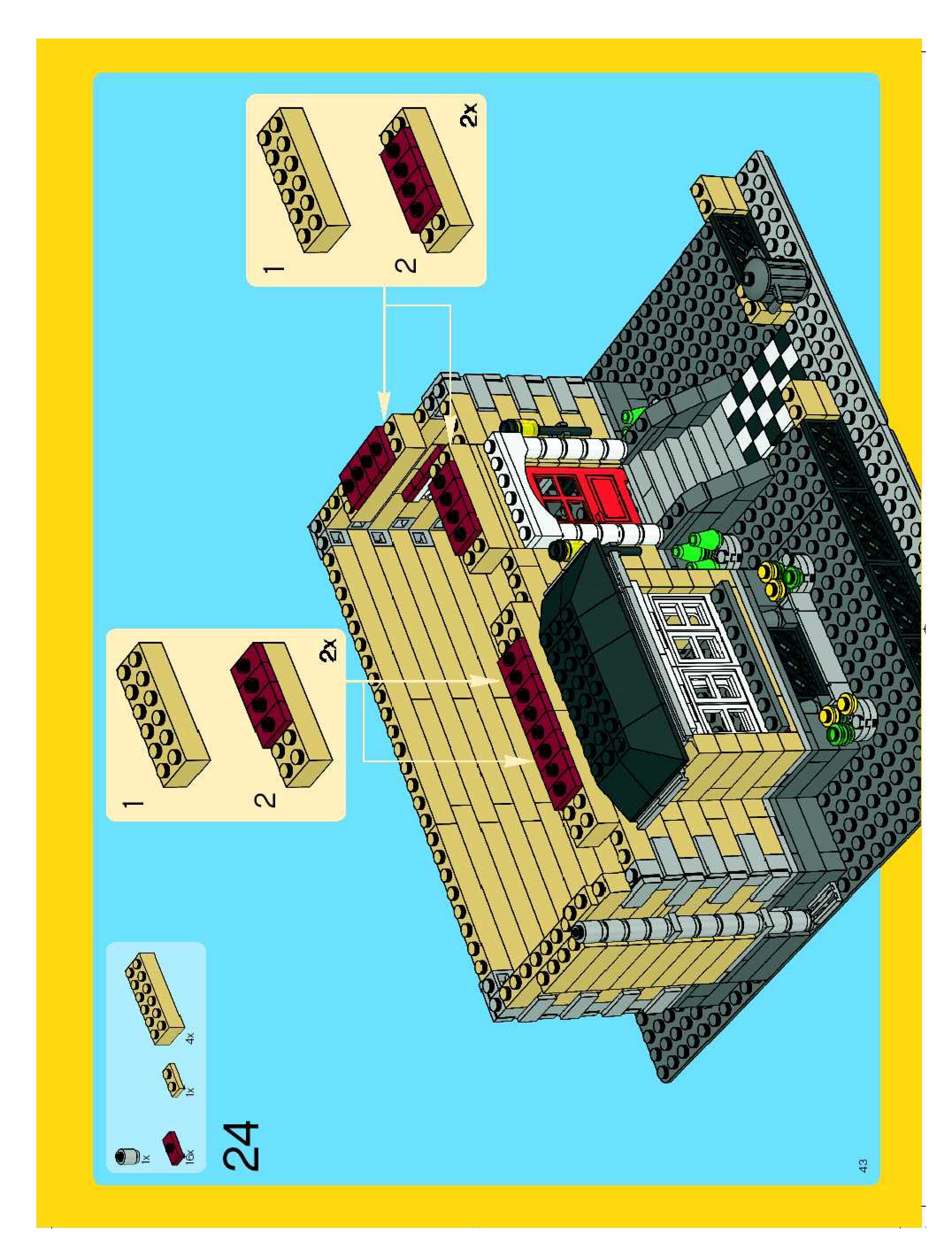 The assembly guide is prepared in a very understandable way for children and adult LEGO enthusiasts. A total of 208 picture galleries are shown, explaining the step-by-step construction stages for 3 different structures.