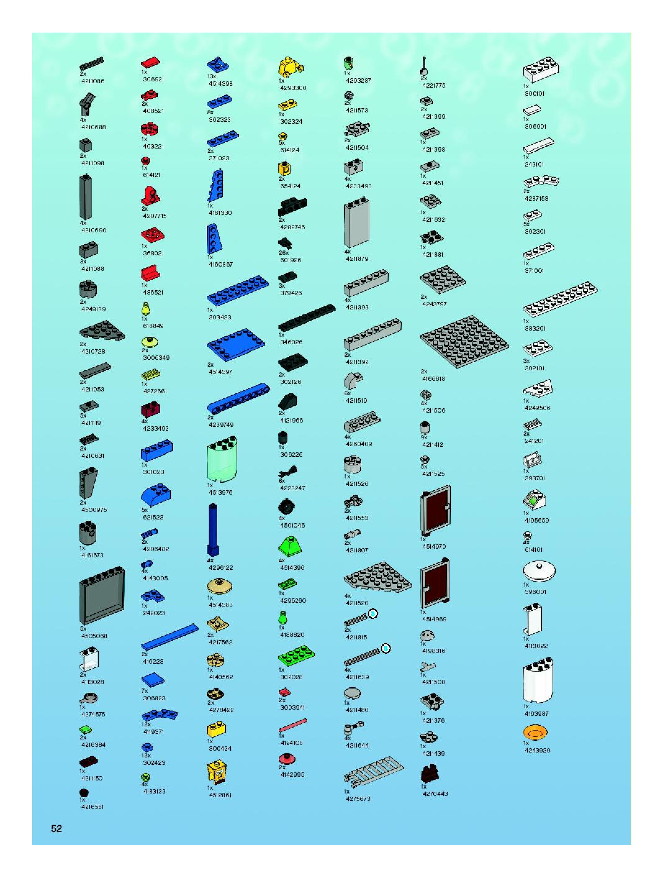 The assembly guide is prepared in a very understandable way for children and adult LEGO enthusiasts. A total of 56 picture galleries are shown, explaining the step-by-step construction stages for 1 different structures.