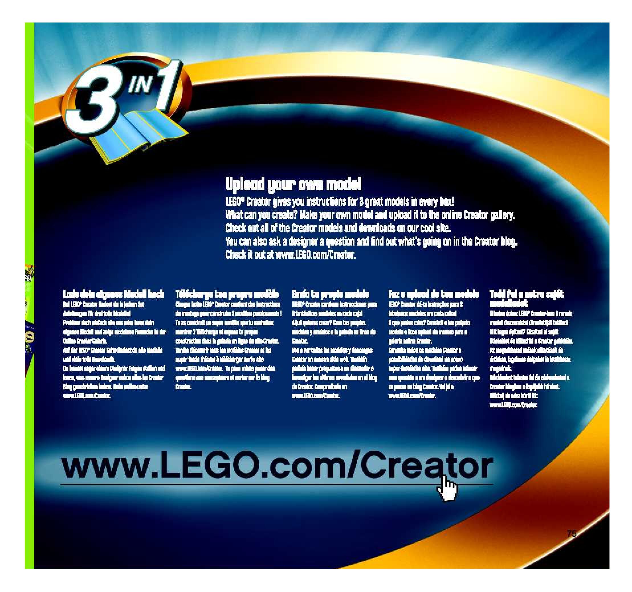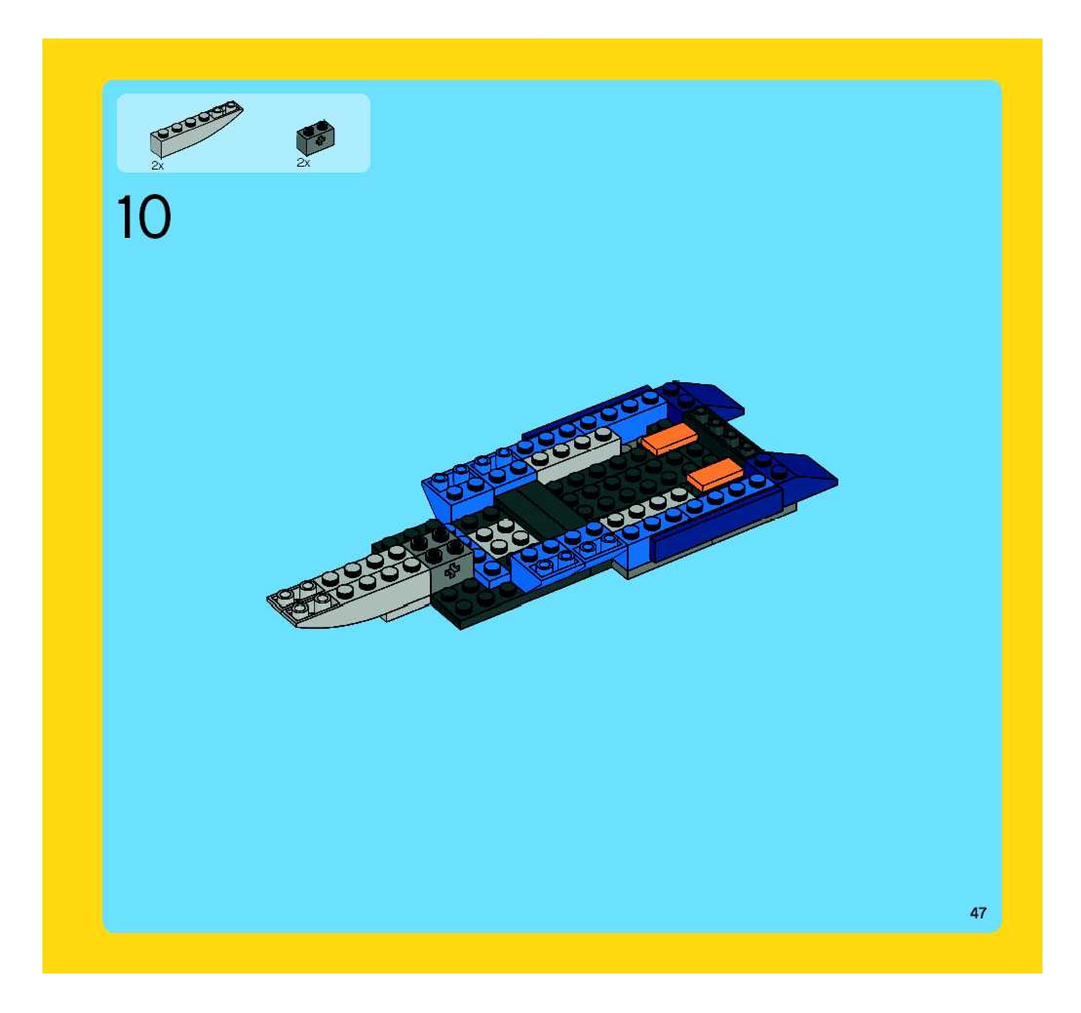 The assembly guide is prepared in a very understandable way for children and adult LEGO enthusiasts. A total of 152 picture galleries are shown, explaining the step-by-step construction stages for 2 different structures.