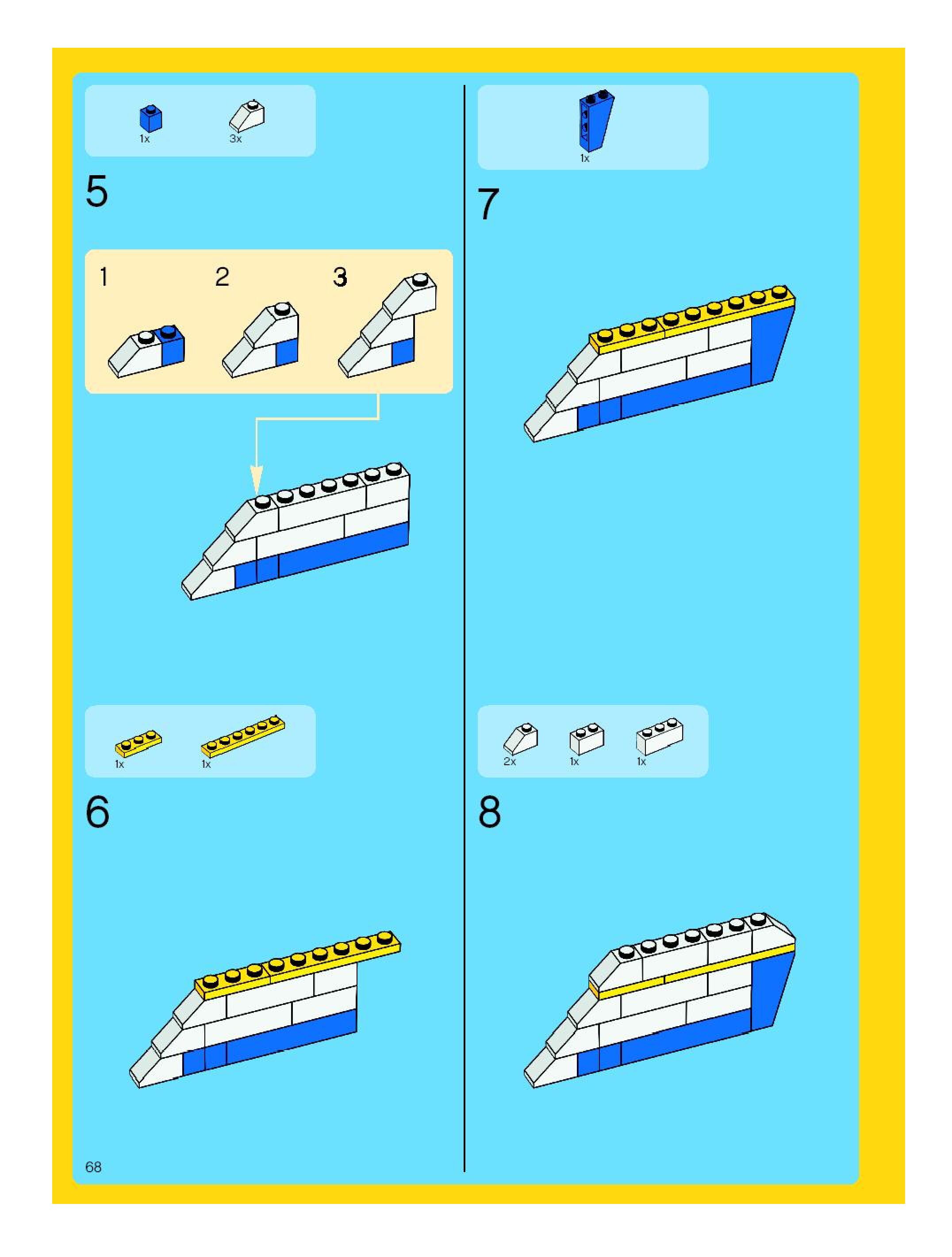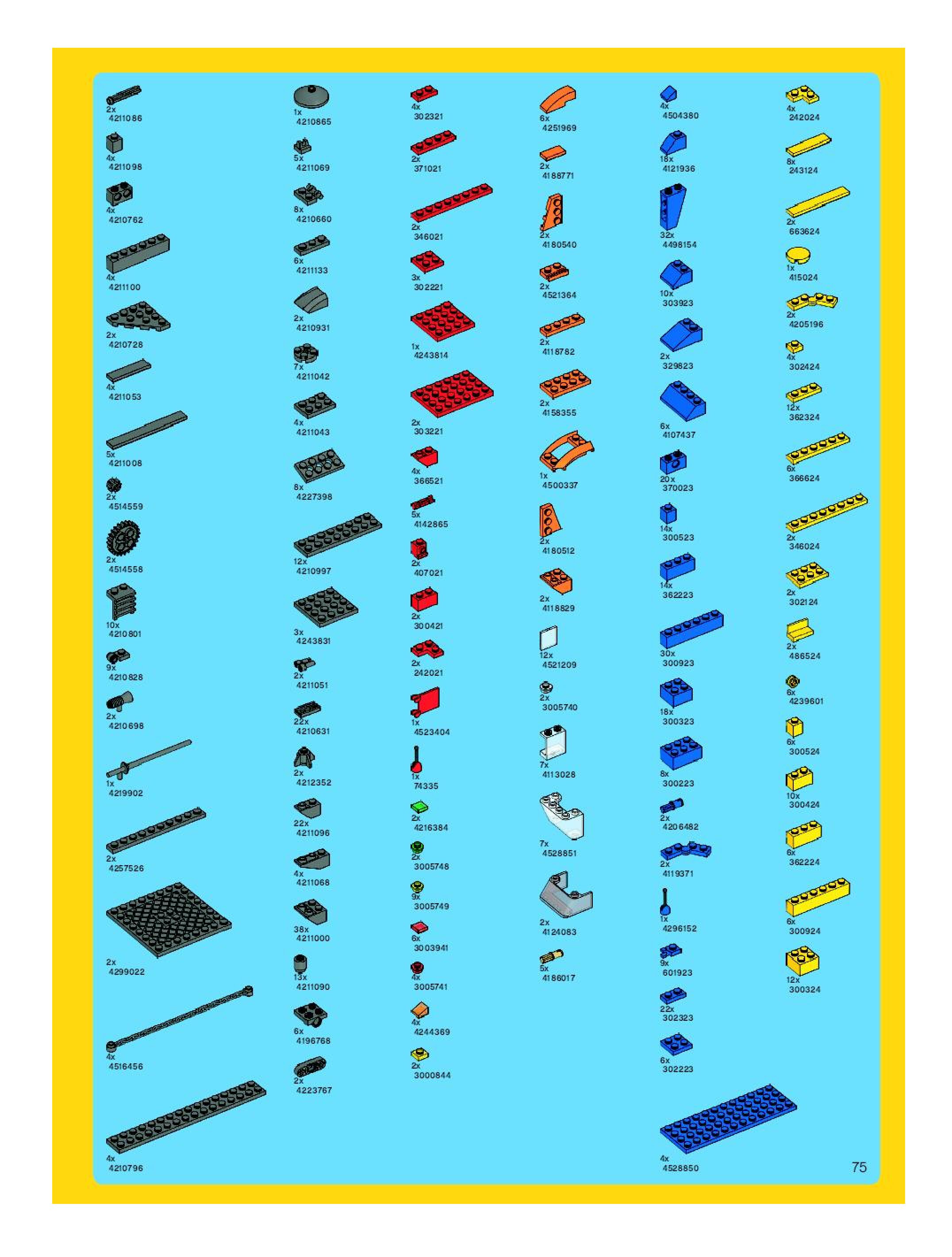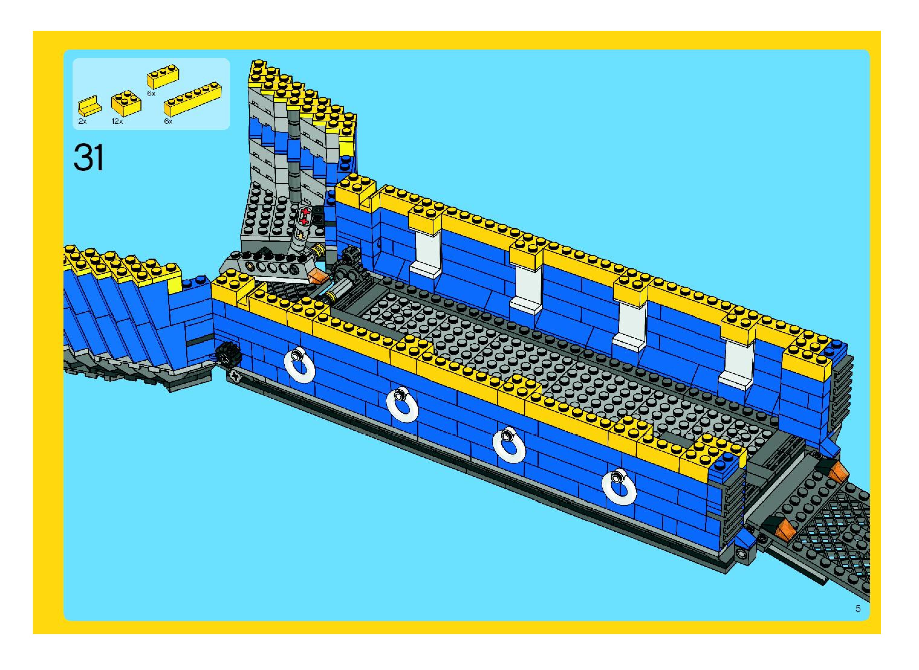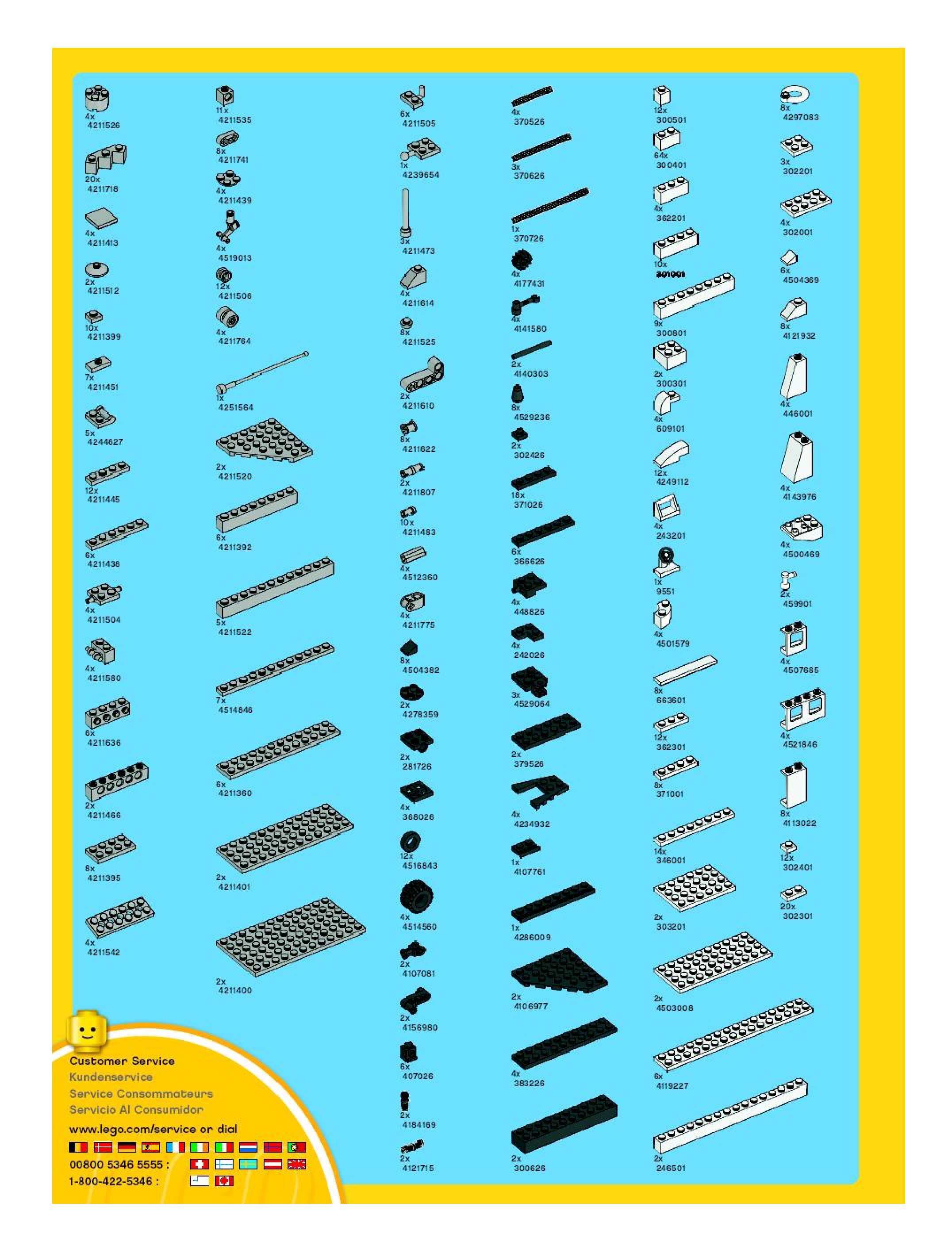 The assembly guide is prepared in a very understandable way for children and adult LEGO enthusiasts. A total of 268 picture galleries are shown, explaining the step-by-step construction stages for 5 different structures.