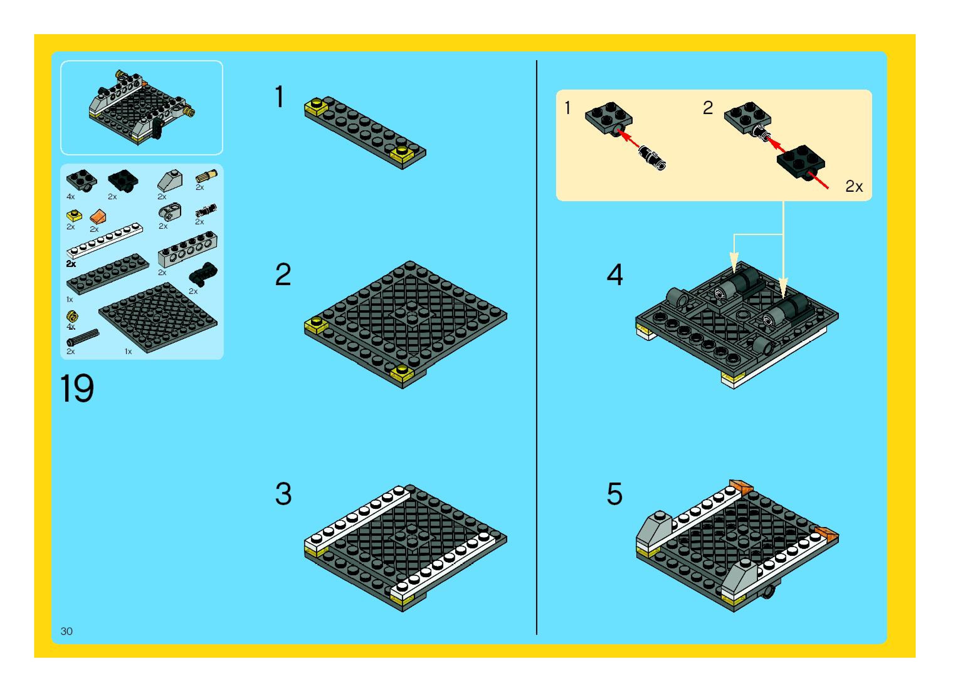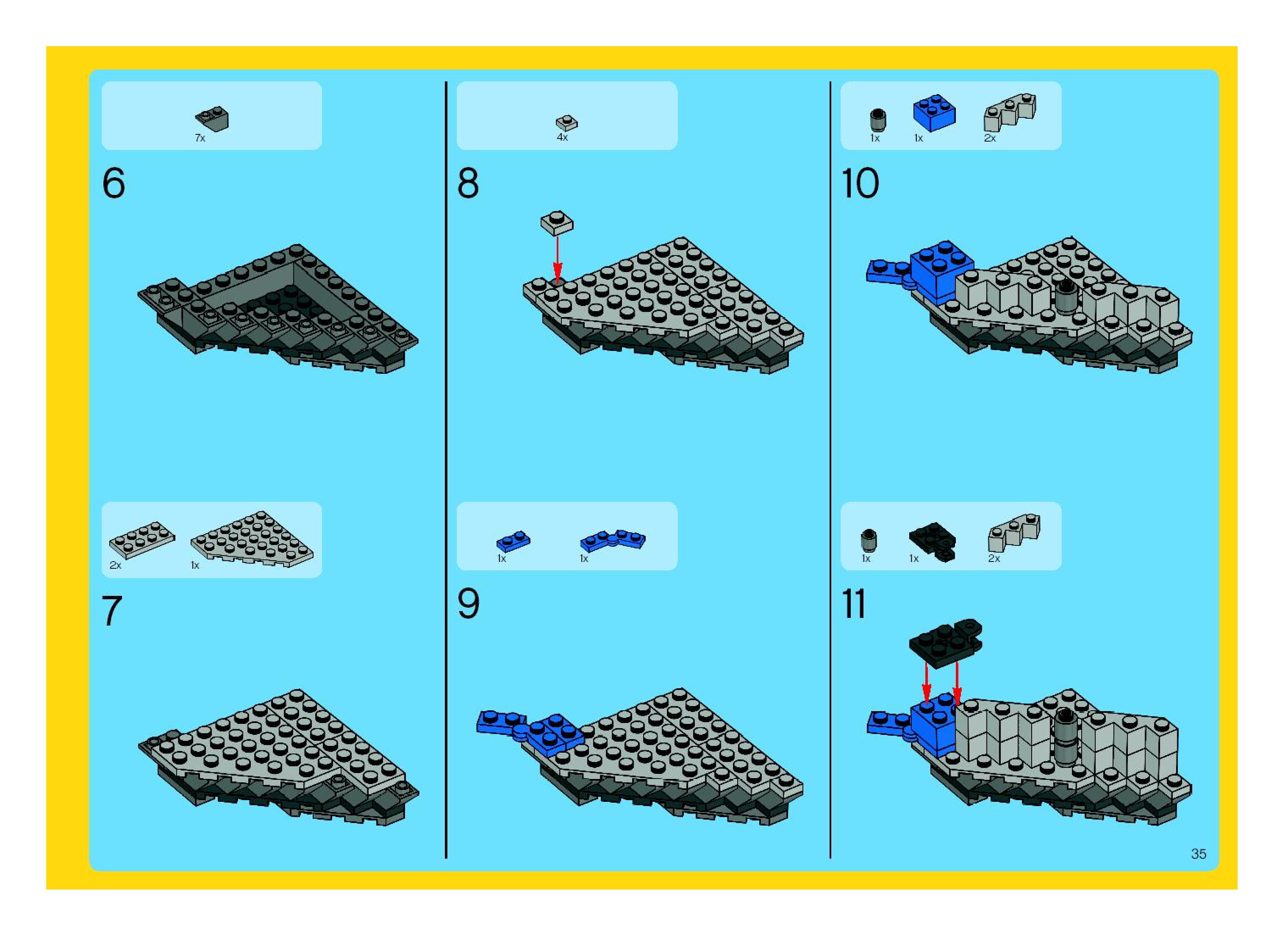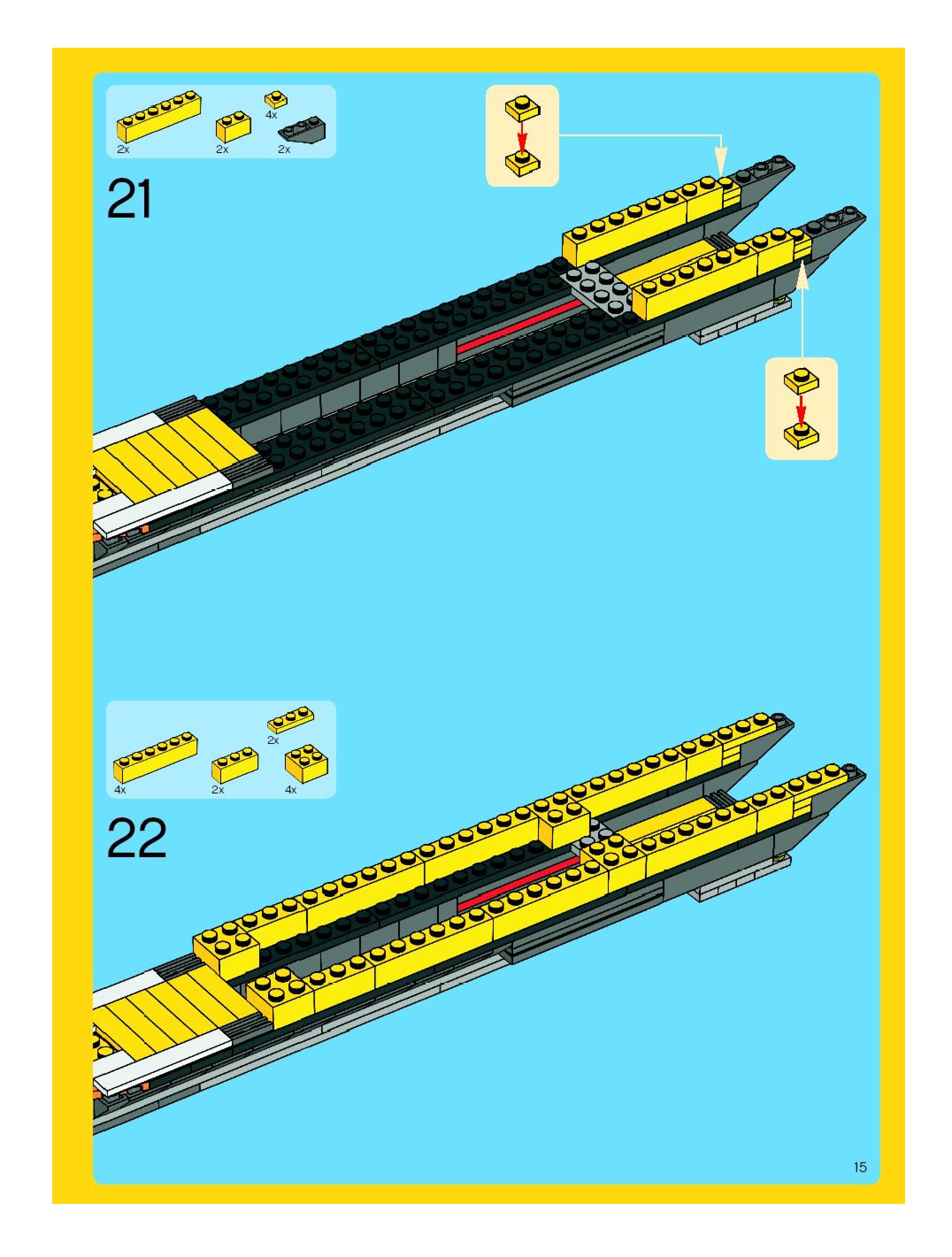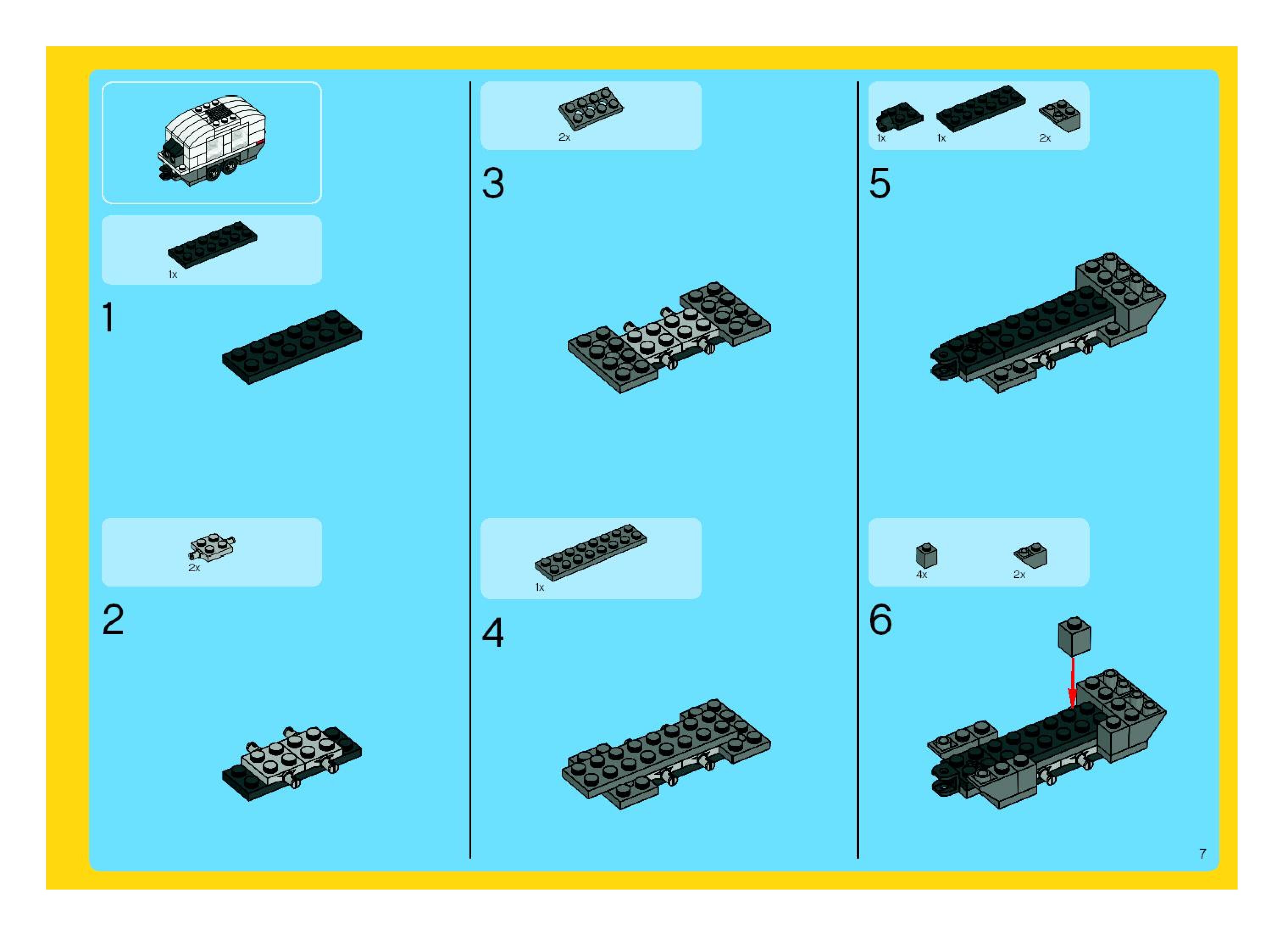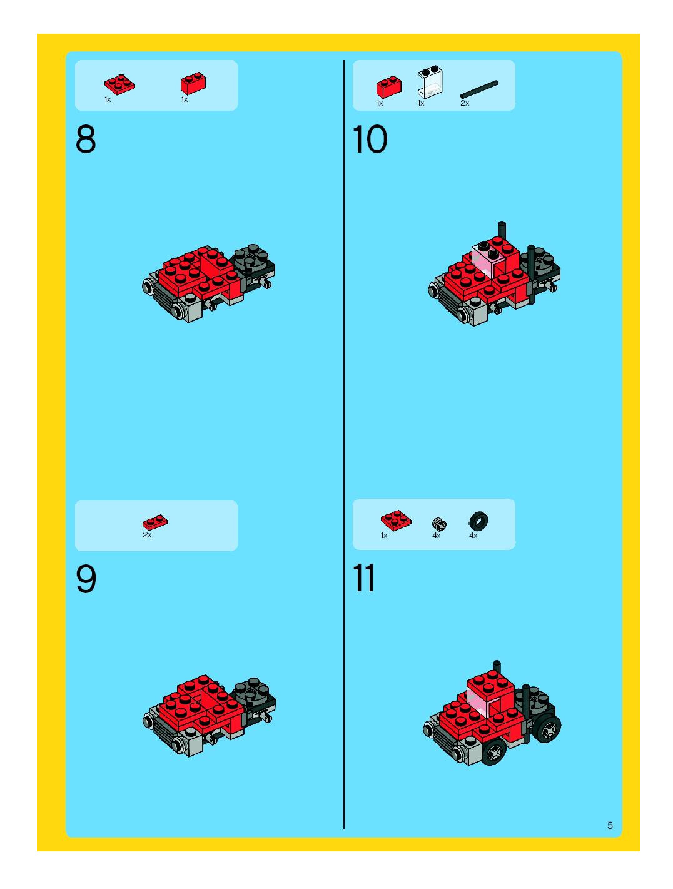 The assembly guide is prepared in a very understandable way for children and adult LEGO enthusiasts. A total of 268 picture galleries are shown, explaining the step-by-step construction stages for 5 different structures.