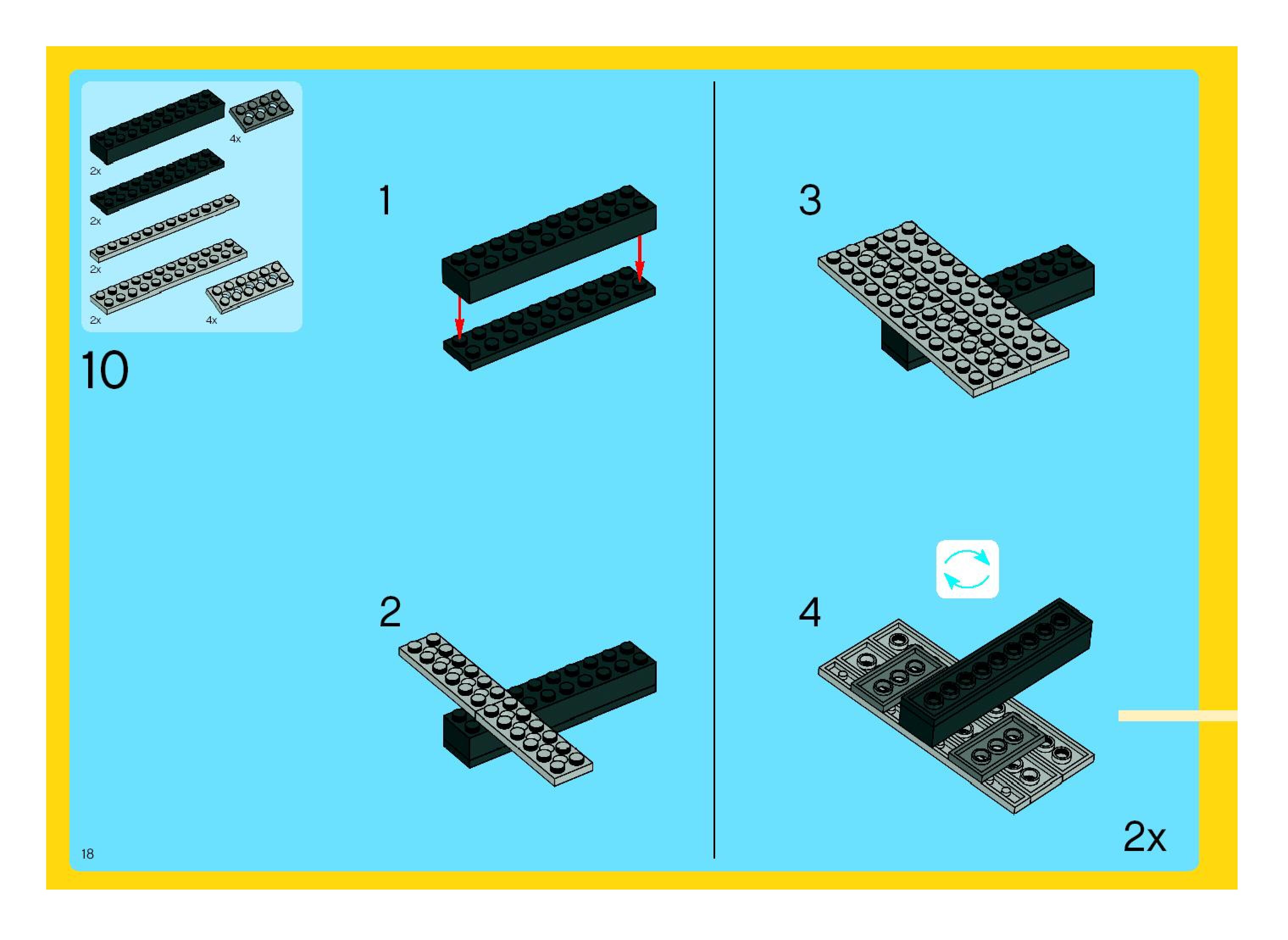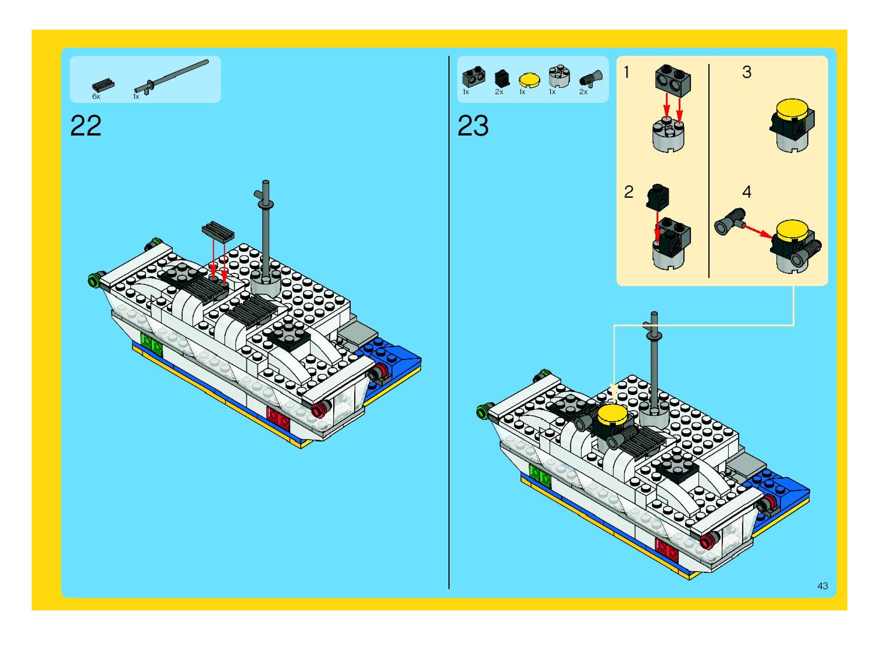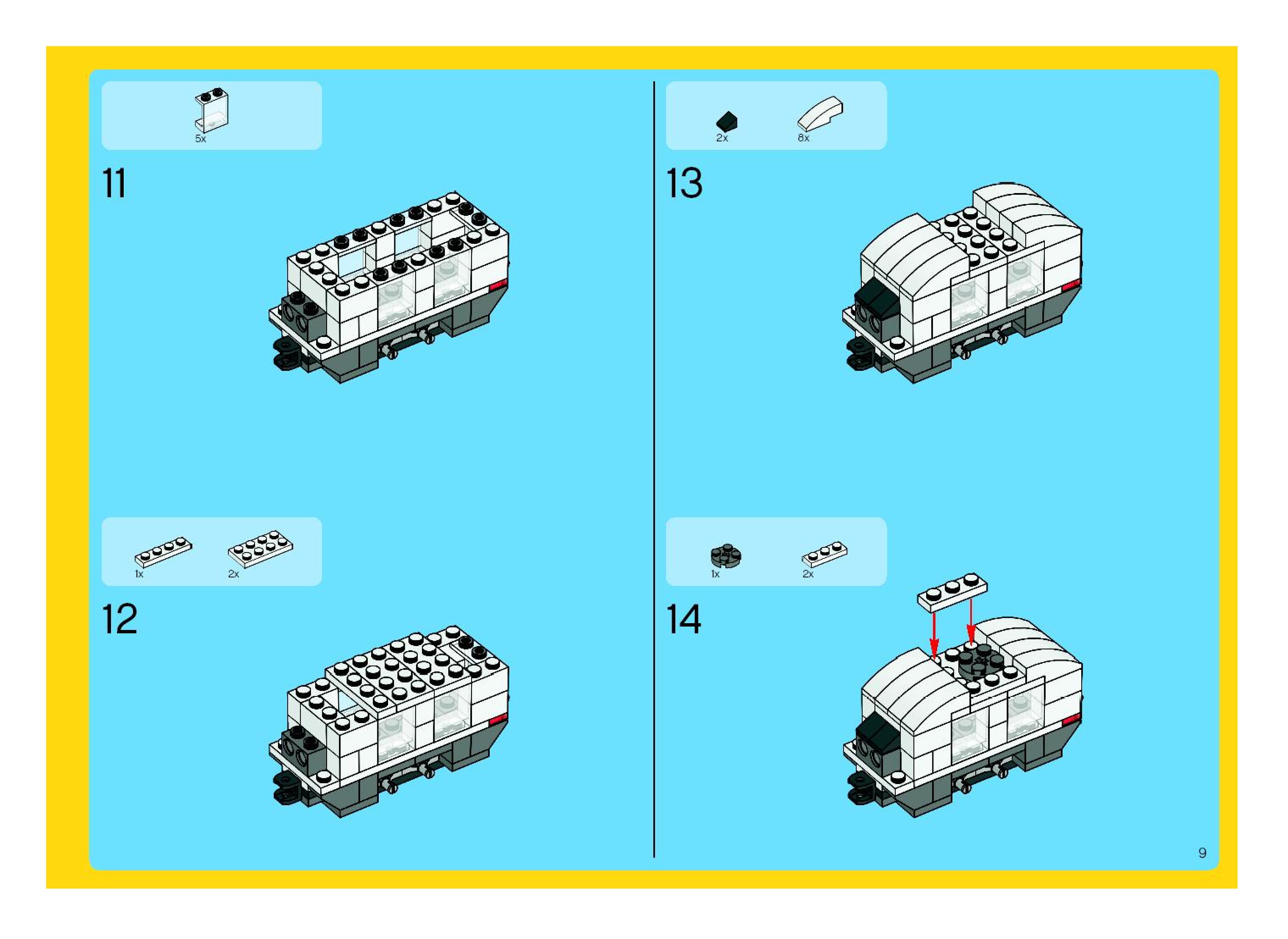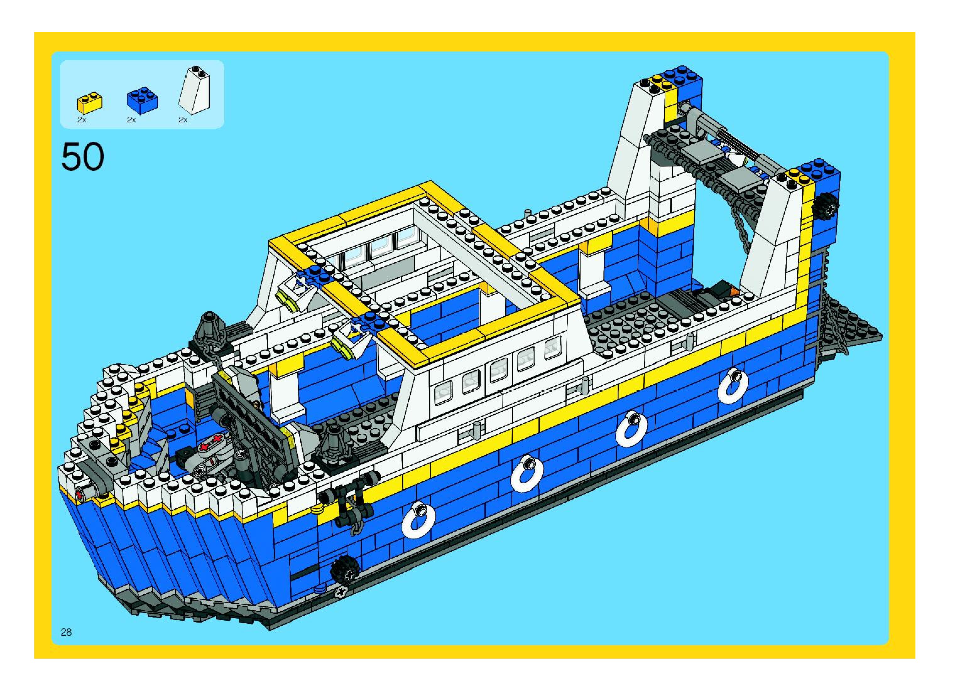 The assembly guide is prepared in a very understandable way for children and adult LEGO enthusiasts. A total of 268 picture galleries are shown, explaining the step-by-step construction stages for 5 different structures.