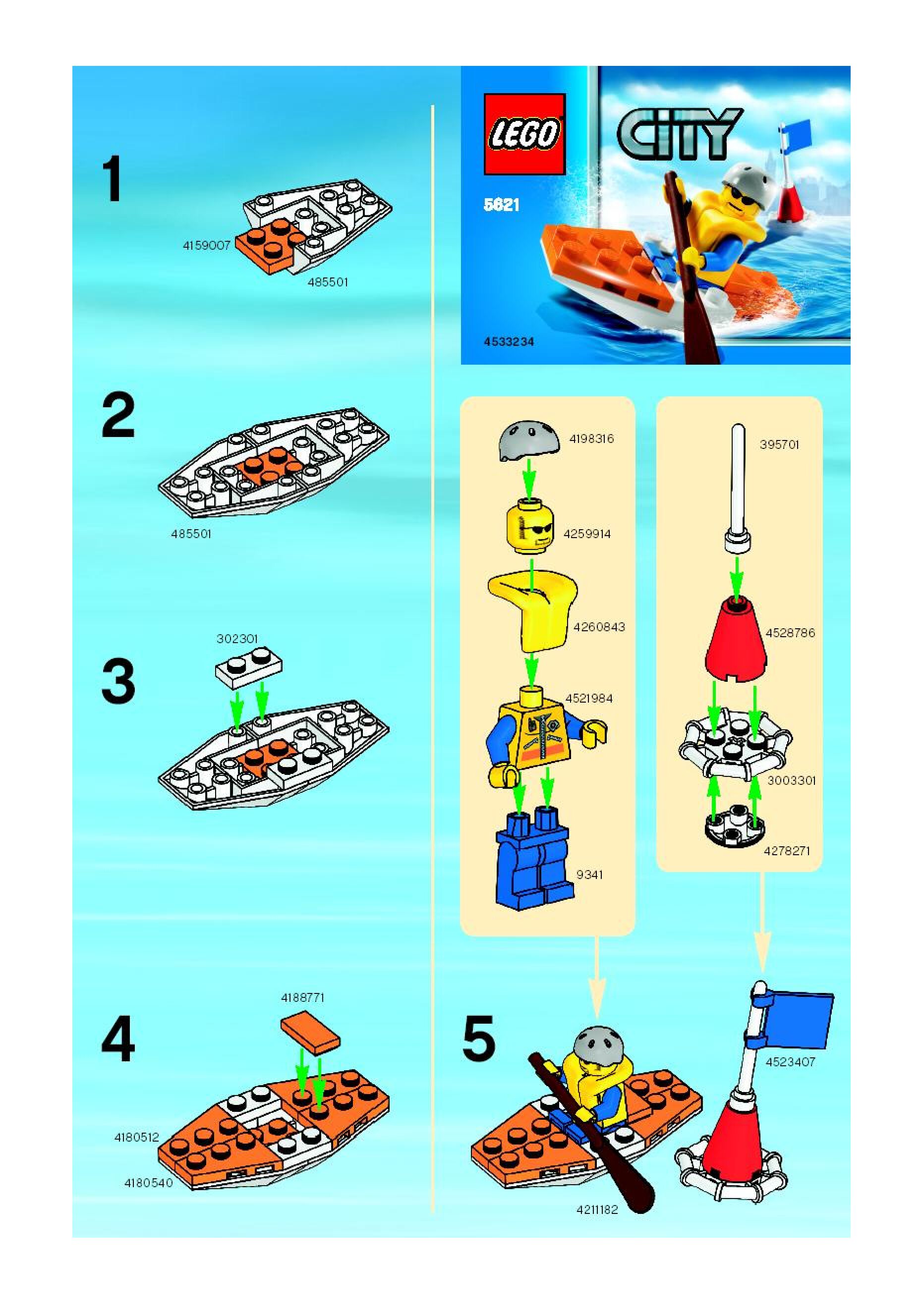 This page shares information about LEGO 5621 Coast Guard Kayak manual, LEGO 5621 PDF instructions, LEGO 5621 Coast Guard Kayak building guide online, How to build 5621 Coast Guard Kayak LEGO.
