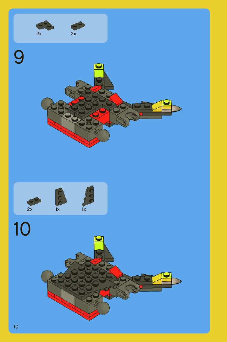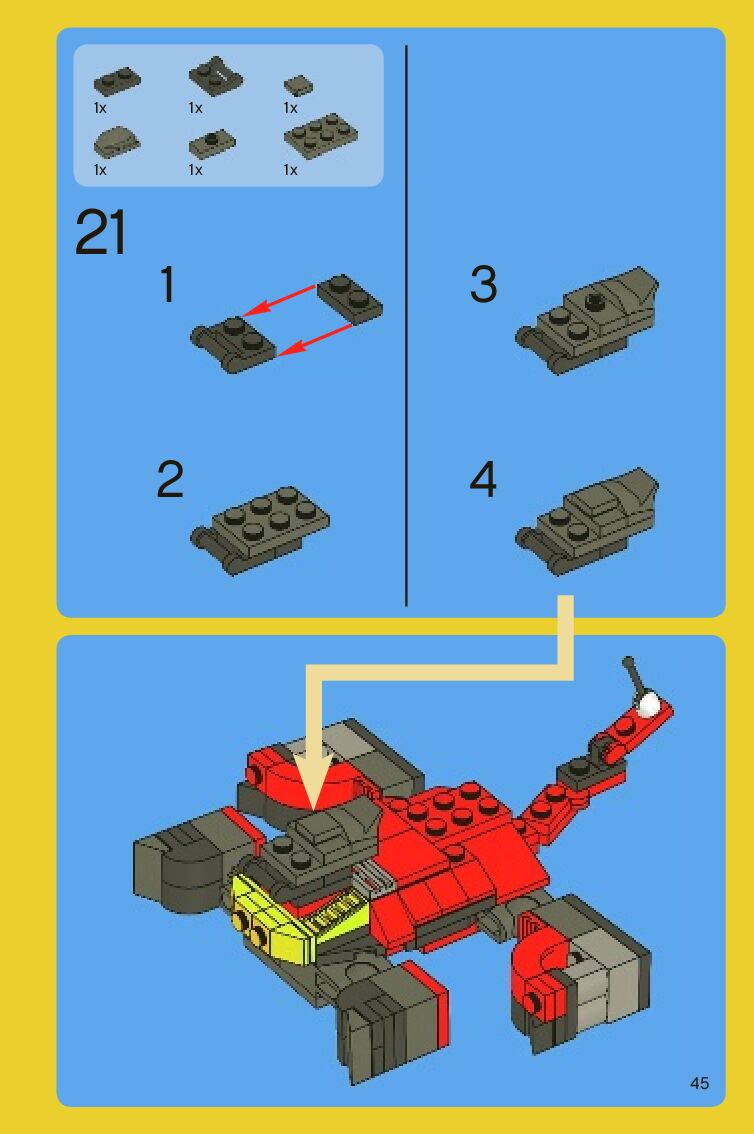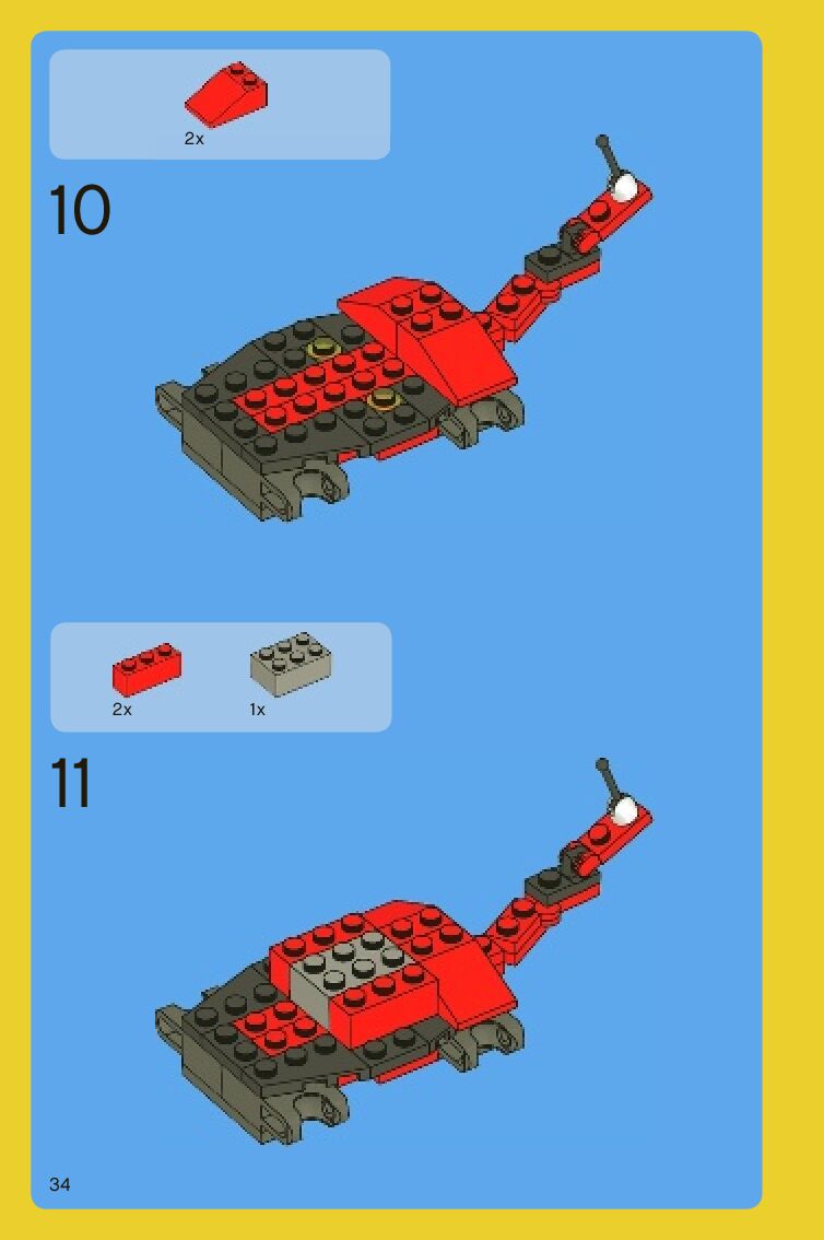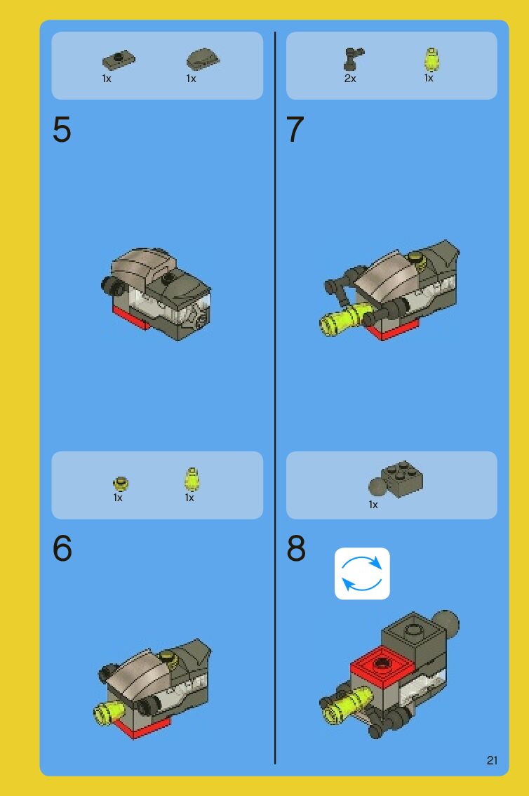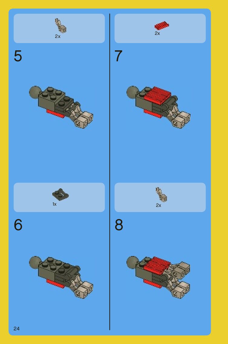 The assembly guide is prepared in a very understandable way for children and adult LEGO enthusiasts. A total of 88 picture galleries are shown, explaining the step-by-step construction stages for 2 different structures.