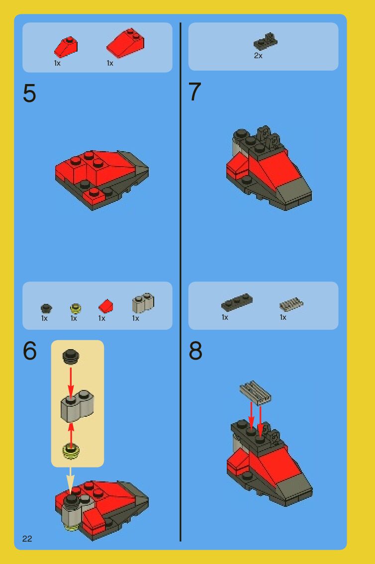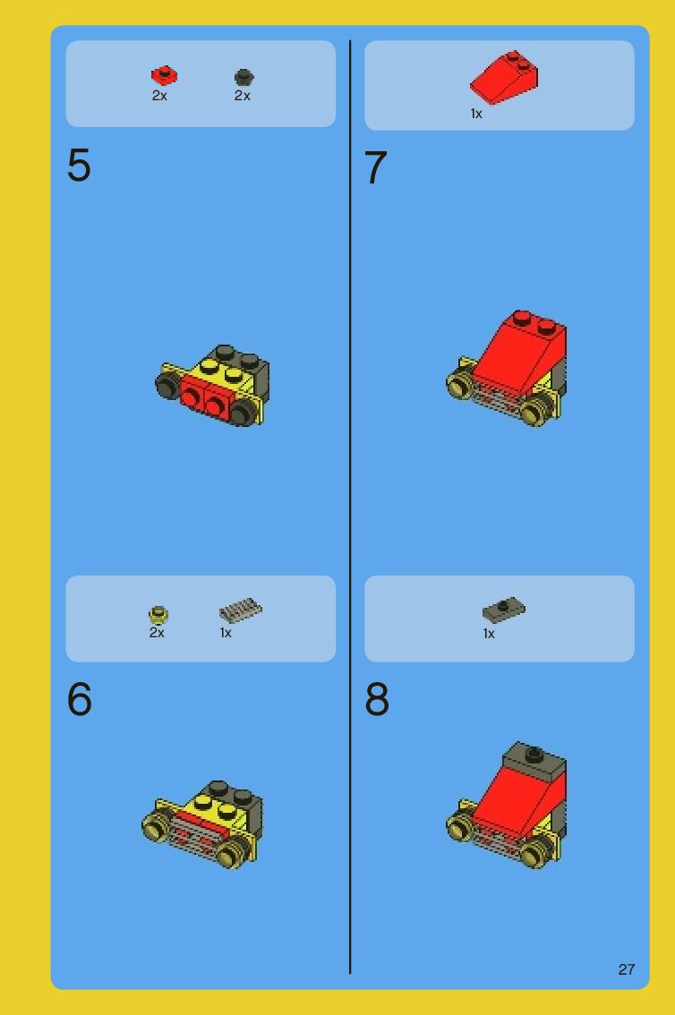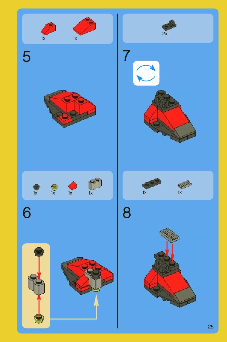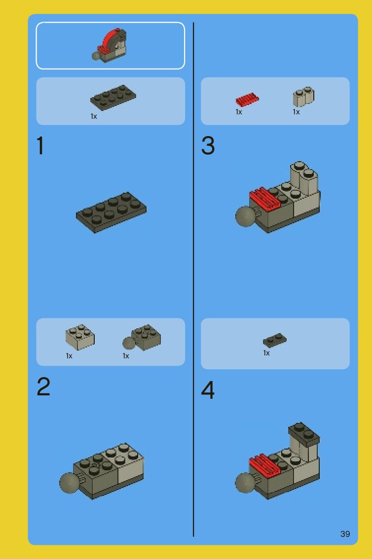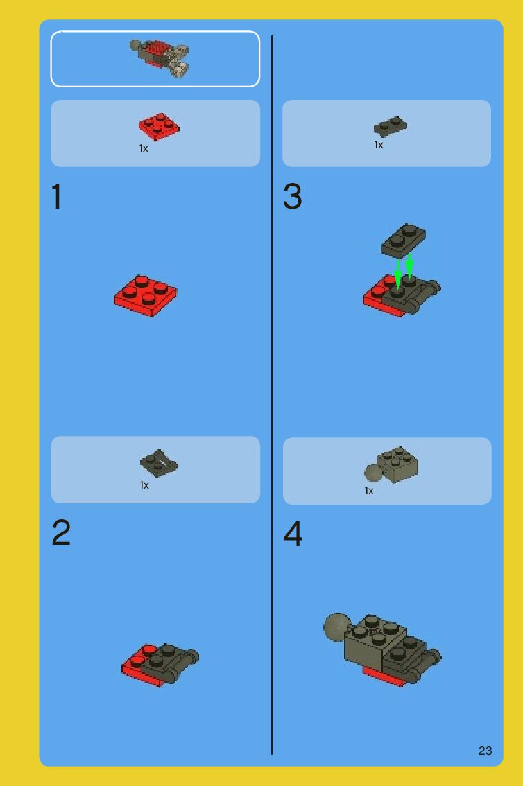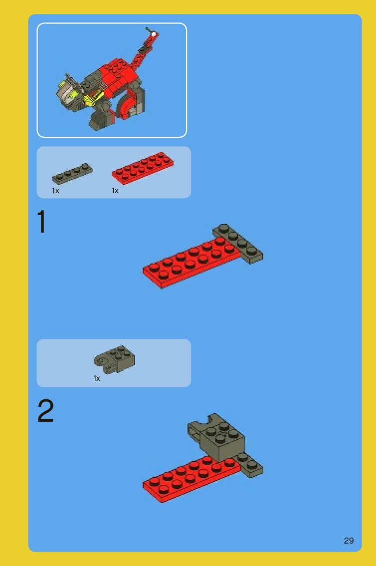 The assembly guide is prepared in a very understandable way for children and adult LEGO enthusiasts. A total of 88 picture galleries are shown, explaining the step-by-step construction stages for 2 different structures.
