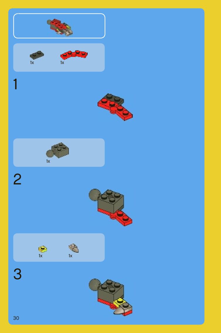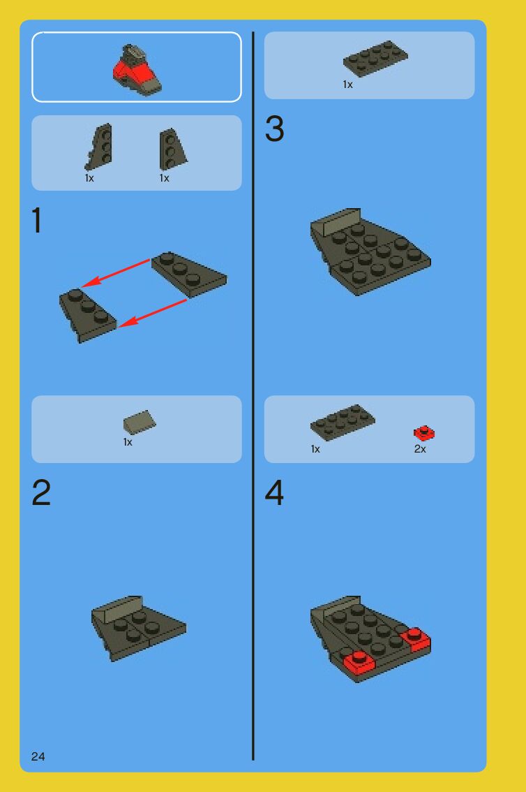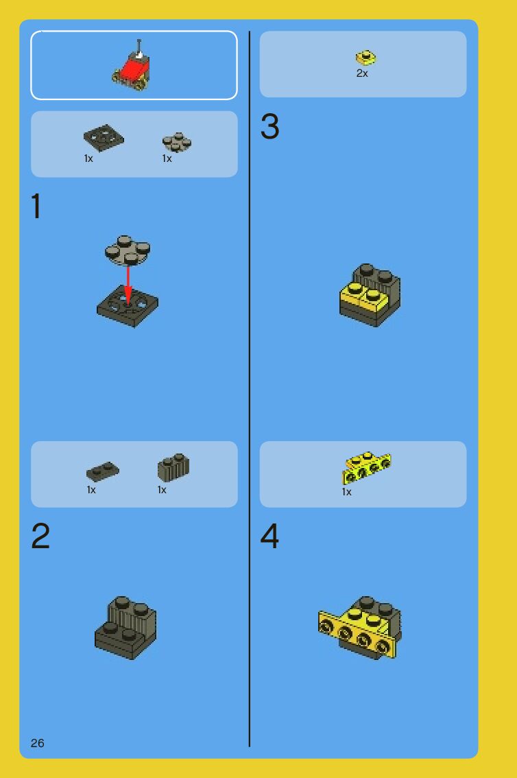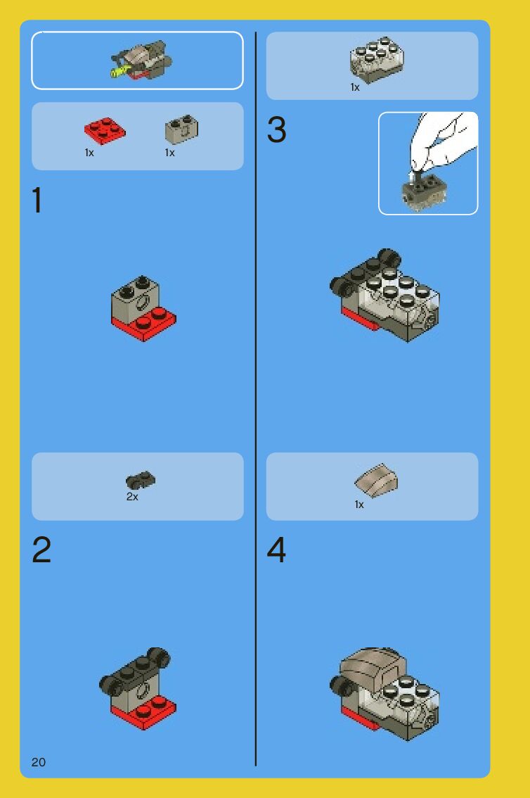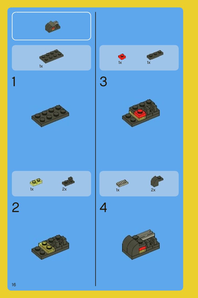 The assembly guide is prepared in a very understandable way for children and adult LEGO enthusiasts. A total of 88 picture galleries are shown, explaining the step-by-step construction stages for 2 different structures.