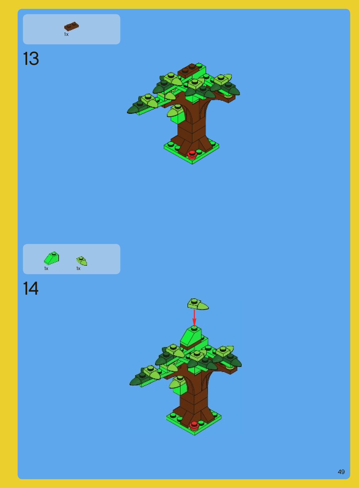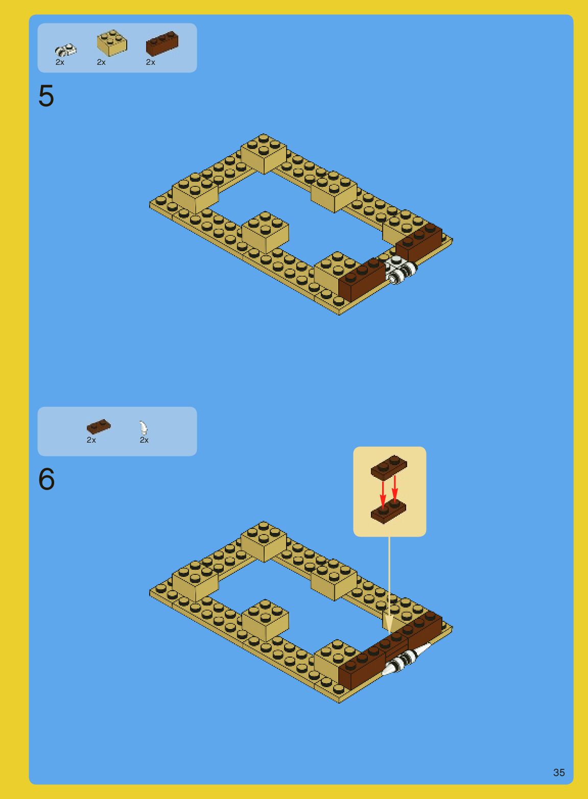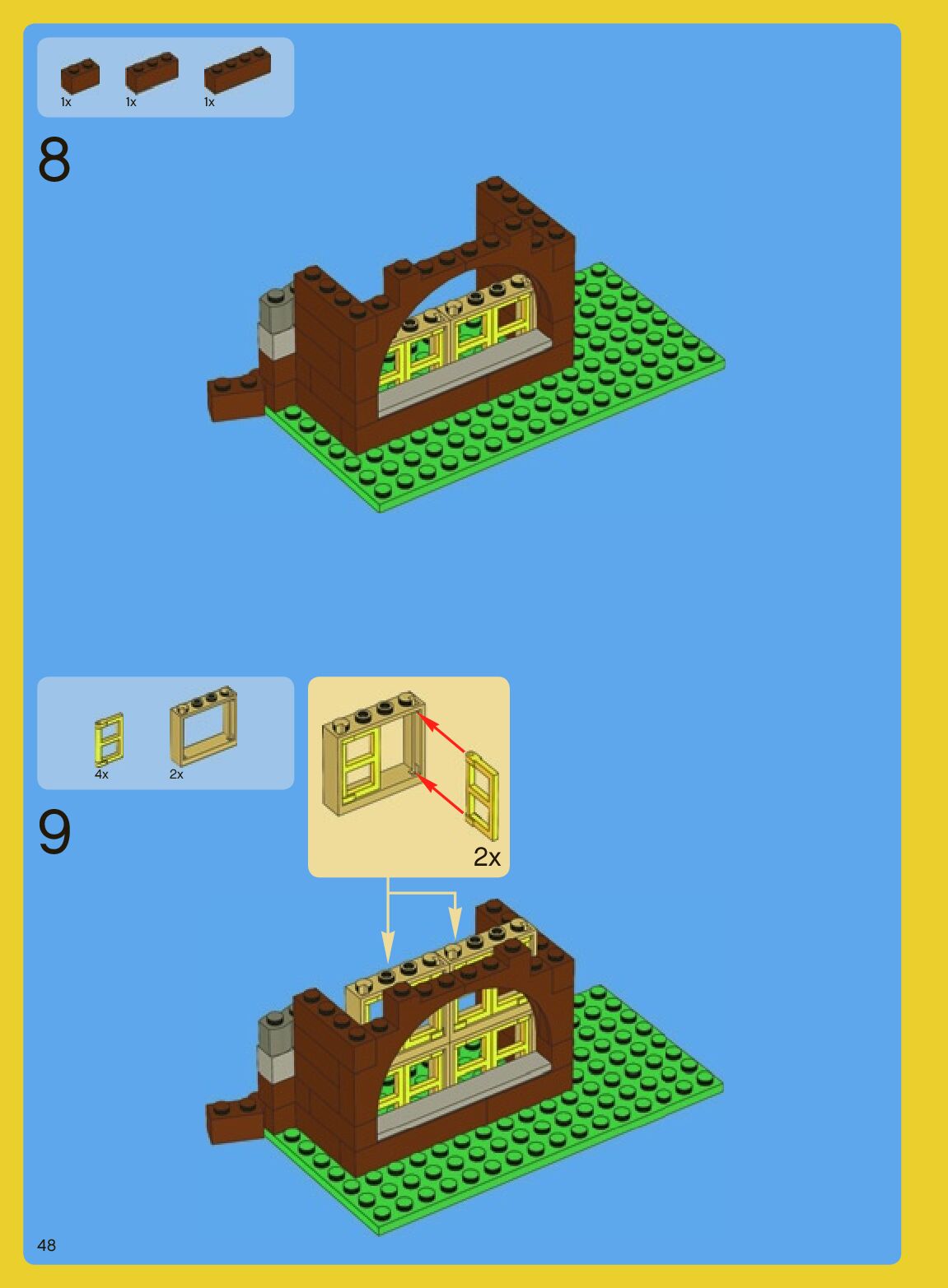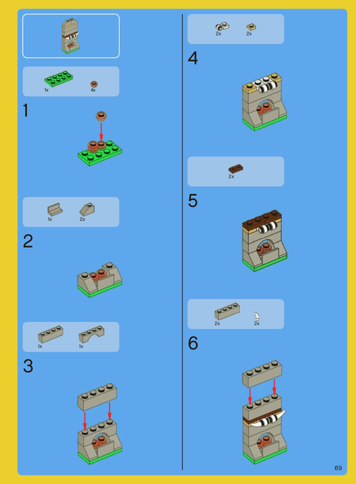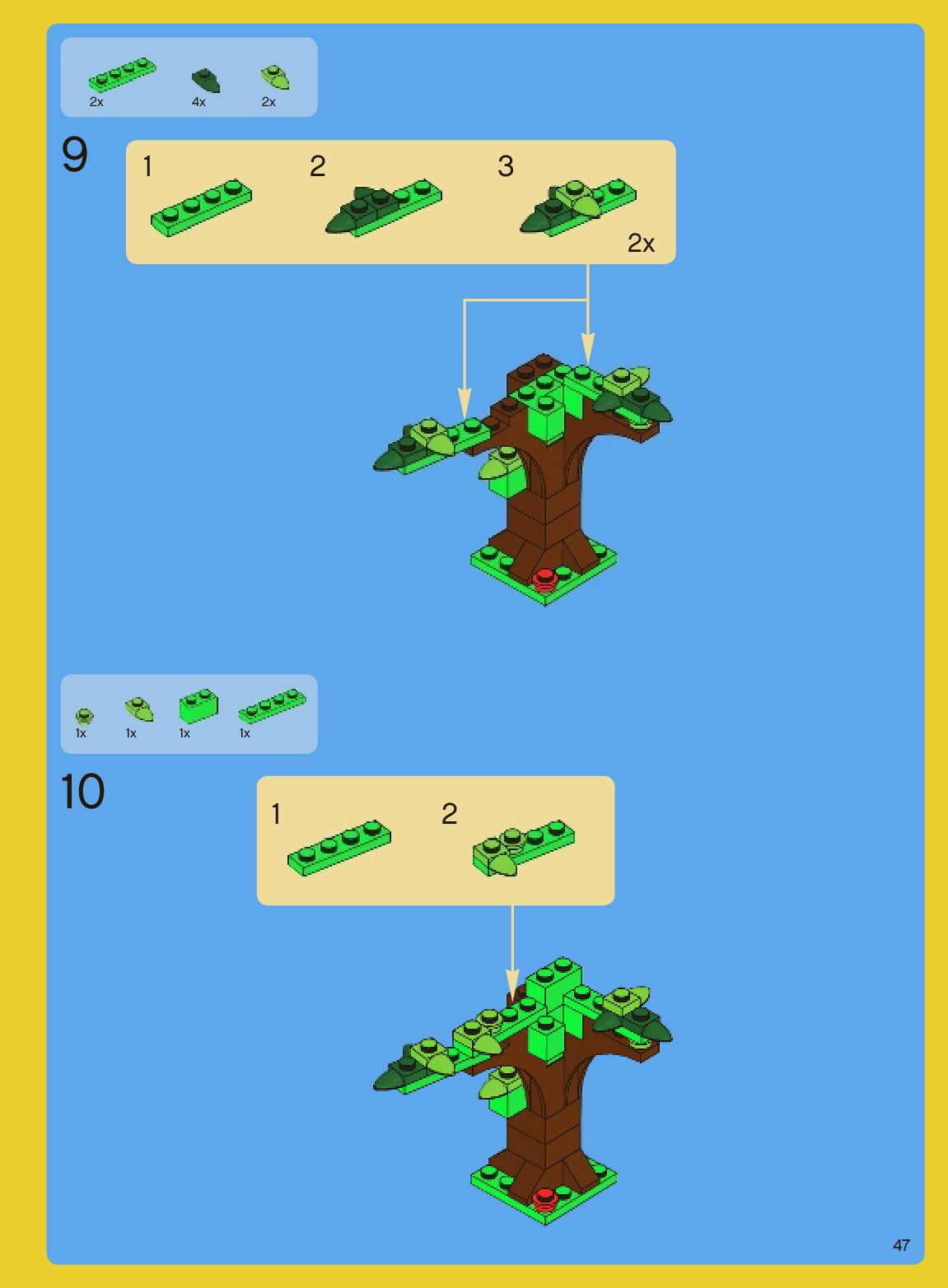 The assembly guide is prepared in a very understandable way for children and adult LEGO enthusiasts. A total of 140 picture galleries are shown, explaining the step-by-step construction stages for 2 different structures.