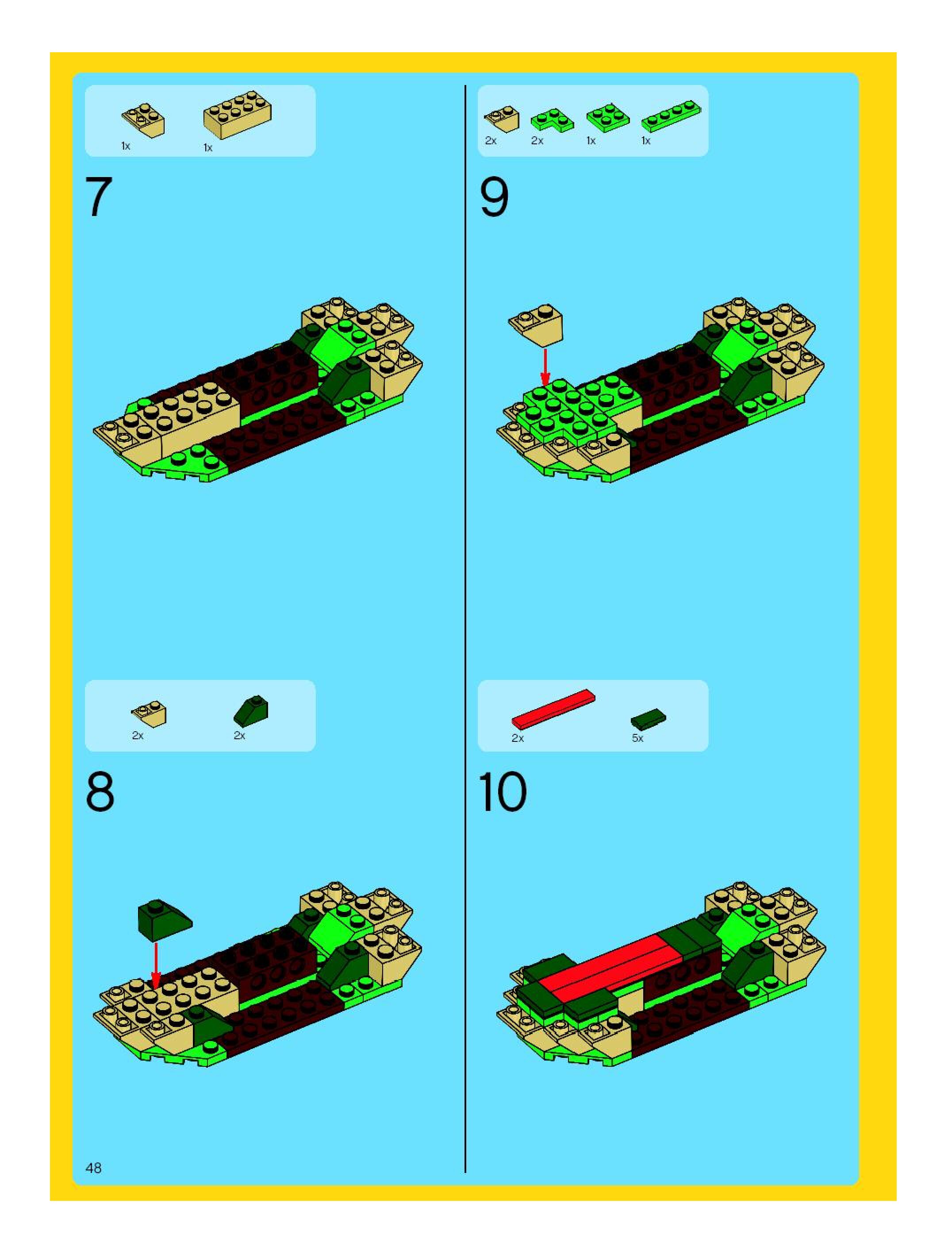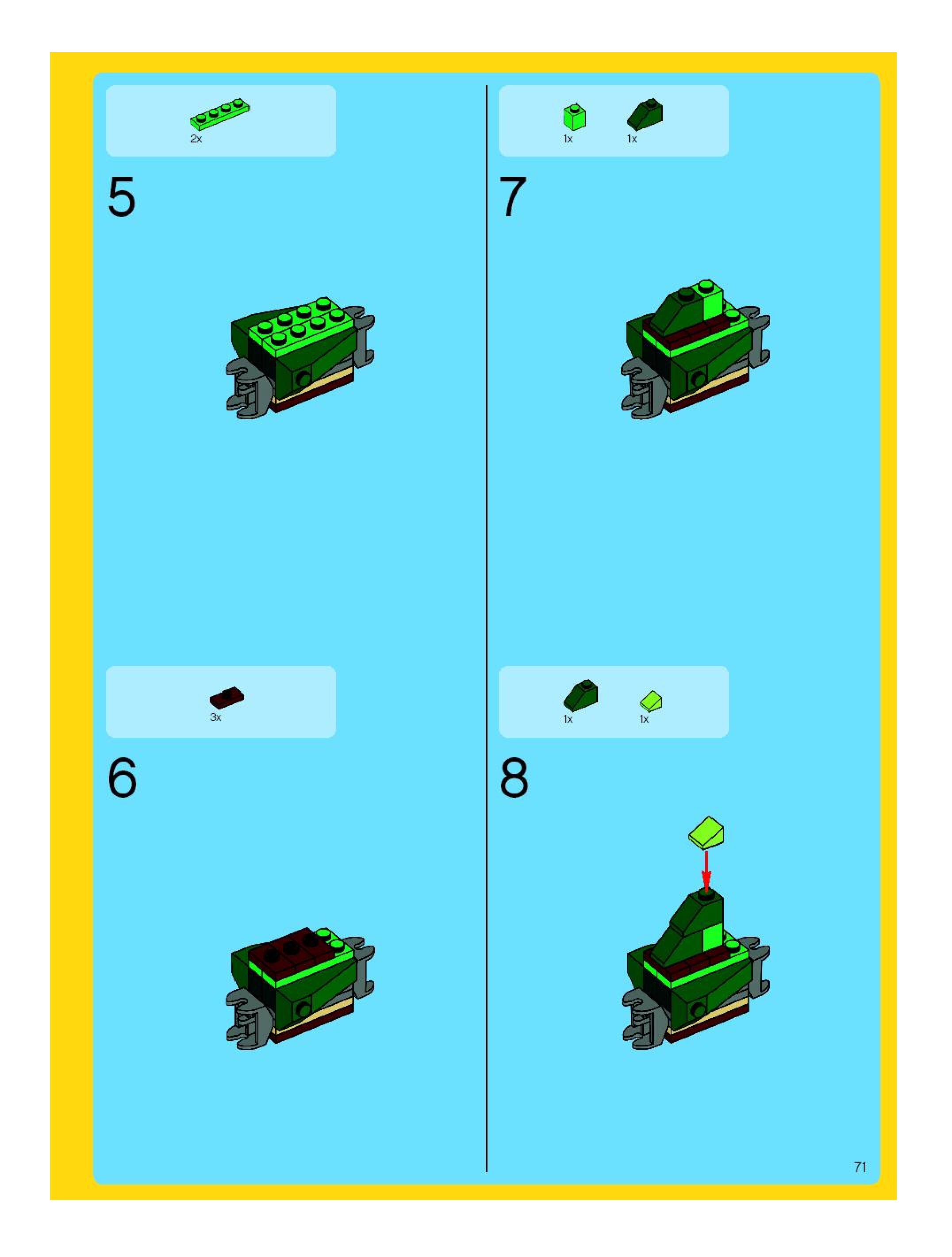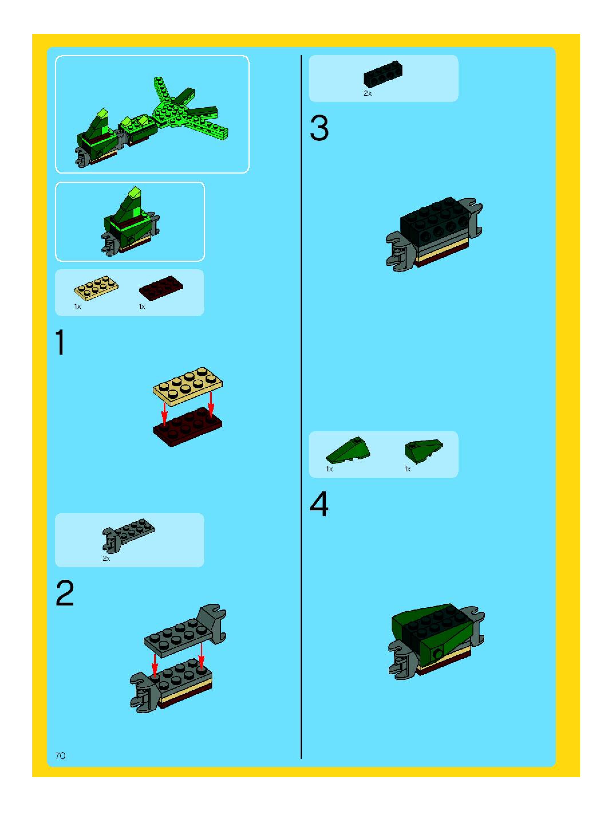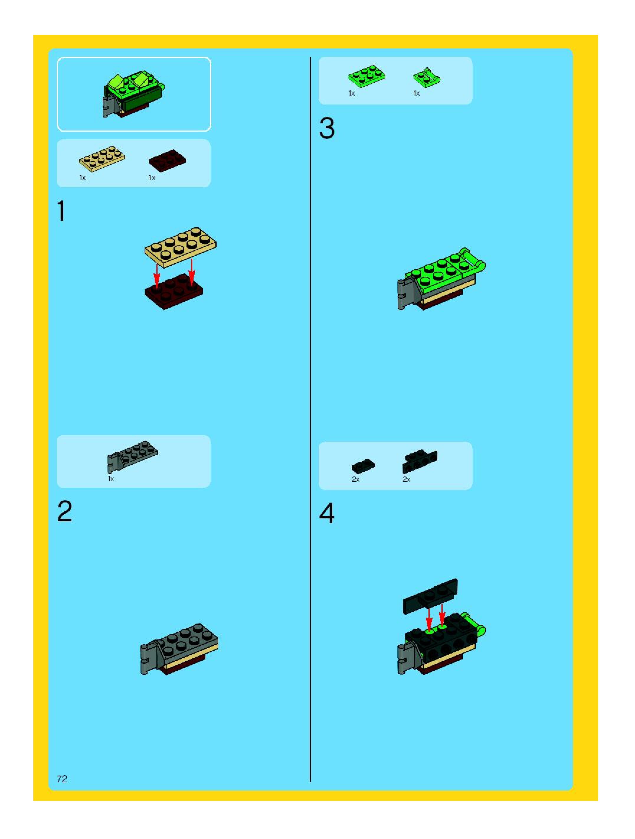 The assembly guide is prepared in a very understandable way for children and adult LEGO enthusiasts. A total of 128 picture galleries are shown, explaining the step-by-step construction stages for 2 different structures.