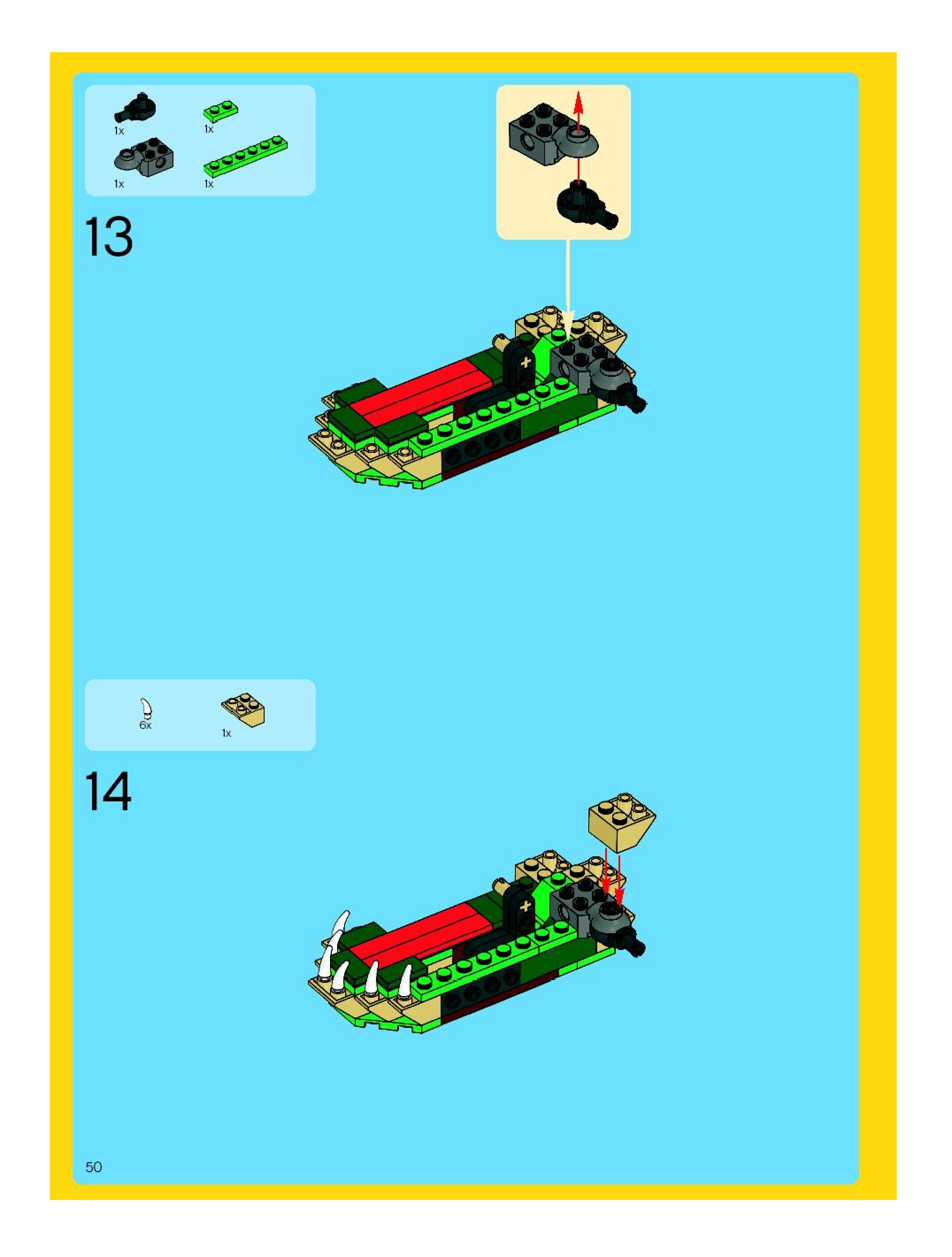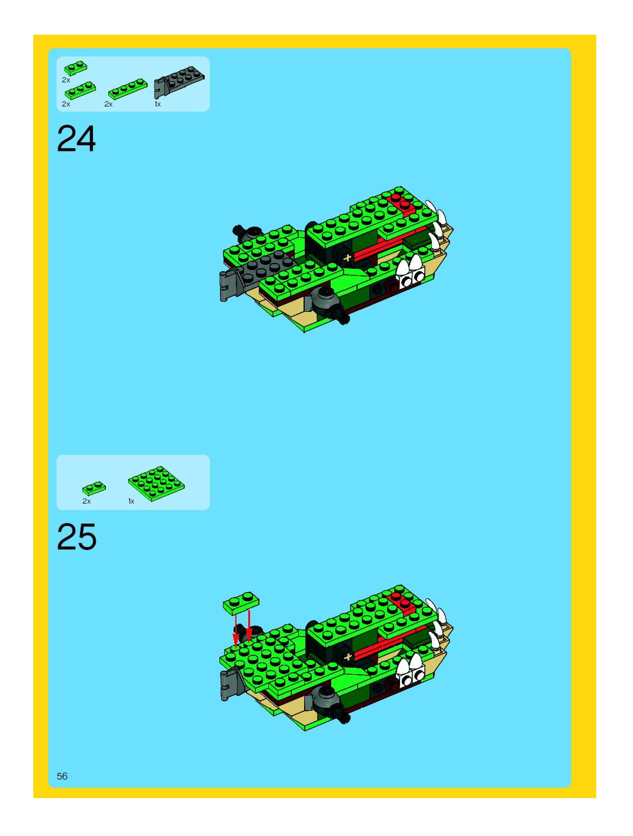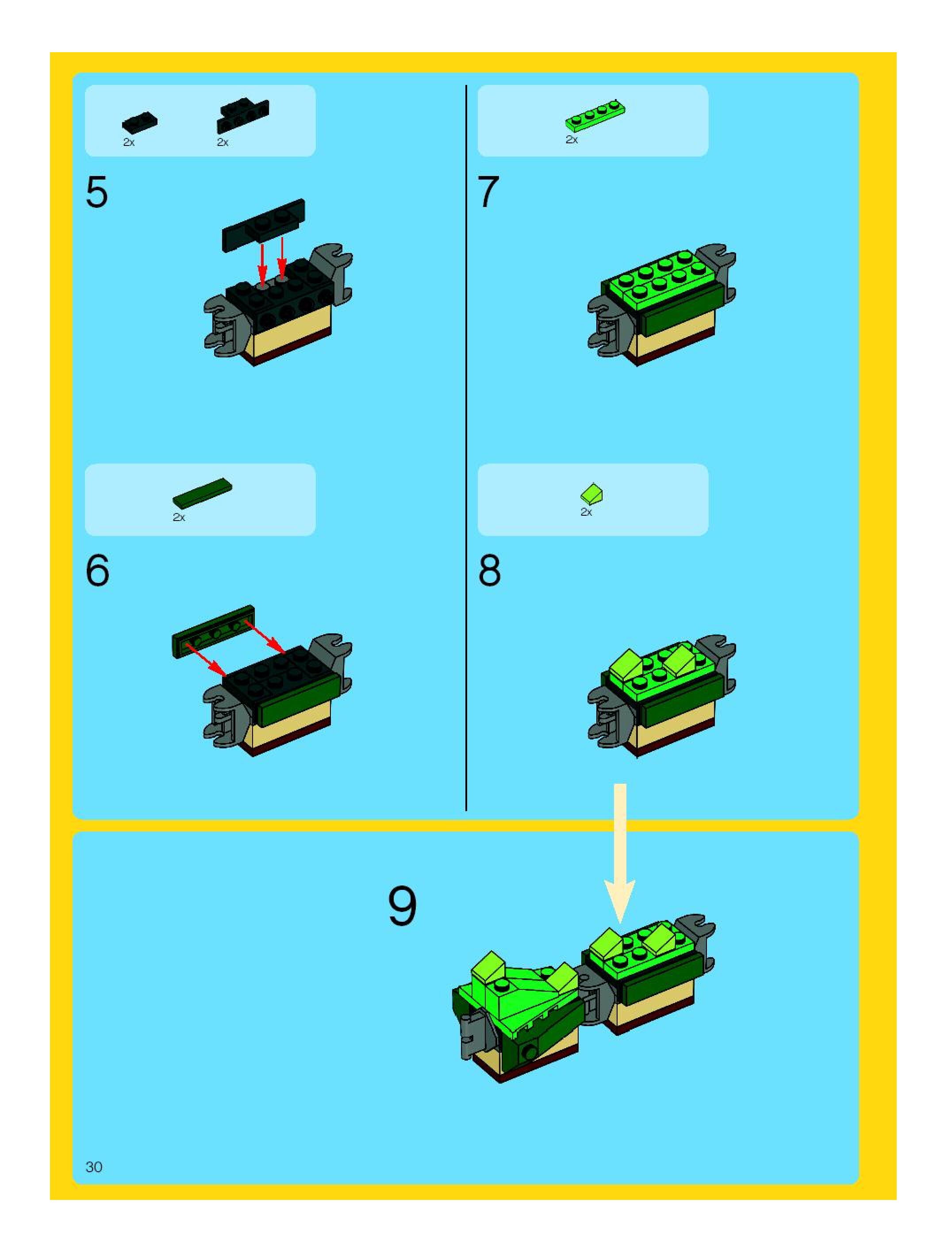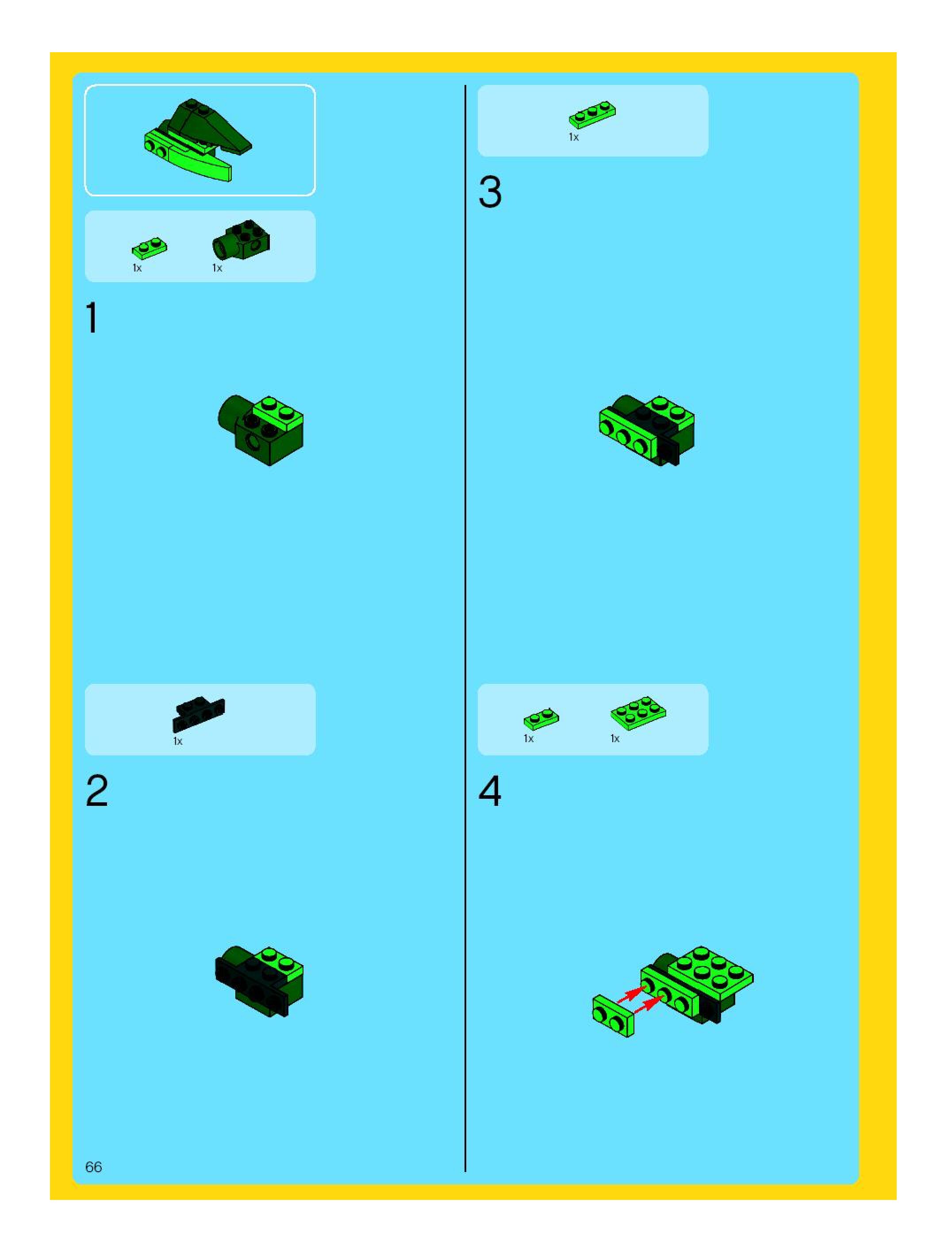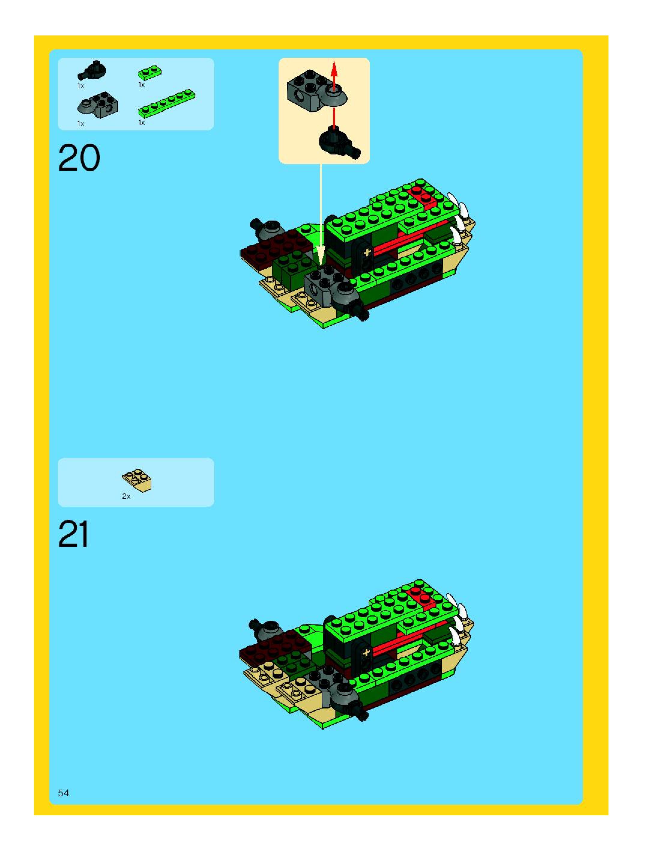 The assembly guide is prepared in a very understandable way for children and adult LEGO enthusiasts. A total of 128 picture galleries are shown, explaining the step-by-step construction stages for 2 different structures.