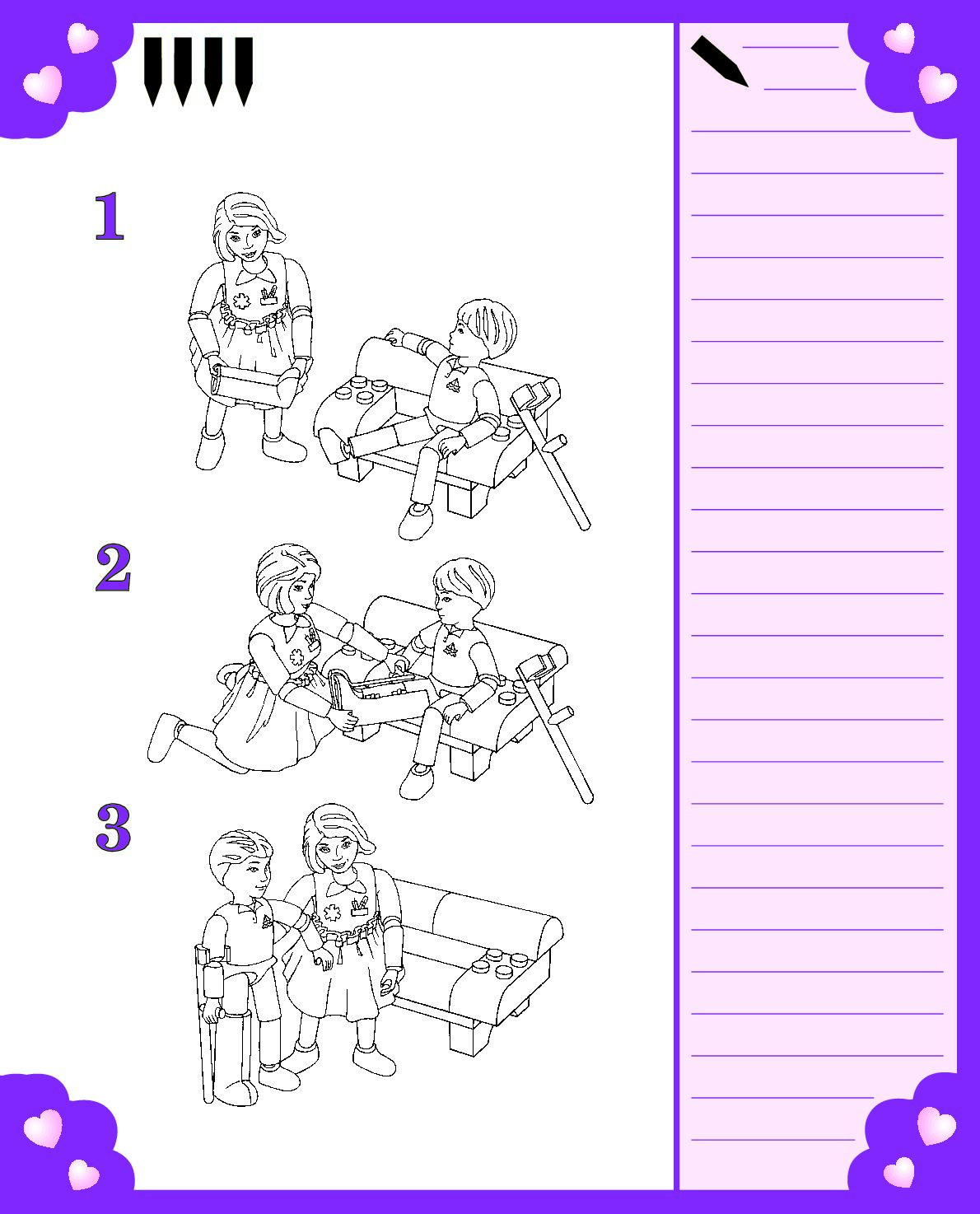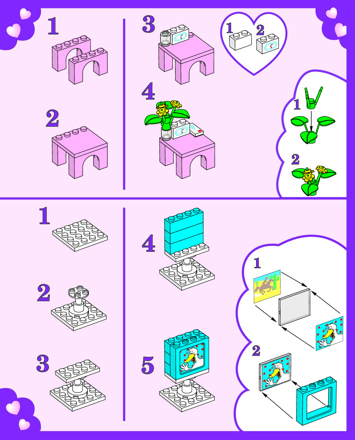 The assembly guide is prepared in a very understandable way for children and adult LEGO enthusiasts. A total of 16 picture galleries are shown, explaining the step-by-step construction stages for 1 different structures.