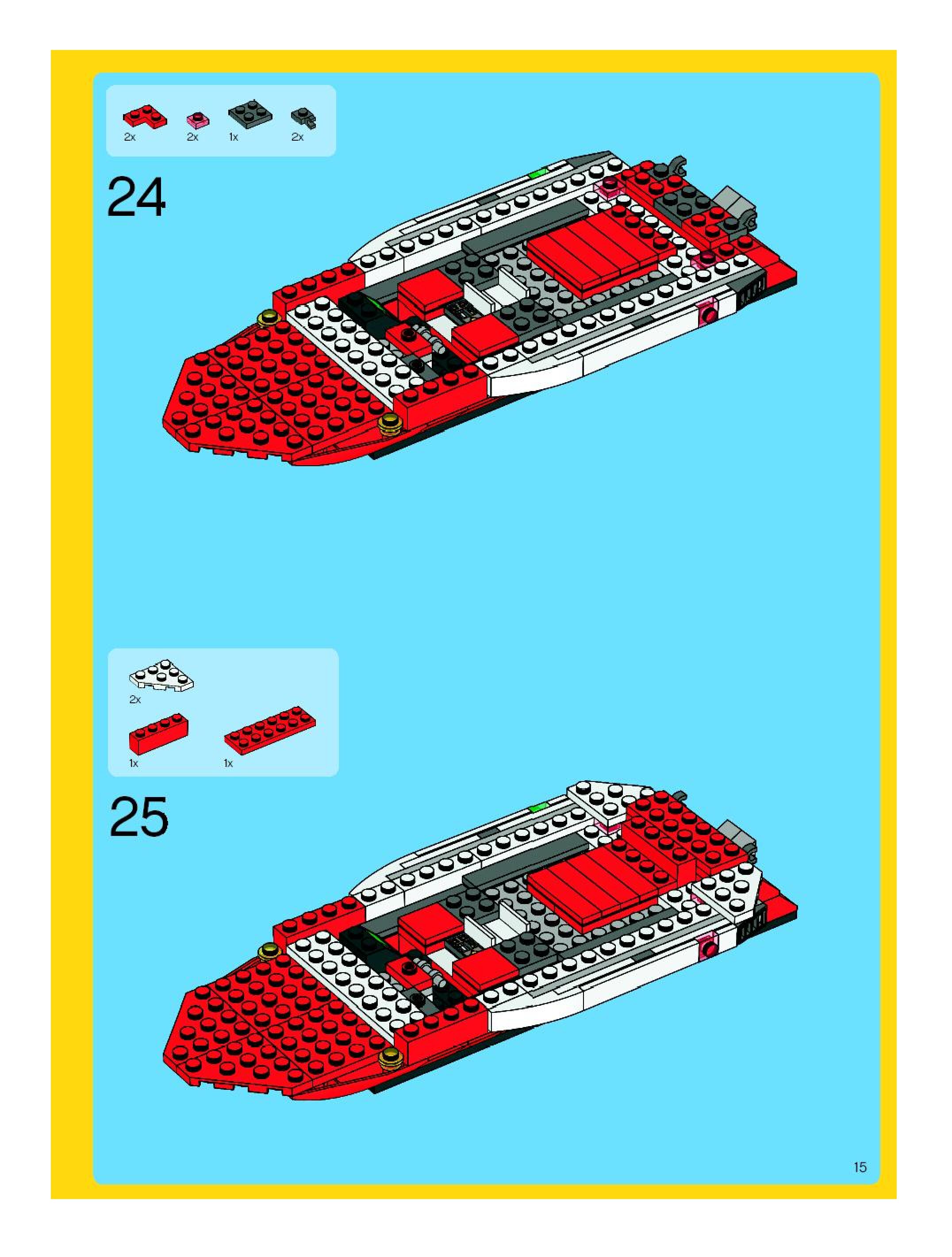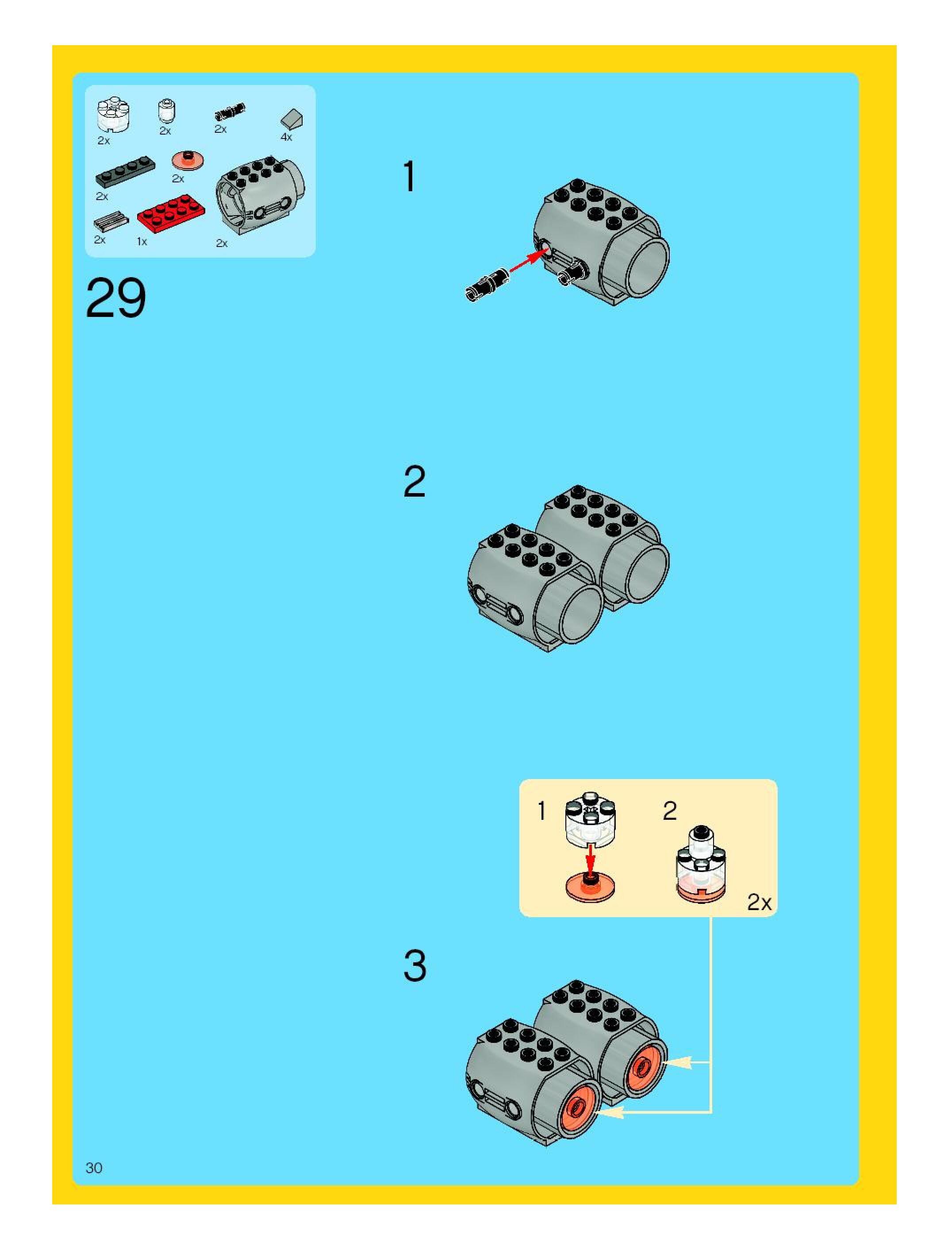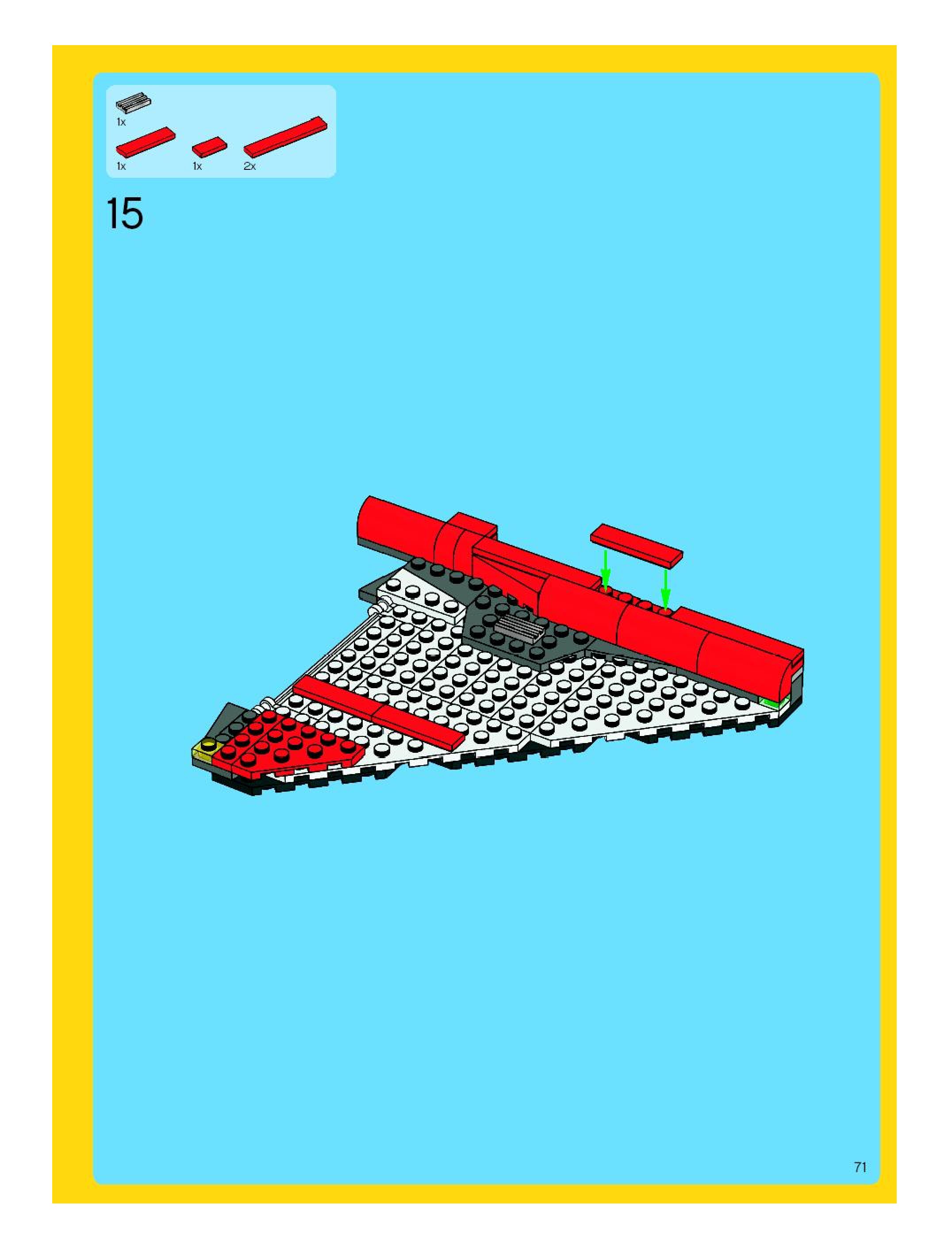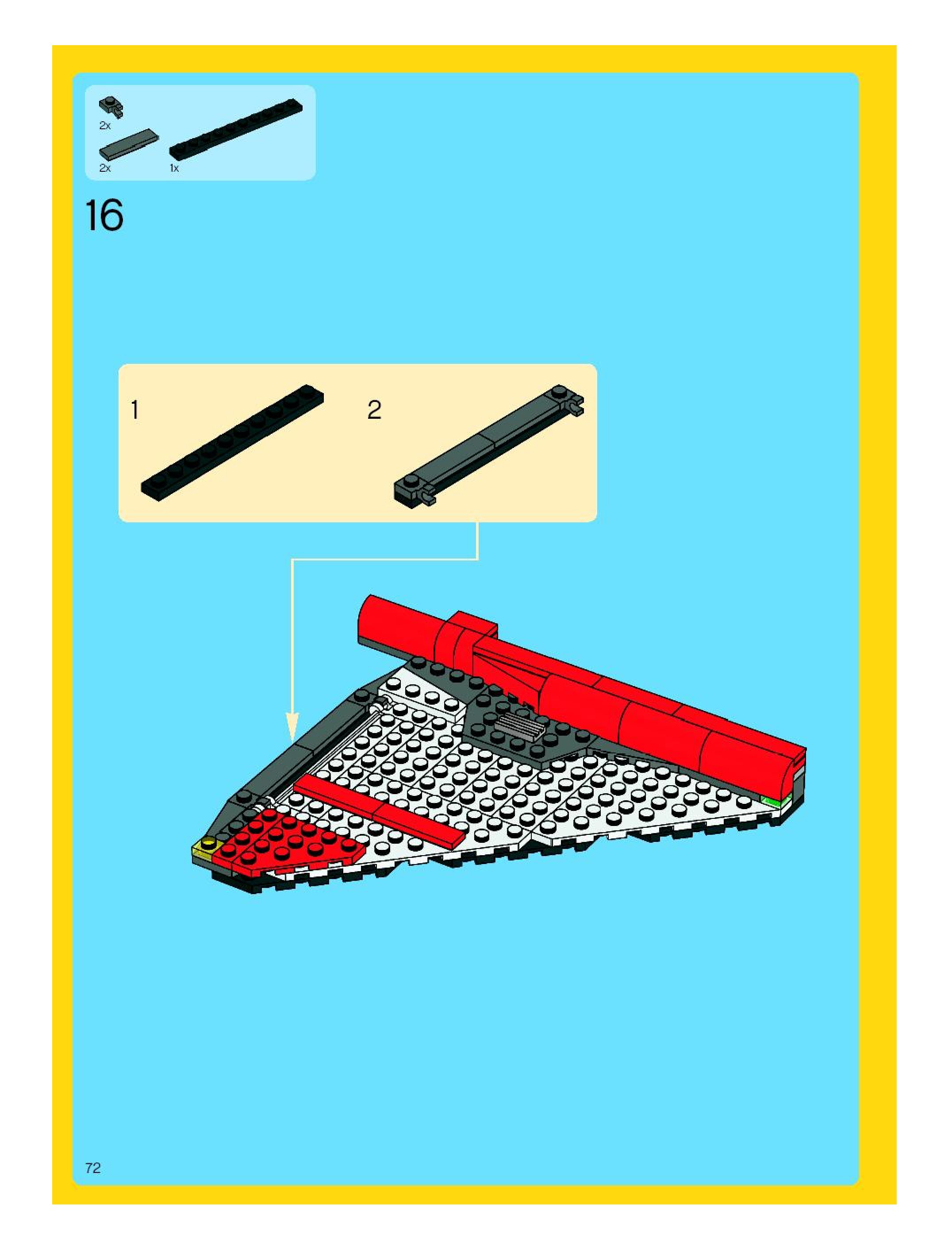 The assembly guide is prepared in a very understandable way for children and adult LEGO enthusiasts. A total of 196 picture galleries are shown, explaining the step-by-step construction stages for 3 different structures.