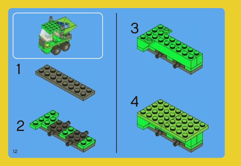 The assembly guide is prepared in a very understandable way for children and adult LEGO enthusiasts. A total of 34 picture galleries are shown, explaining the step-by-step construction stages for 3 different structures.