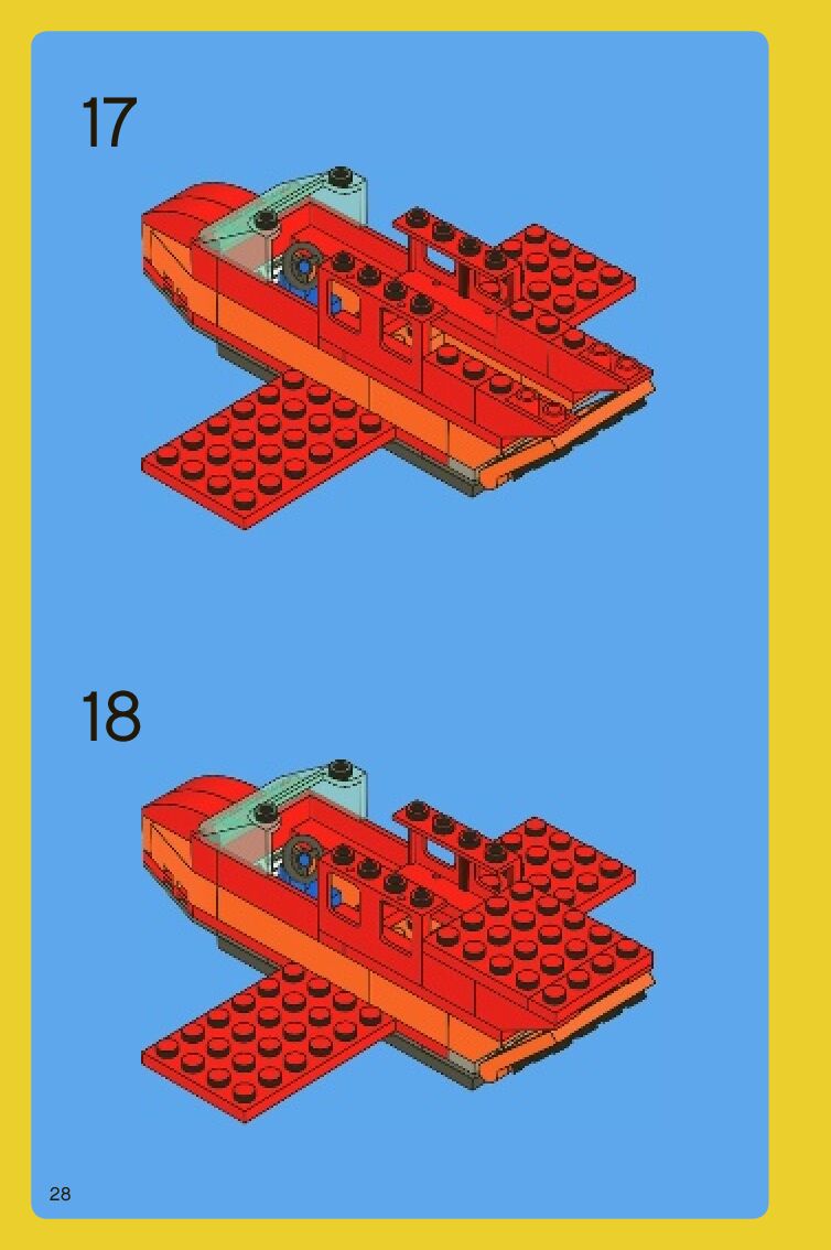 The assembly guide is prepared in a very understandable way for children and adult LEGO enthusiasts. A total of 57 picture galleries are shown, explaining the step-by-step construction stages for 3 different structures.