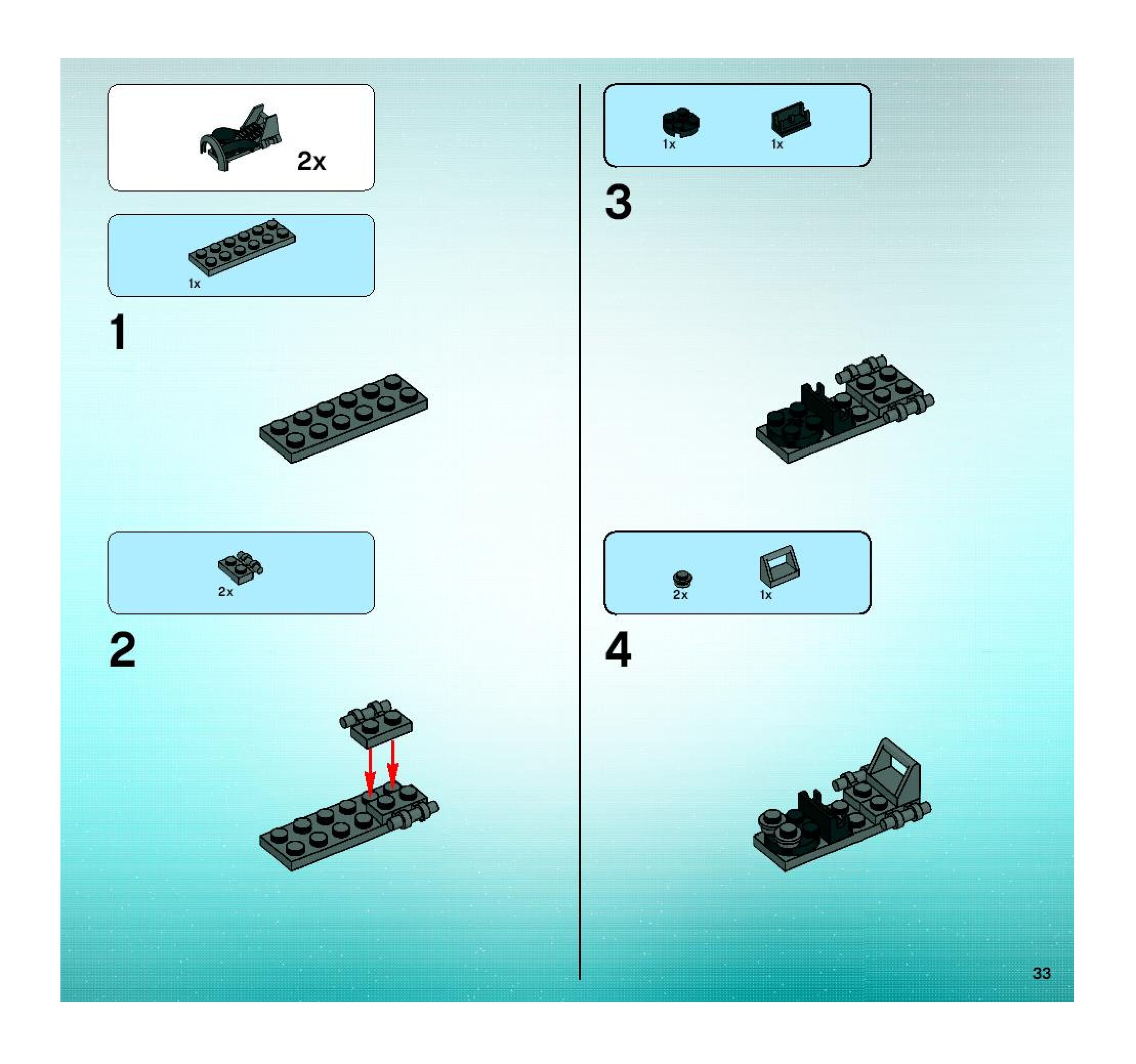 The assembly guide is prepared in a very understandable way for children and adult LEGO enthusiasts. A total of 576 picture galleries are shown, explaining the step-by-step construction stages for 2 different structures.