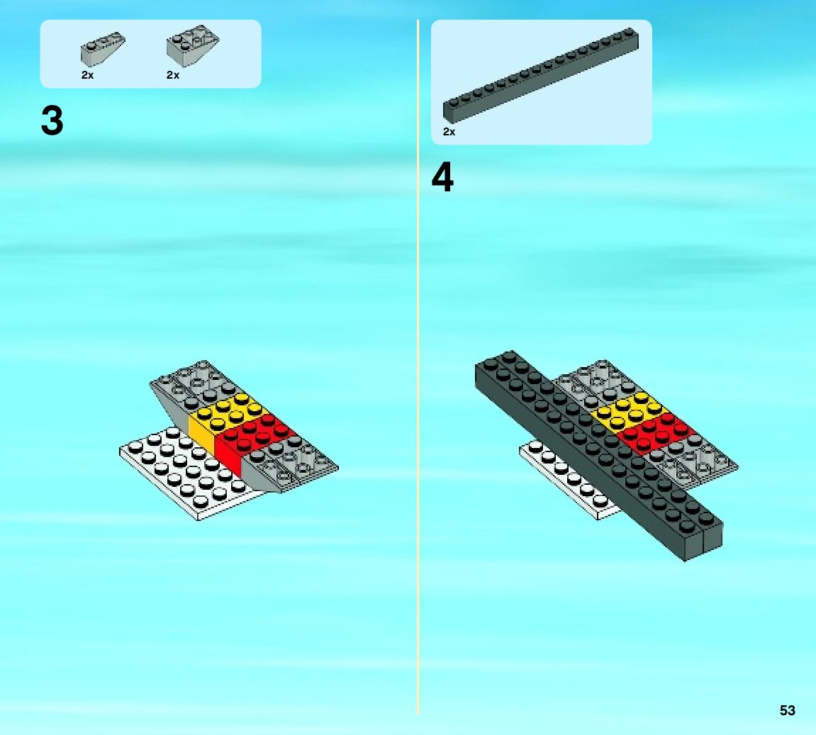 The assembly guide is prepared in a very understandable way for children and adult LEGO enthusiasts. A total of 132 picture galleries are shown, explaining the step-by-step construction stages for 3 different structures.