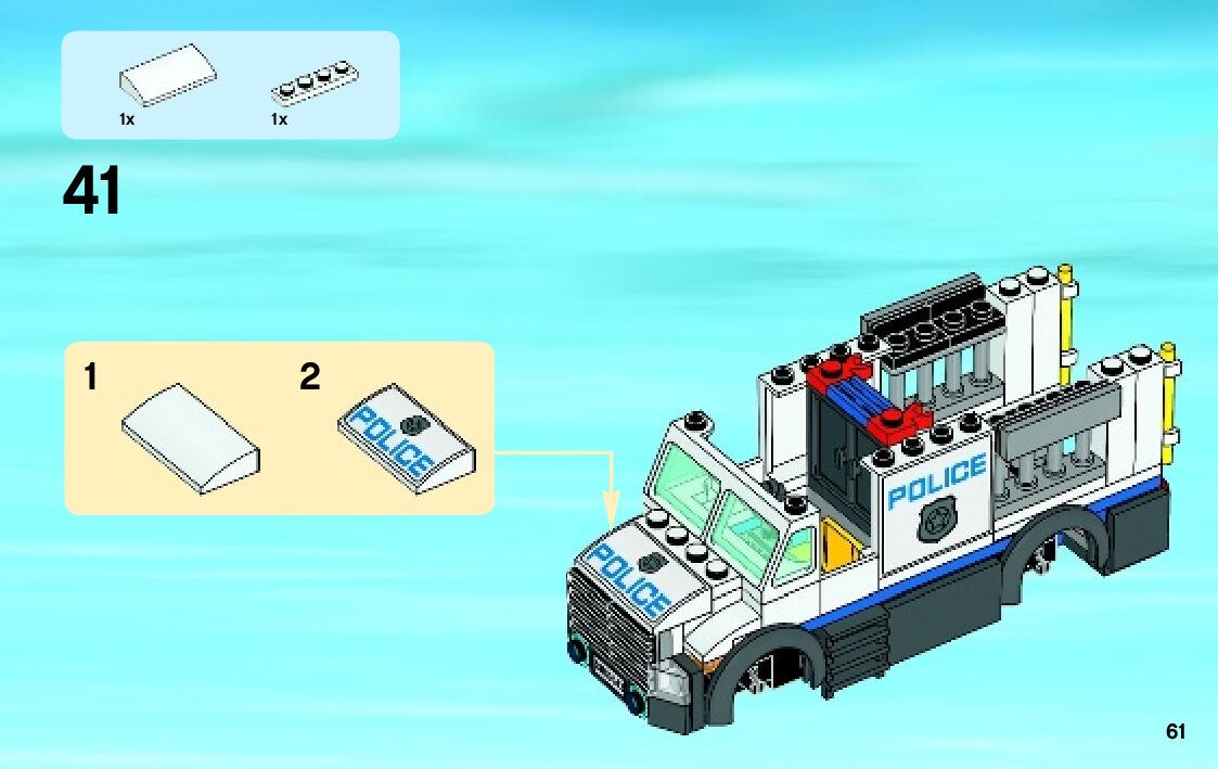 This page shares information about LEGO 60043 Prisoner Transporter manual, LEGO 60043 PDF instructions, LEGO 60043 Prisoner Transporter building guide online, How to build 60043 Prisoner Transporter LEGO.