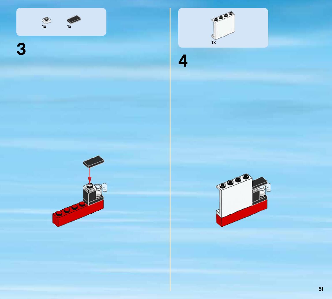 The assembly guide is prepared in a very understandable way for children and adult LEGO enthusiasts. A total of 152 picture galleries are shown, explaining the step-by-step construction stages for 3 different structures.