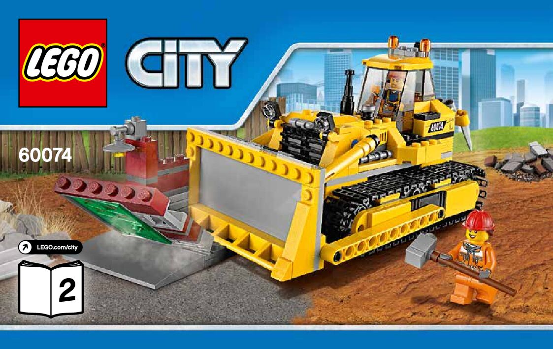 This page shares information about LEGO 60074 Bulldozer manual, LEGO 60074 PDF instructions, LEGO 60074 Bulldozer building guide online, How to build 60074 Bulldozer LEGO.