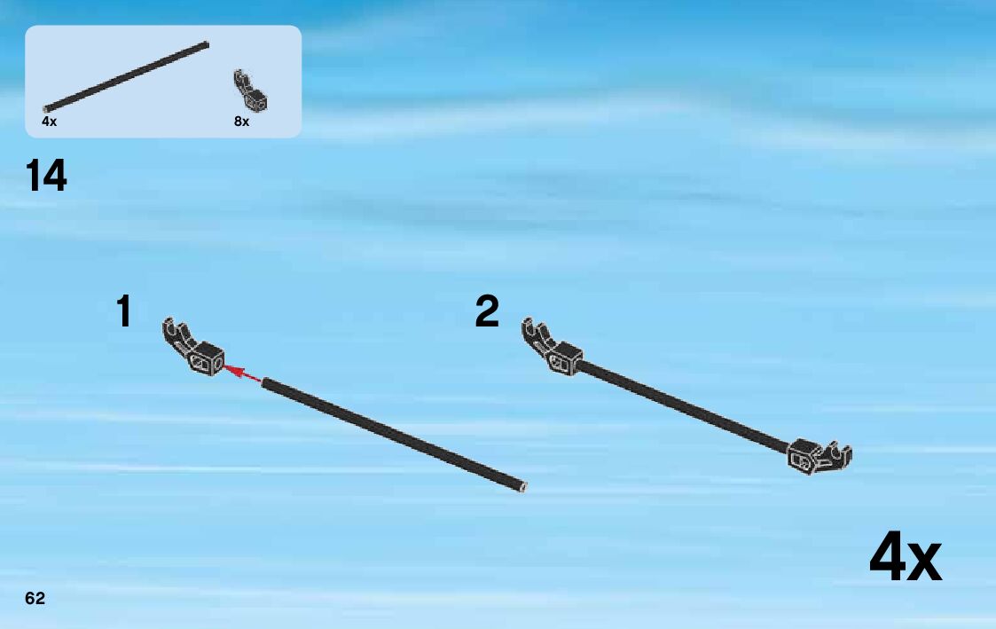 The assembly guide is prepared in a very understandable way for children and adult LEGO enthusiasts. A total of 112 picture galleries are shown, explaining the step-by-step construction stages for 2 different structures.