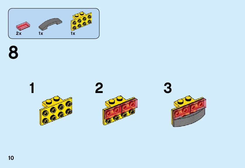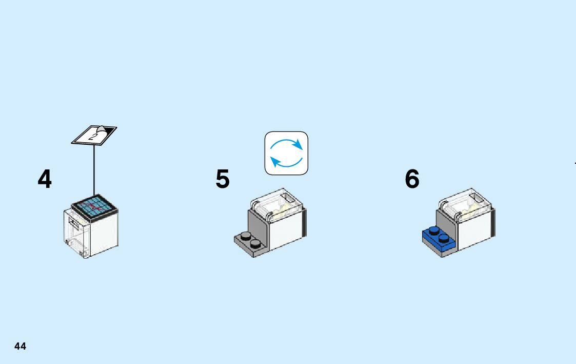 The assembly guide is prepared in a very understandable way for children and adult LEGO enthusiasts. A total of 168 picture galleries are shown, explaining the step-by-step construction stages for 3 different structures.