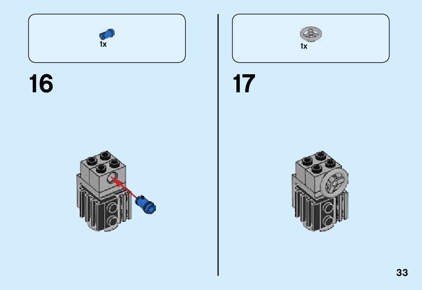 The assembly guide is prepared in a very understandable way for children and adult LEGO enthusiasts. A total of 40 picture galleries are shown, explaining the step-by-step construction stages for 1 different structures.