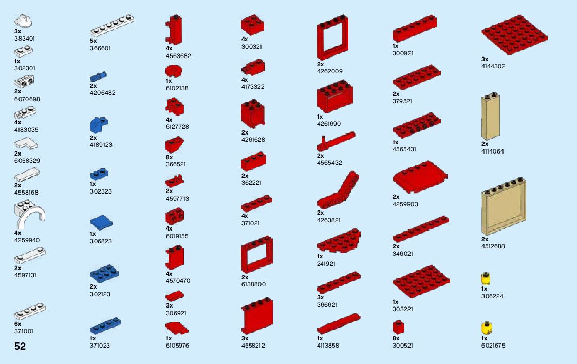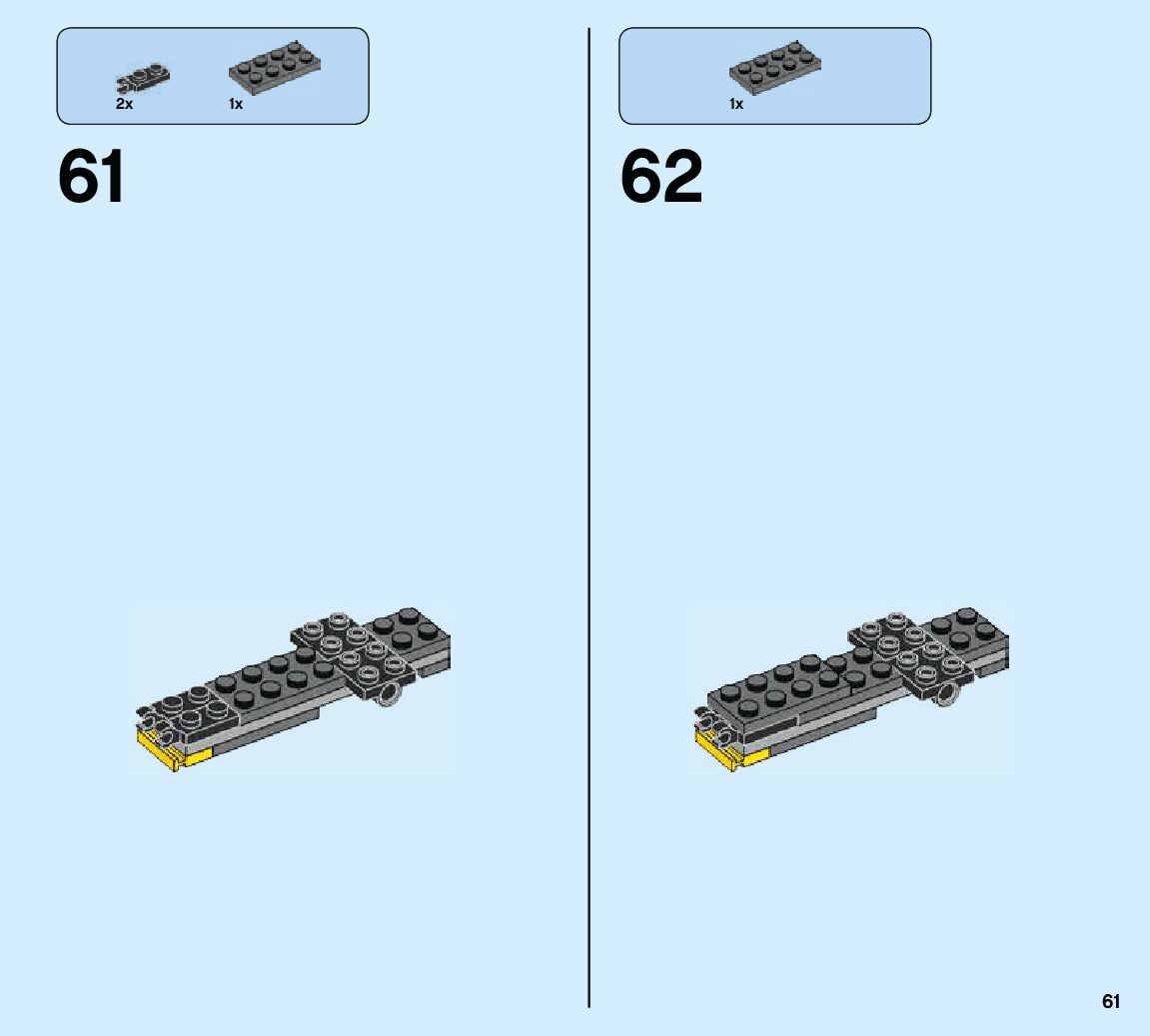 The assembly guide is prepared in a very understandable way for children and adult LEGO enthusiasts. A total of 140 picture galleries are shown, explaining the step-by-step construction stages for 2 different structures.