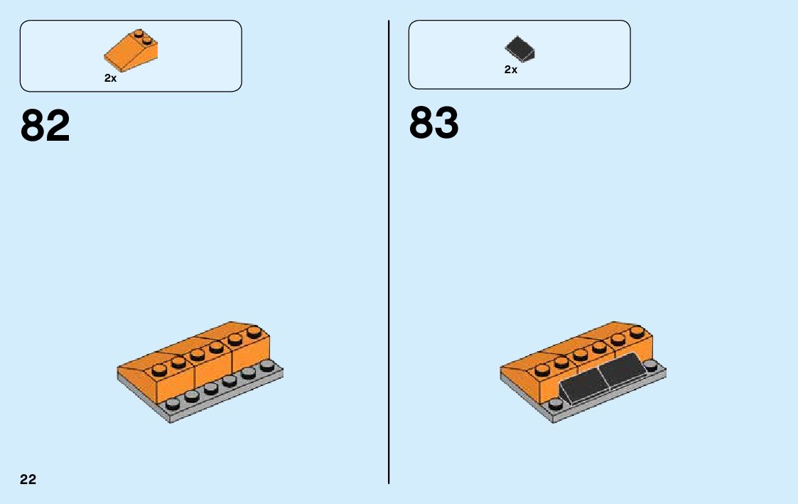 The assembly guide is prepared in a very understandable way for children and adult LEGO enthusiasts. A total of 112 picture galleries are shown, explaining the step-by-step construction stages for 2 different structures.