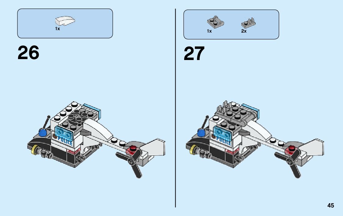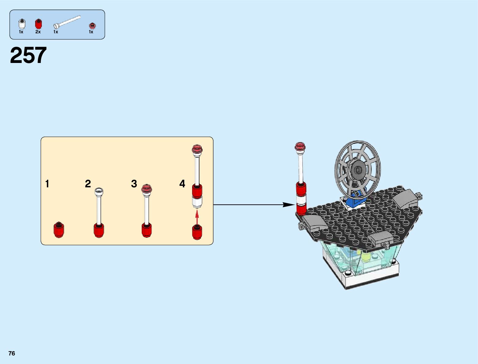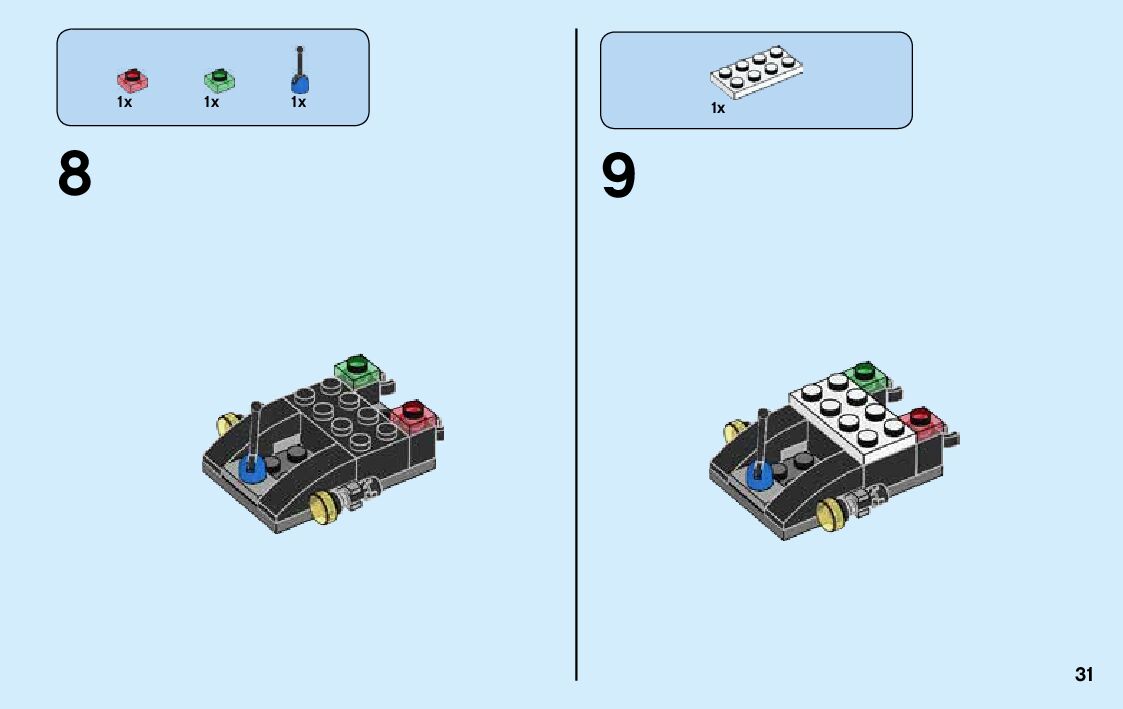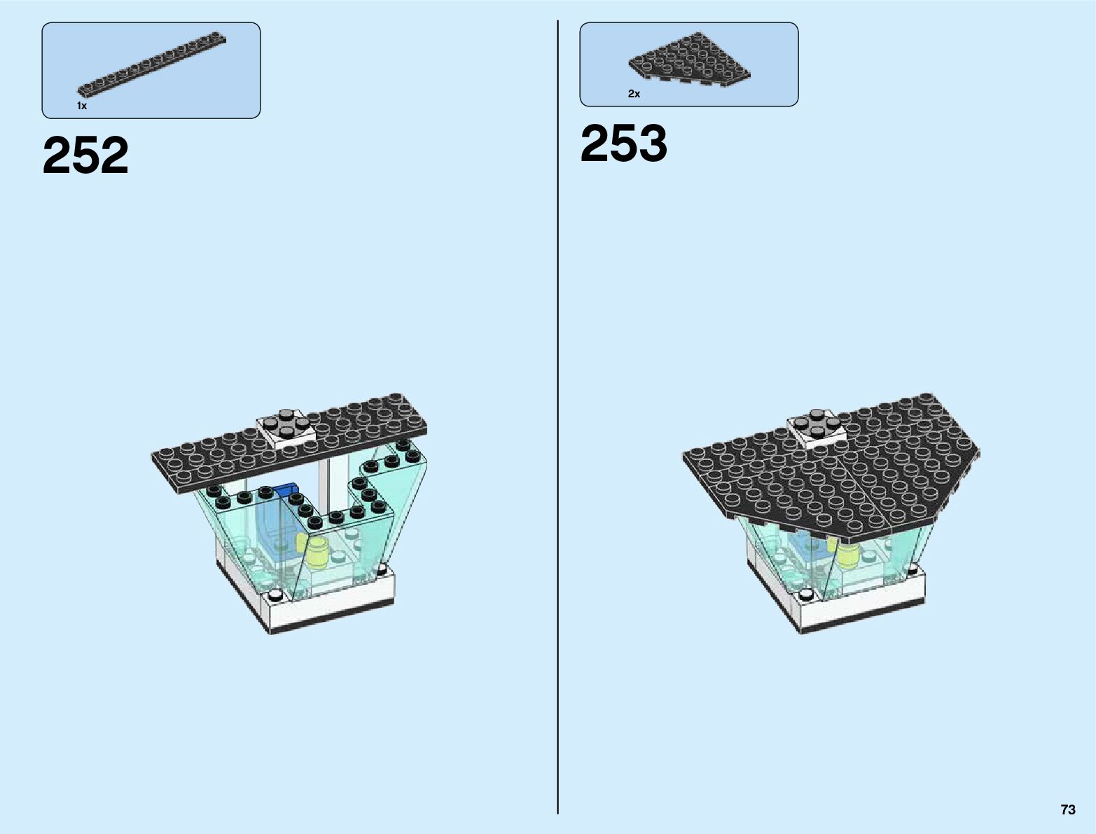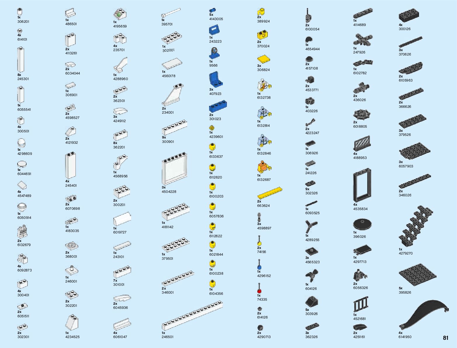 The assembly guide is prepared in a very understandable way for children and adult LEGO enthusiasts. A total of 356 picture galleries are shown, explaining the step-by-step construction stages for 6 different structures.