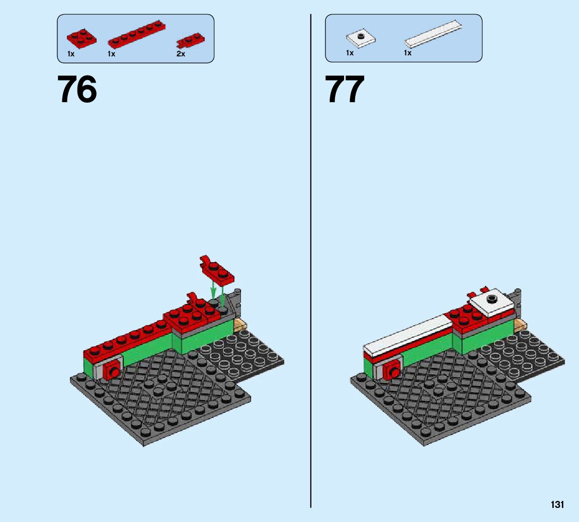 The assembly guide is prepared in a very understandable way for children and adult LEGO enthusiasts. A total of 332 picture galleries are shown, explaining the step-by-step construction stages for 2 different structures.