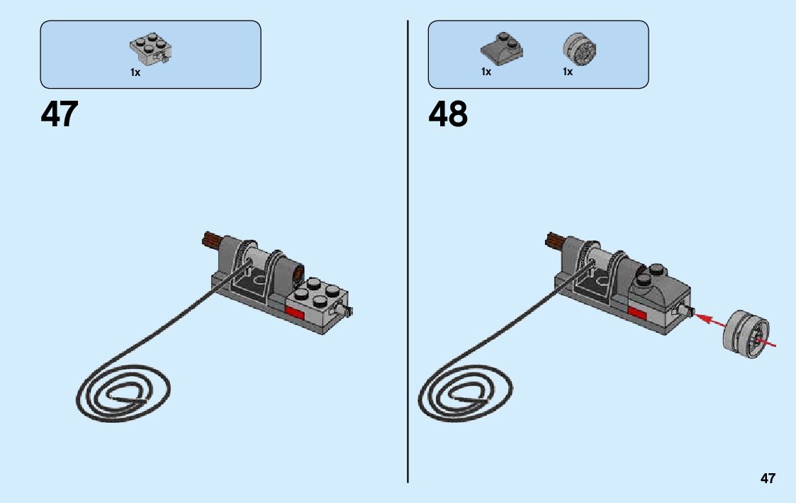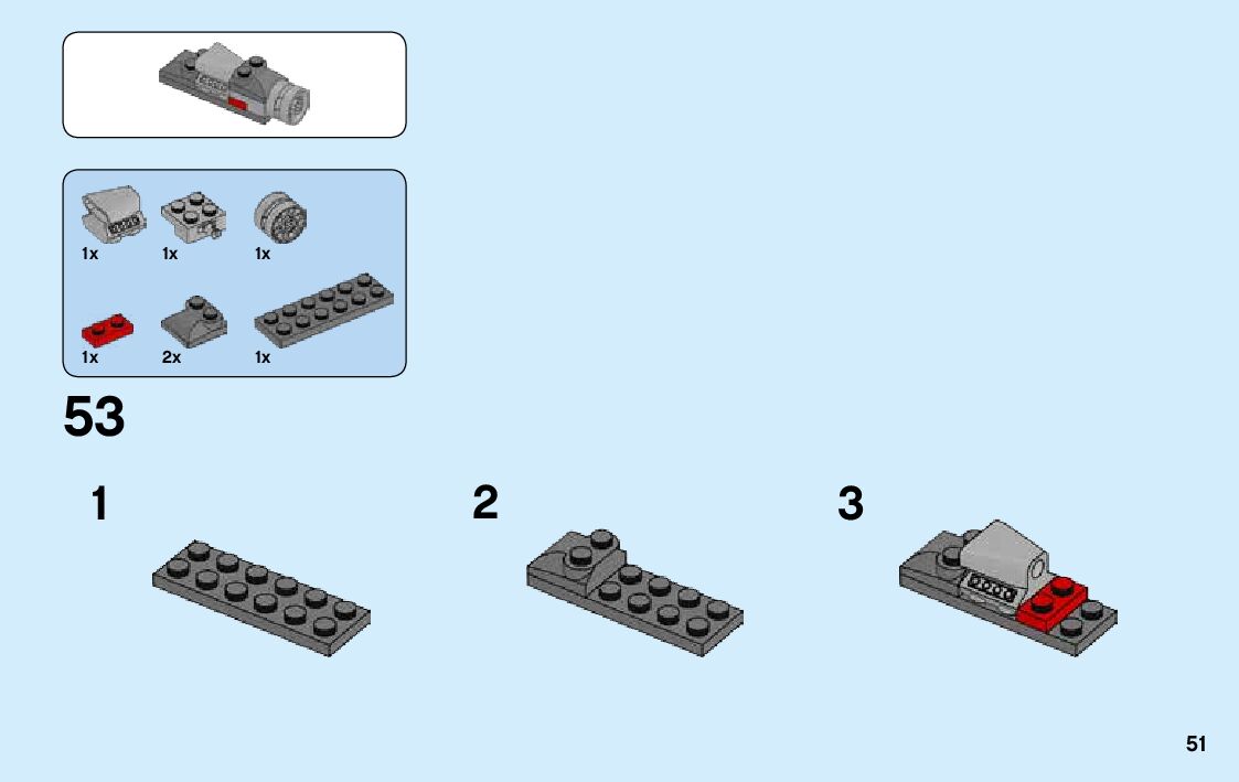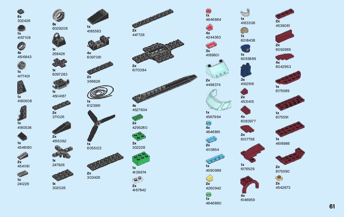 The assembly guide is prepared in a very understandable way for children and adult LEGO enthusiasts. A total of 120 picture galleries are shown, explaining the step-by-step construction stages for 3 different structures.