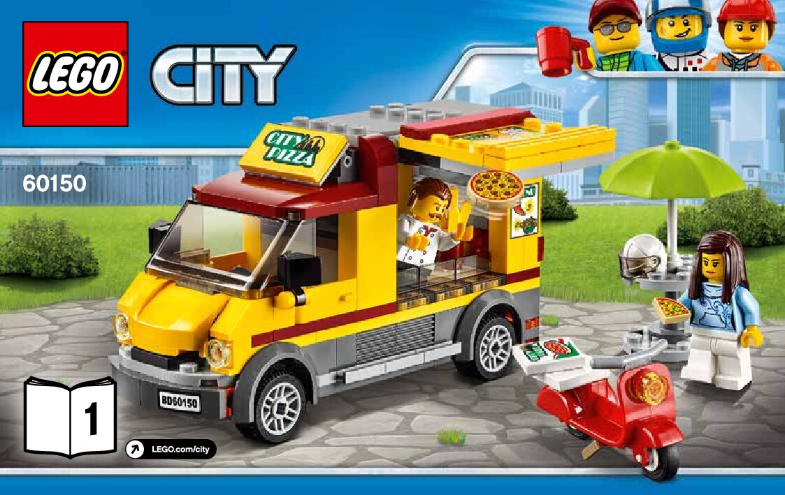 This page shares information about LEGO 60150 Pizza Van manual, LEGO 60150 PDF instructions, LEGO 60150 Pizza Van building guide online, How to build 60150 Pizza Van LEGO.