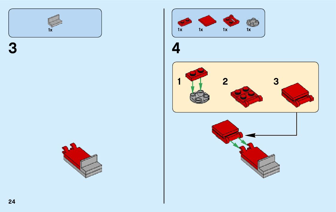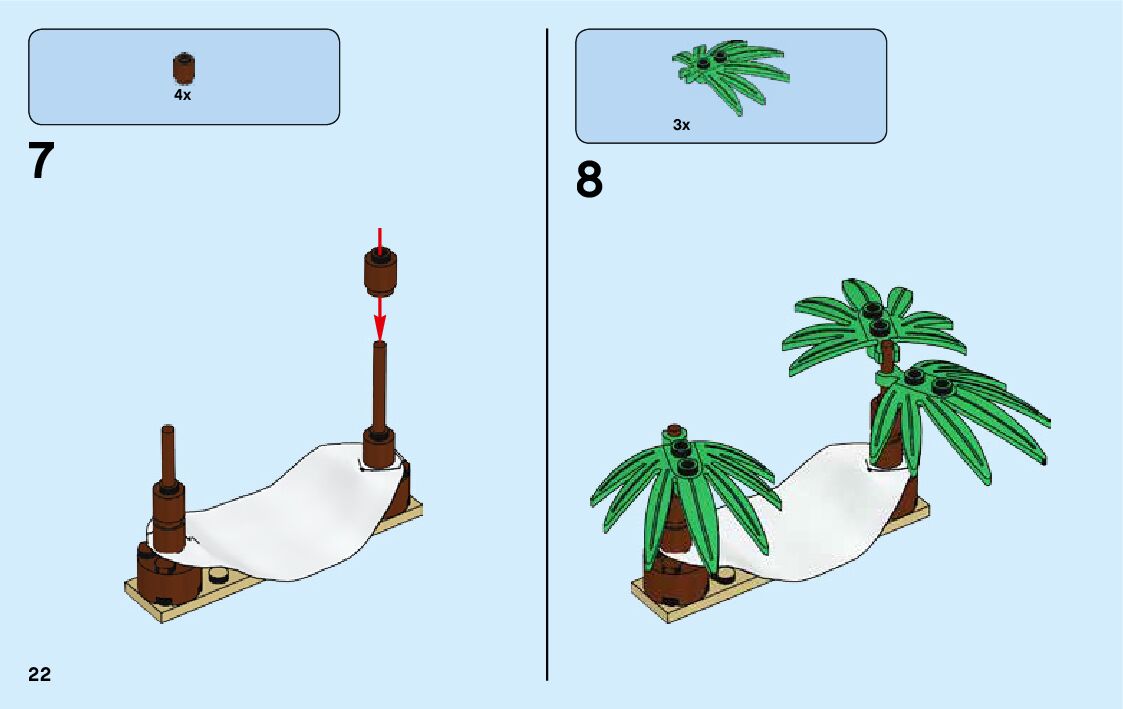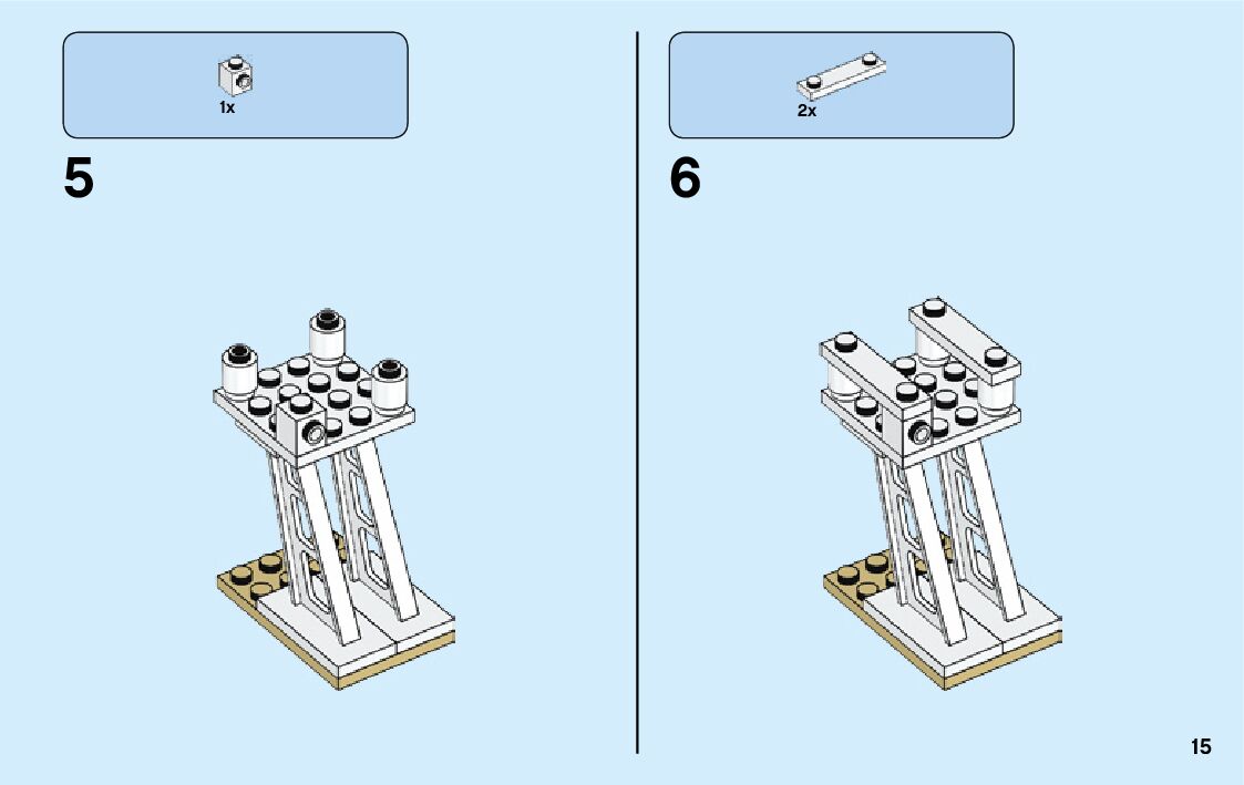The assembly guide is prepared in a very understandable way for children and adult LEGO enthusiasts. A total of 60 picture galleries are shown, explaining the step-by-step construction stages for 2 different structures.