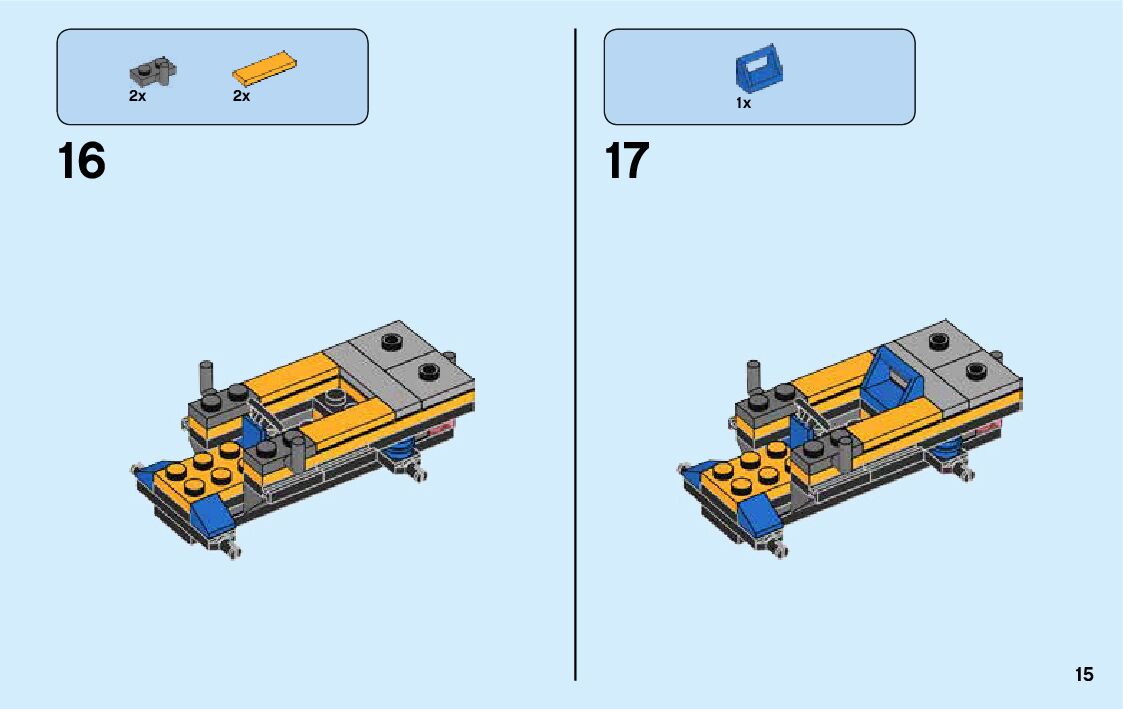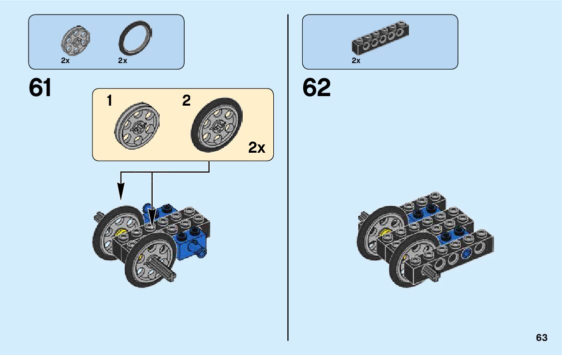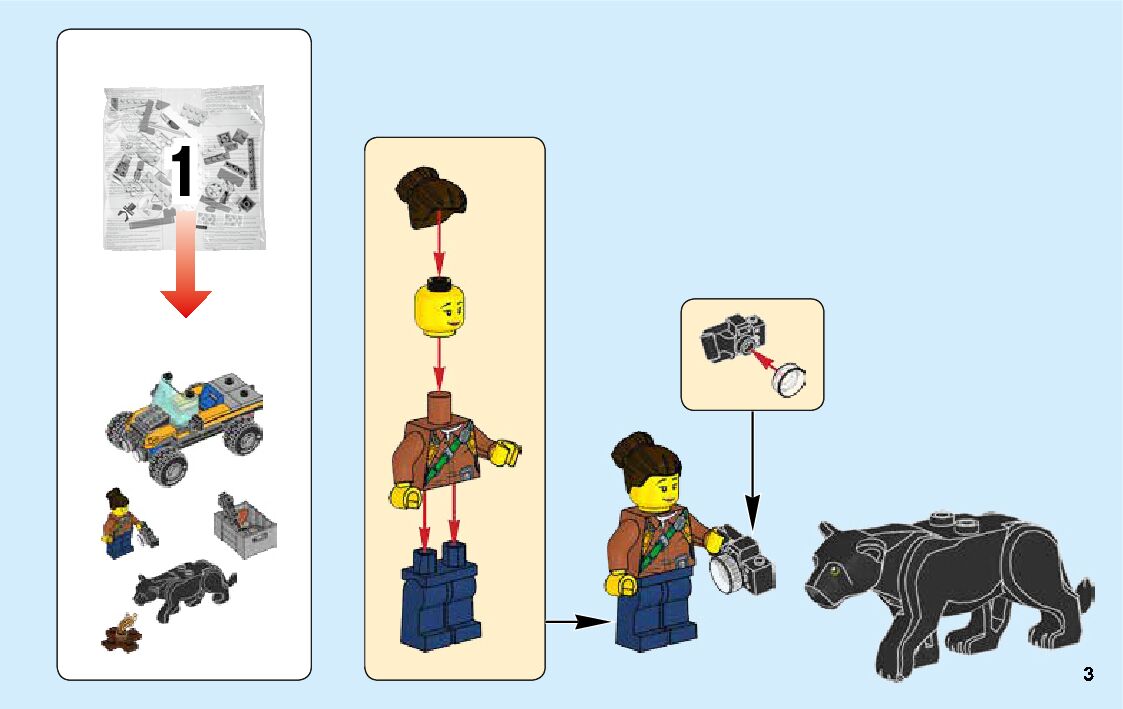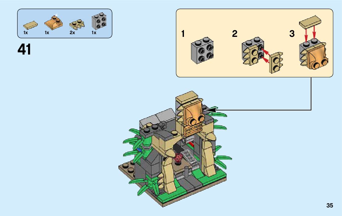 The assembly guide is prepared in a very understandable way for children and adult LEGO enthusiasts. A total of 136 picture galleries are shown, explaining the step-by-step construction stages for 3 different structures.