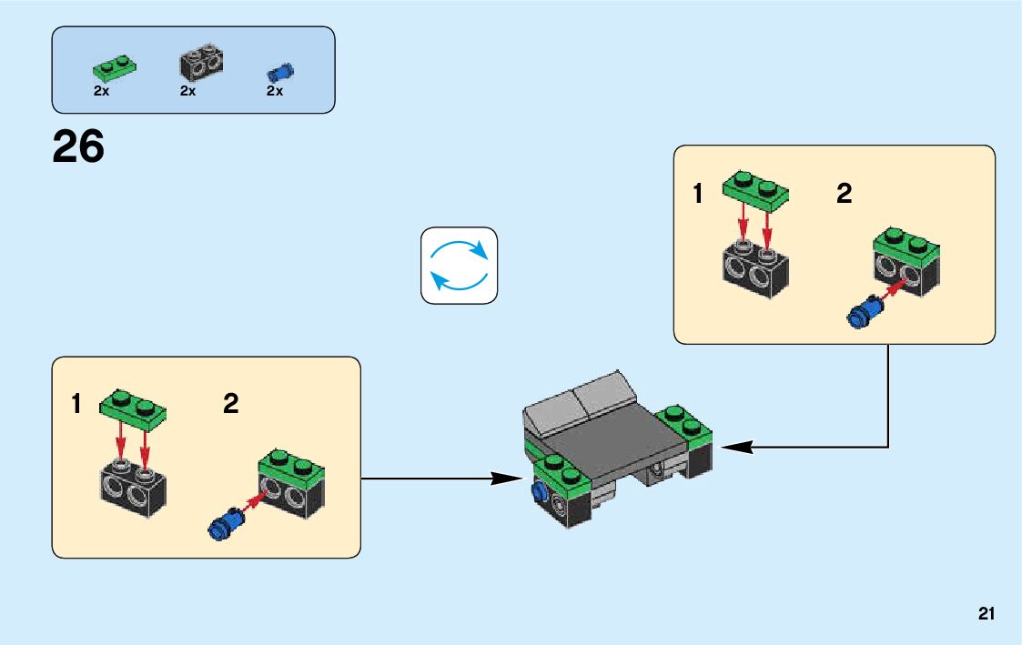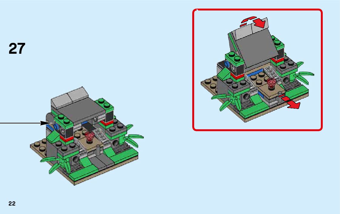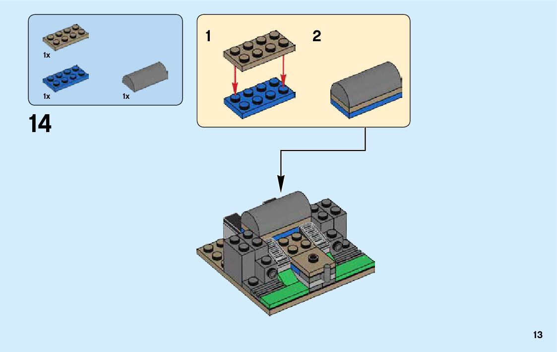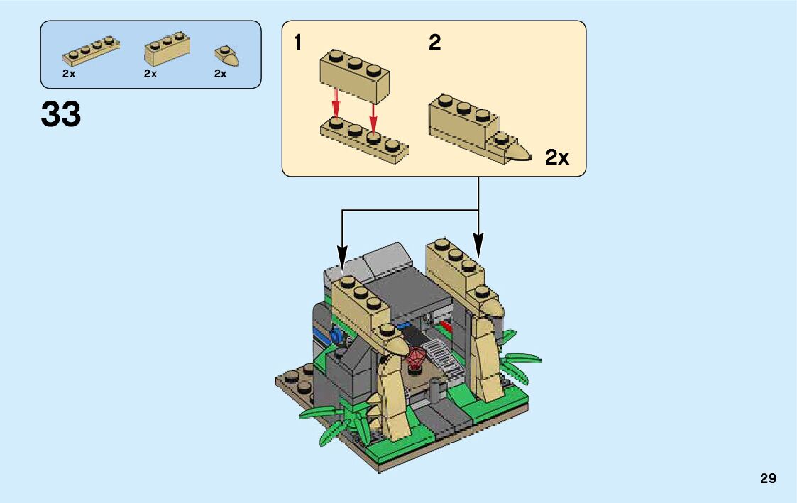 The assembly guide is prepared in a very understandable way for children and adult LEGO enthusiasts. A total of 136 picture galleries are shown, explaining the step-by-step construction stages for 3 different structures.
