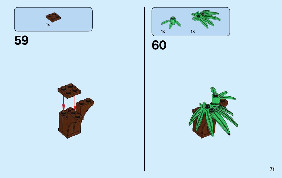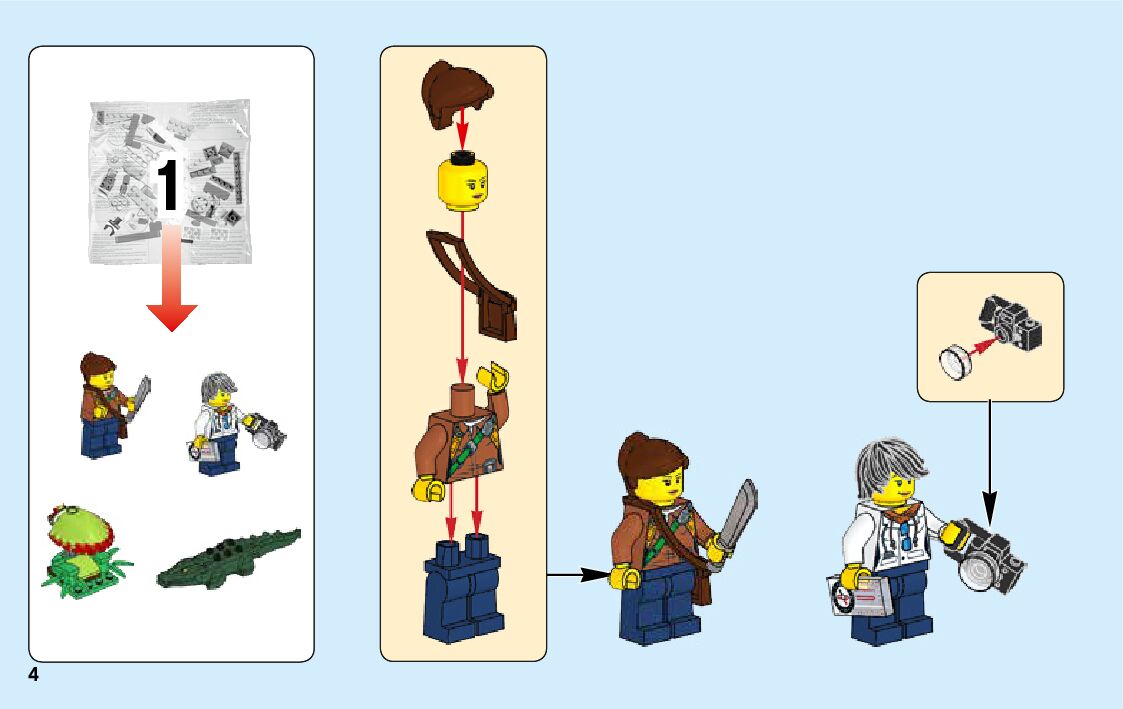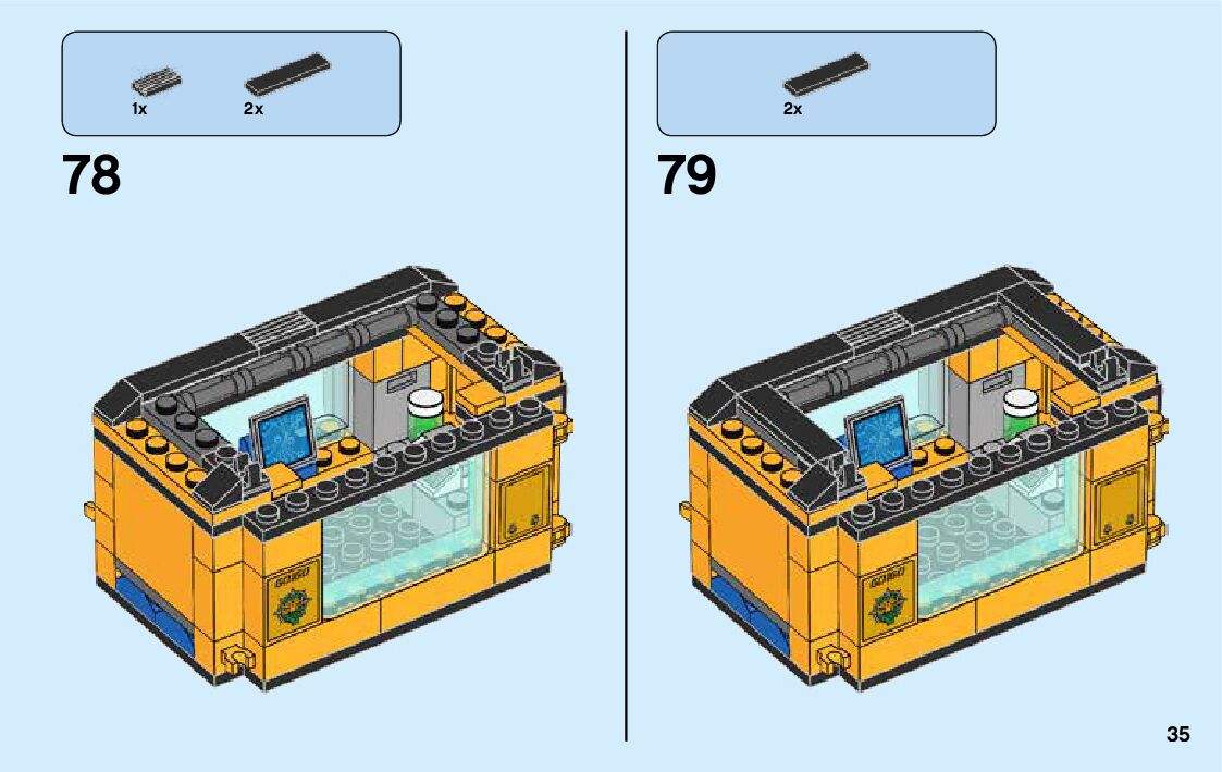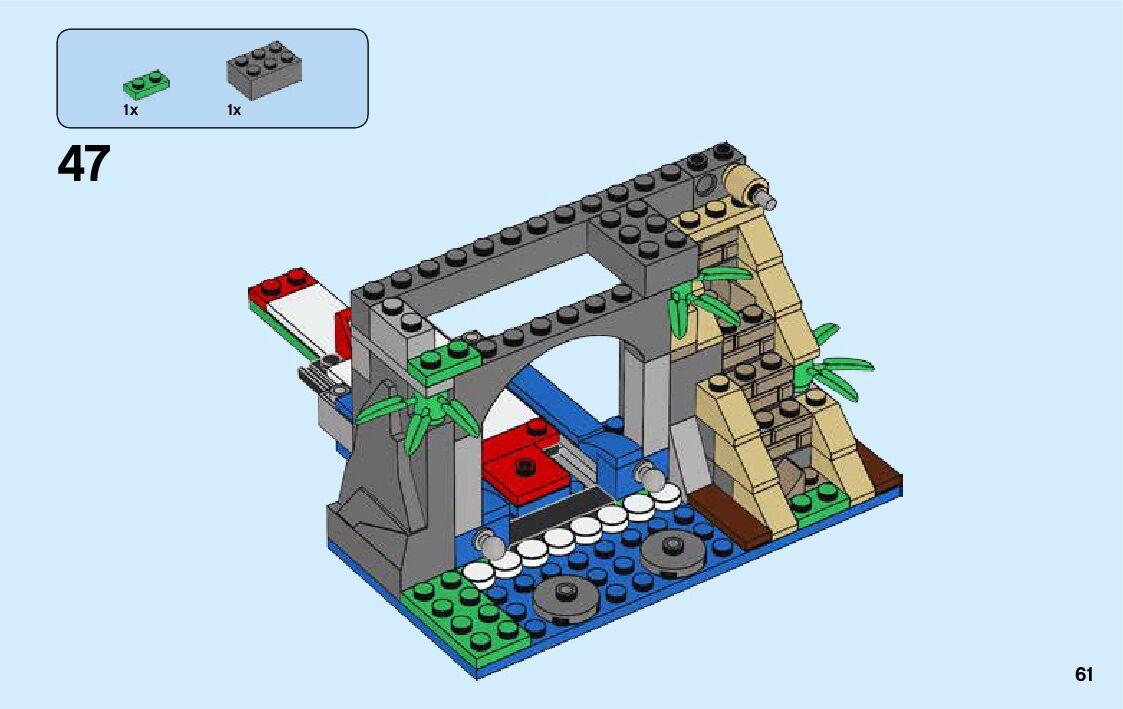 The assembly guide is prepared in a very understandable way for children and adult LEGO enthusiasts. A total of 188 picture galleries are shown, explaining the step-by-step construction stages for 3 different structures.