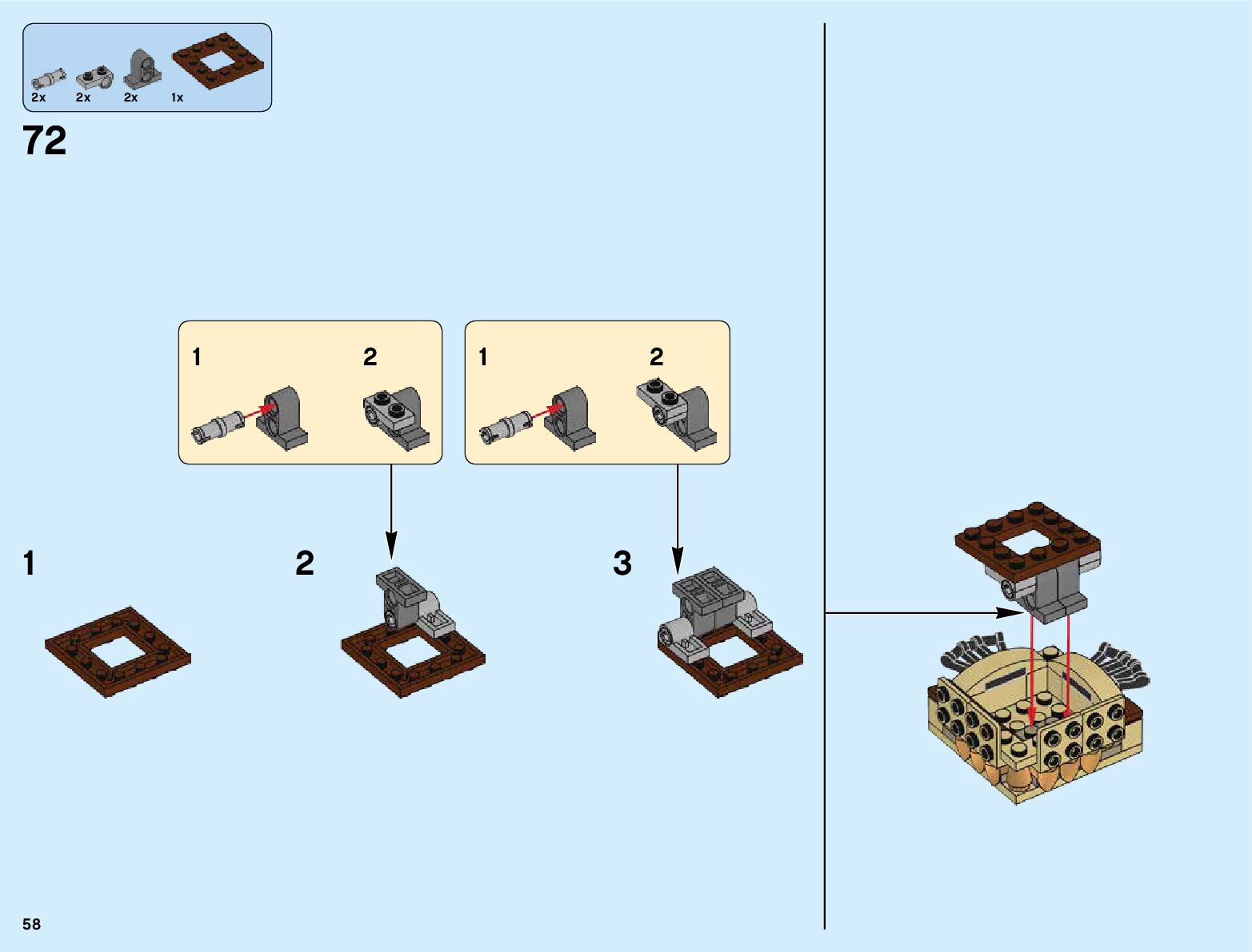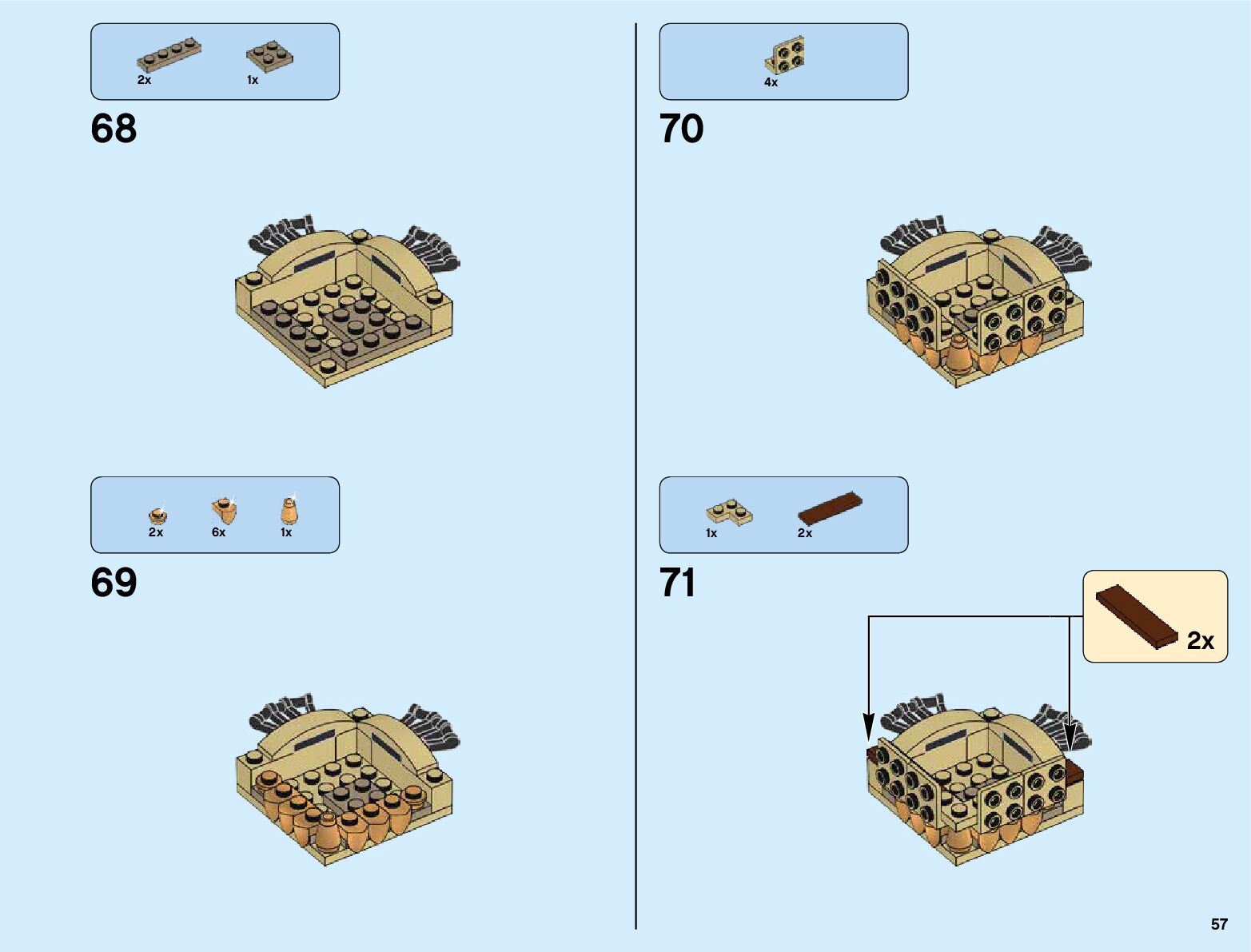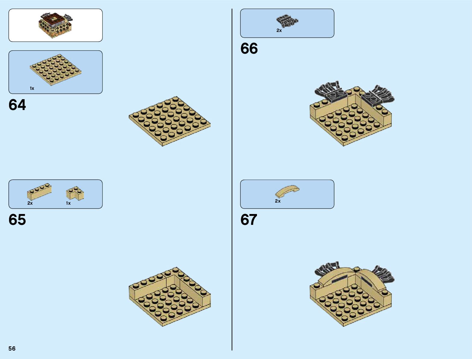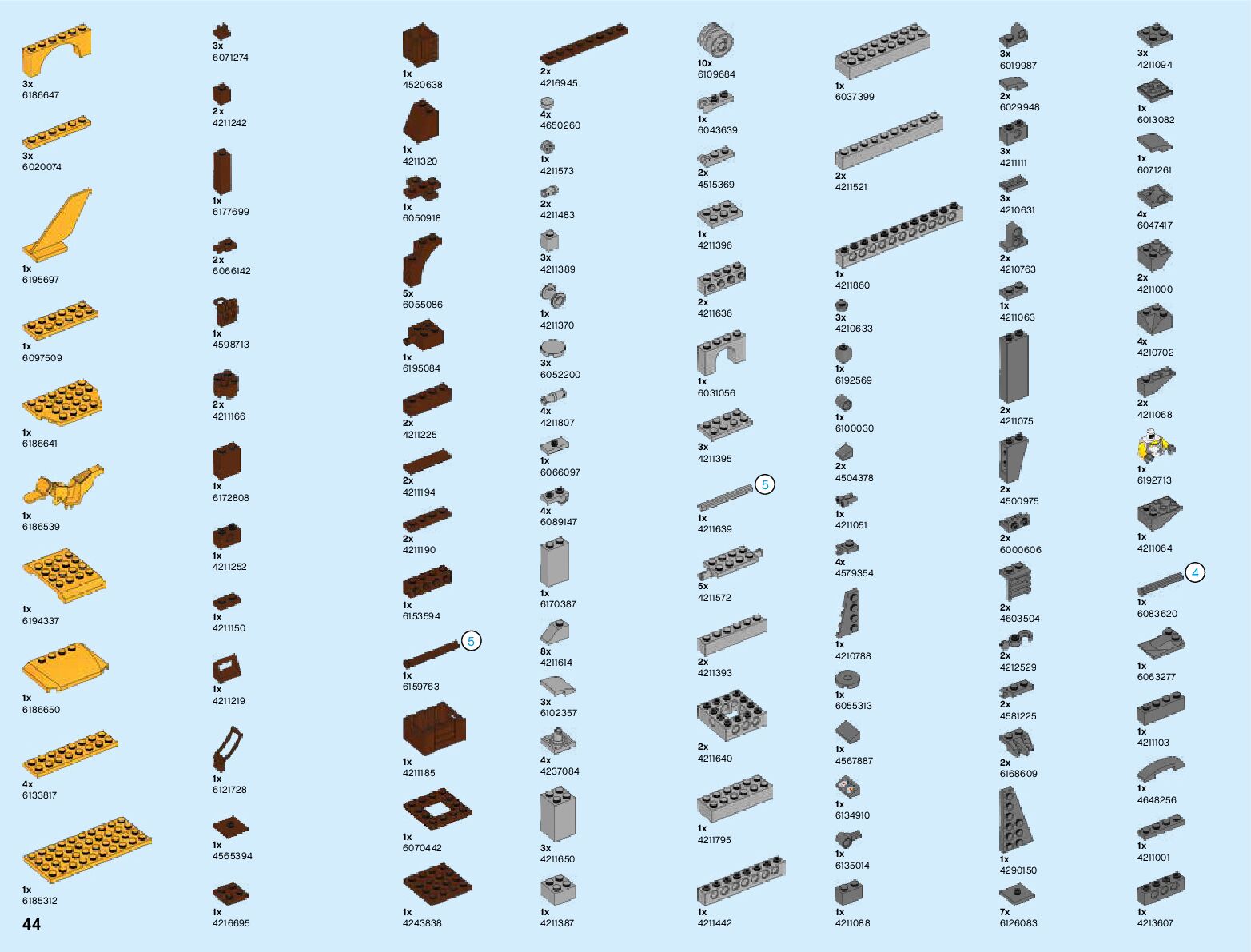 The assembly guide is prepared in a very understandable way for children and adult LEGO enthusiasts. A total of 224 picture galleries are shown, explaining the step-by-step construction stages for 4 different structures.