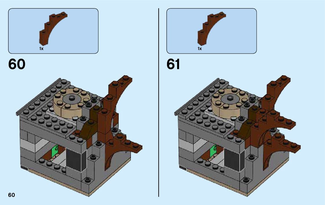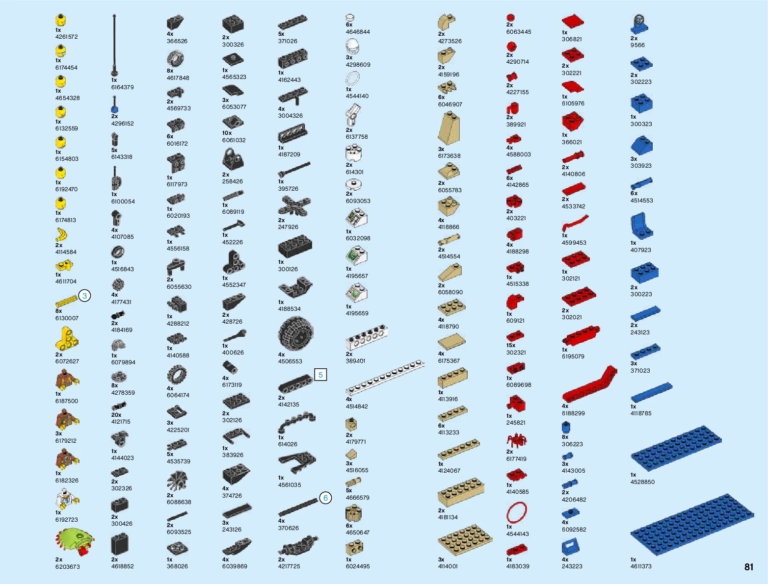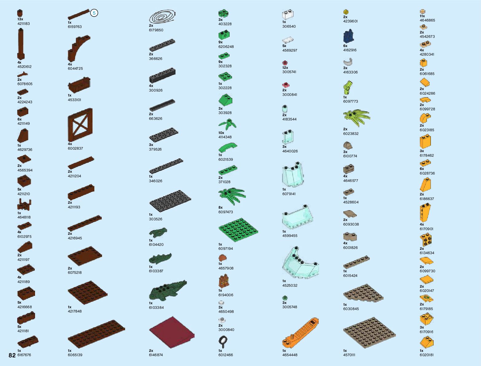 The assembly guide is prepared in a very understandable way for children and adult LEGO enthusiasts. A total of 328 picture galleries are shown, explaining the step-by-step construction stages for 5 different structures.
