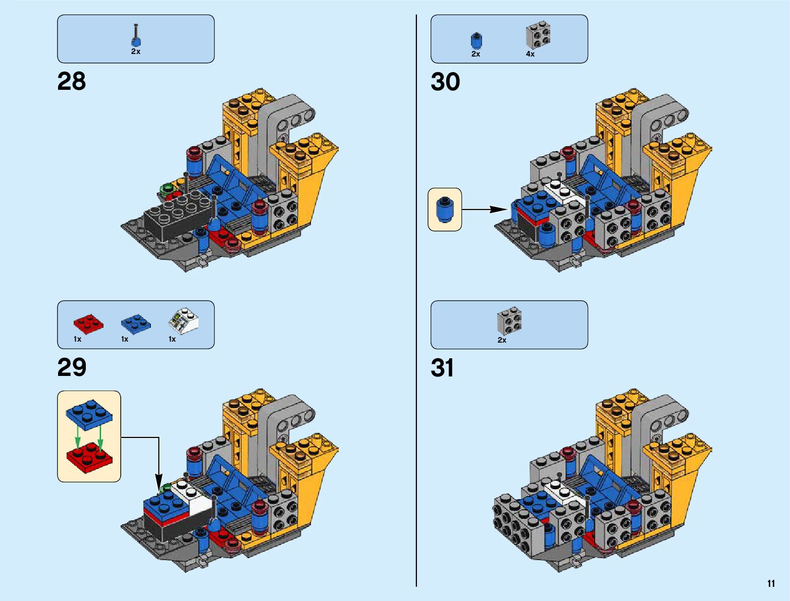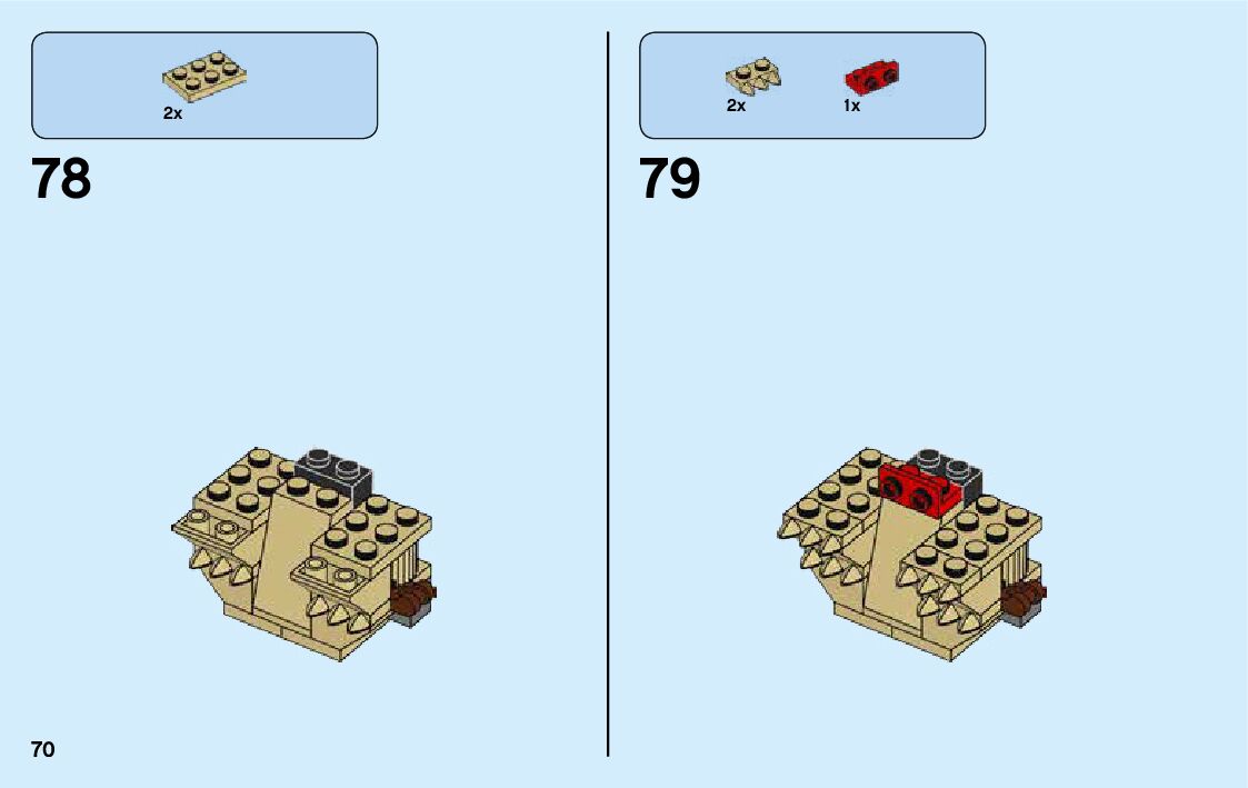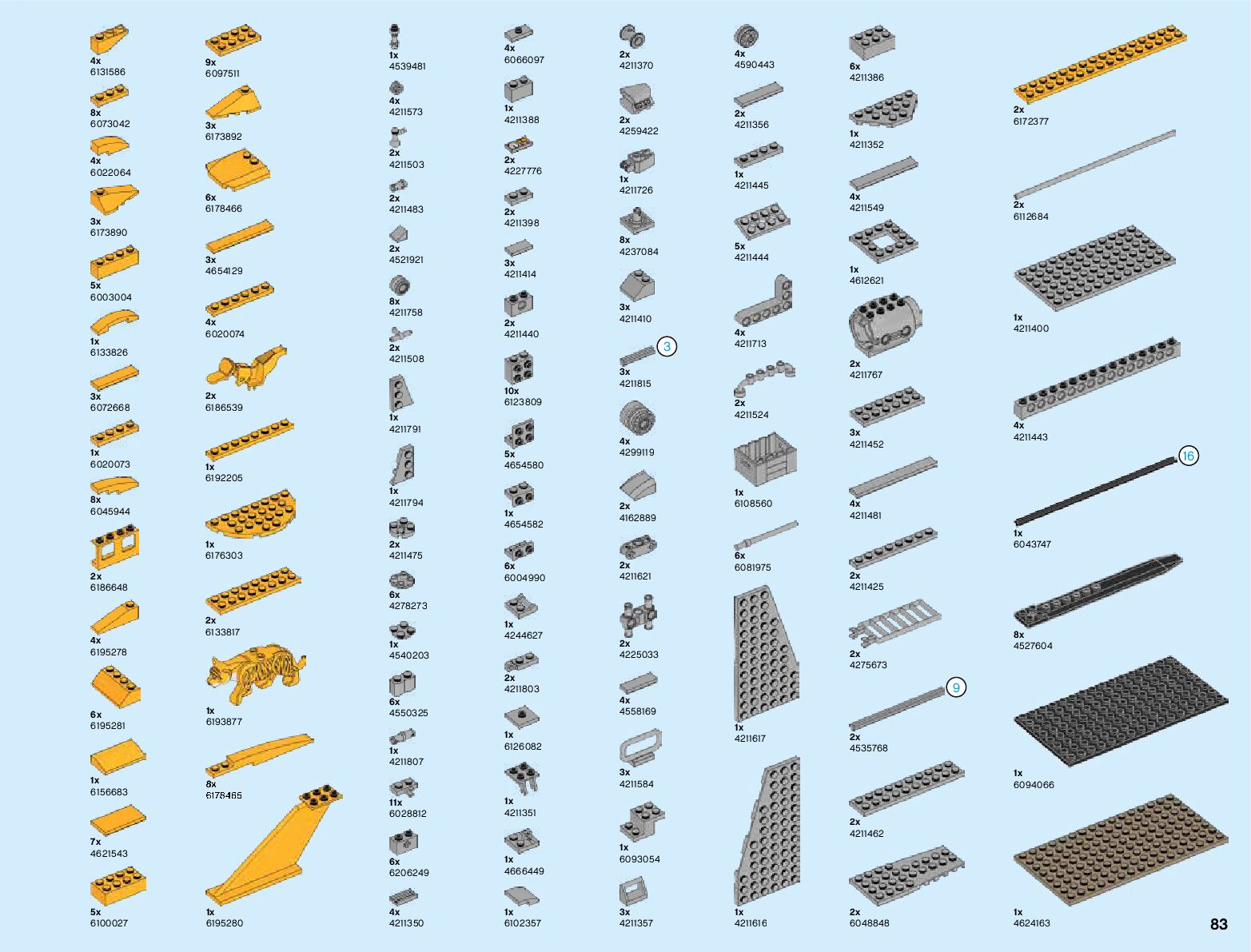 The assembly guide is prepared in a very understandable way for children and adult LEGO enthusiasts. A total of 328 picture galleries are shown, explaining the step-by-step construction stages for 5 different structures.