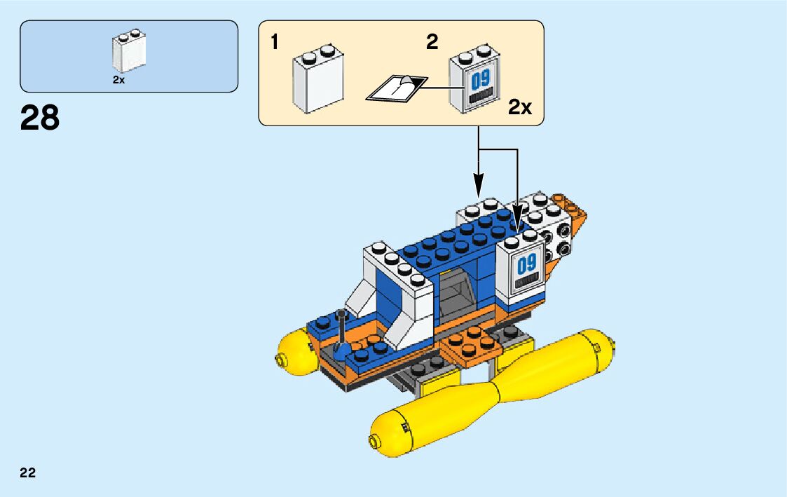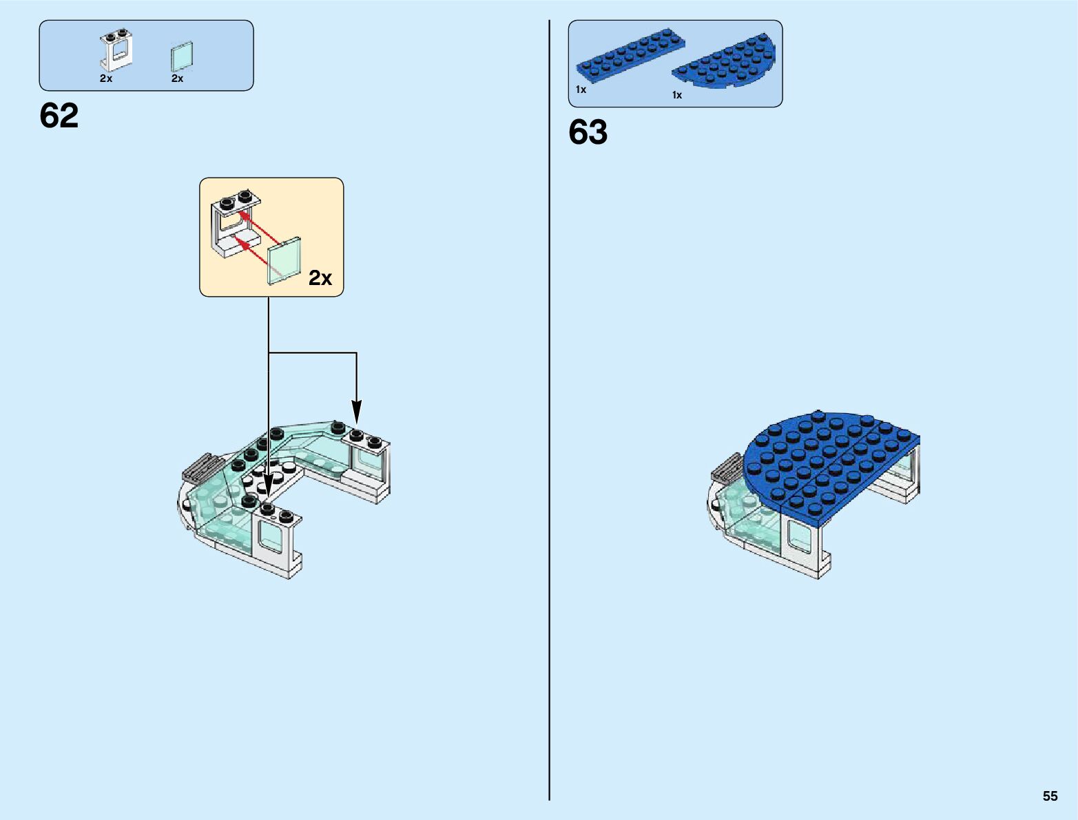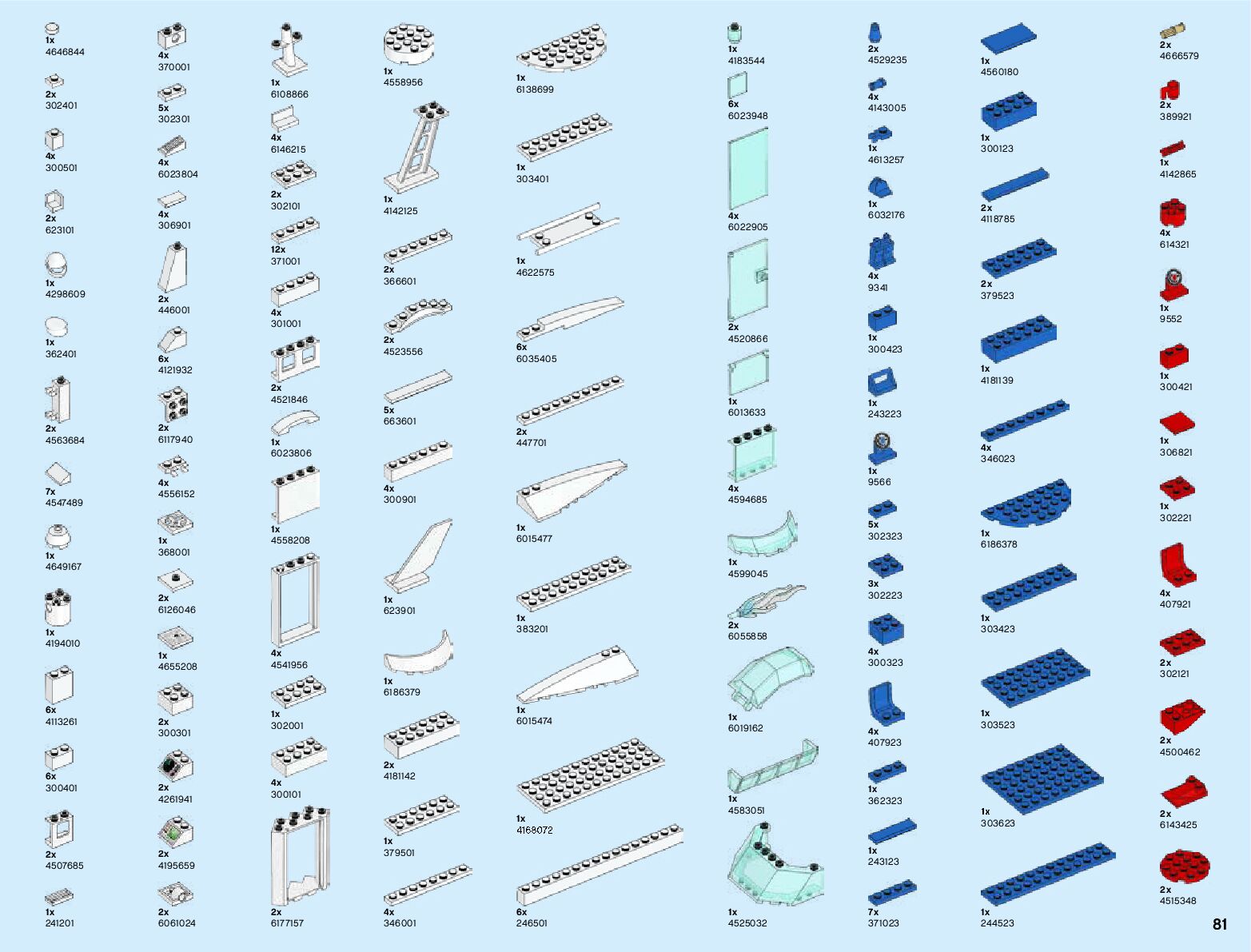 The assembly guide is prepared in a very understandable way for children and adult LEGO enthusiasts. A total of 276 picture galleries are shown, explaining the step-by-step construction stages for 5 different structures.