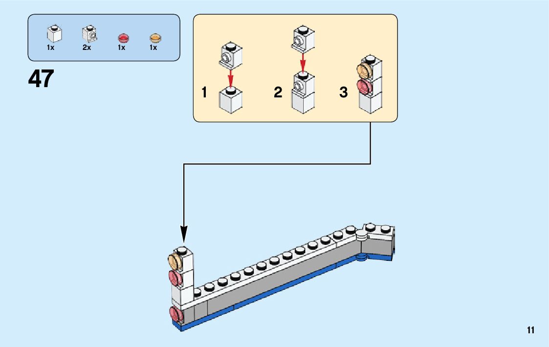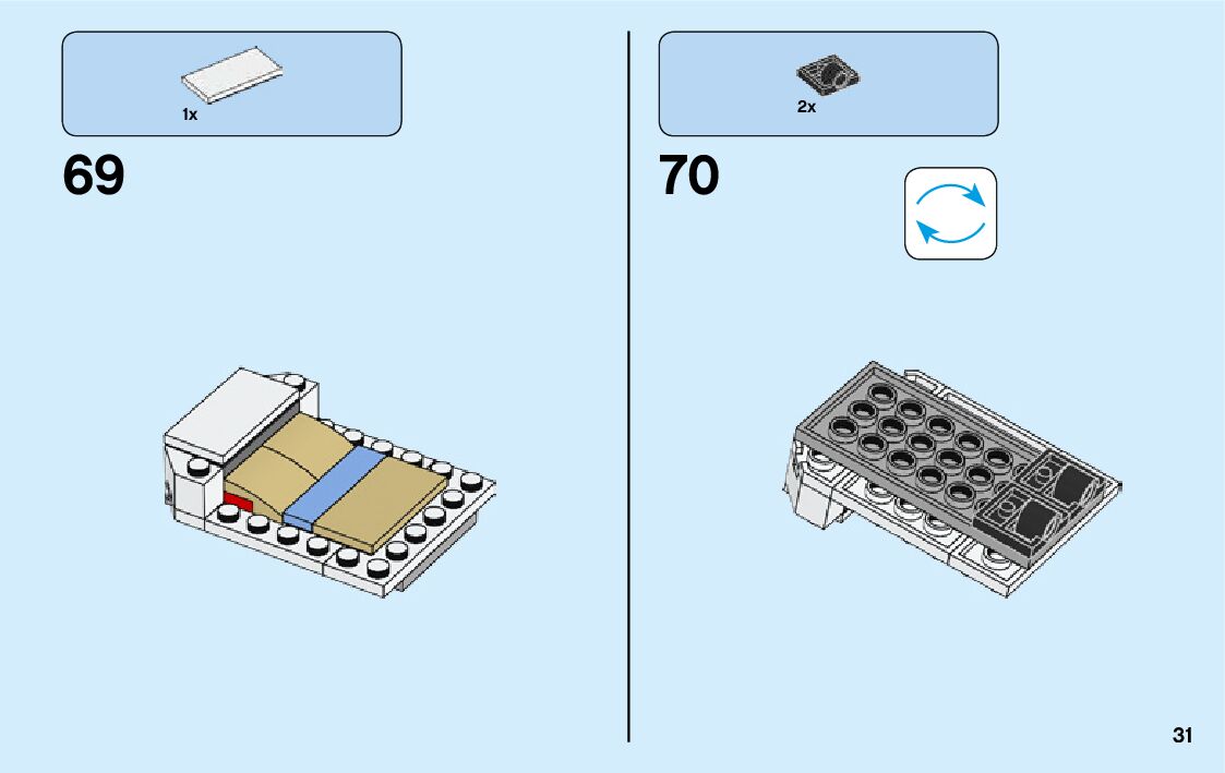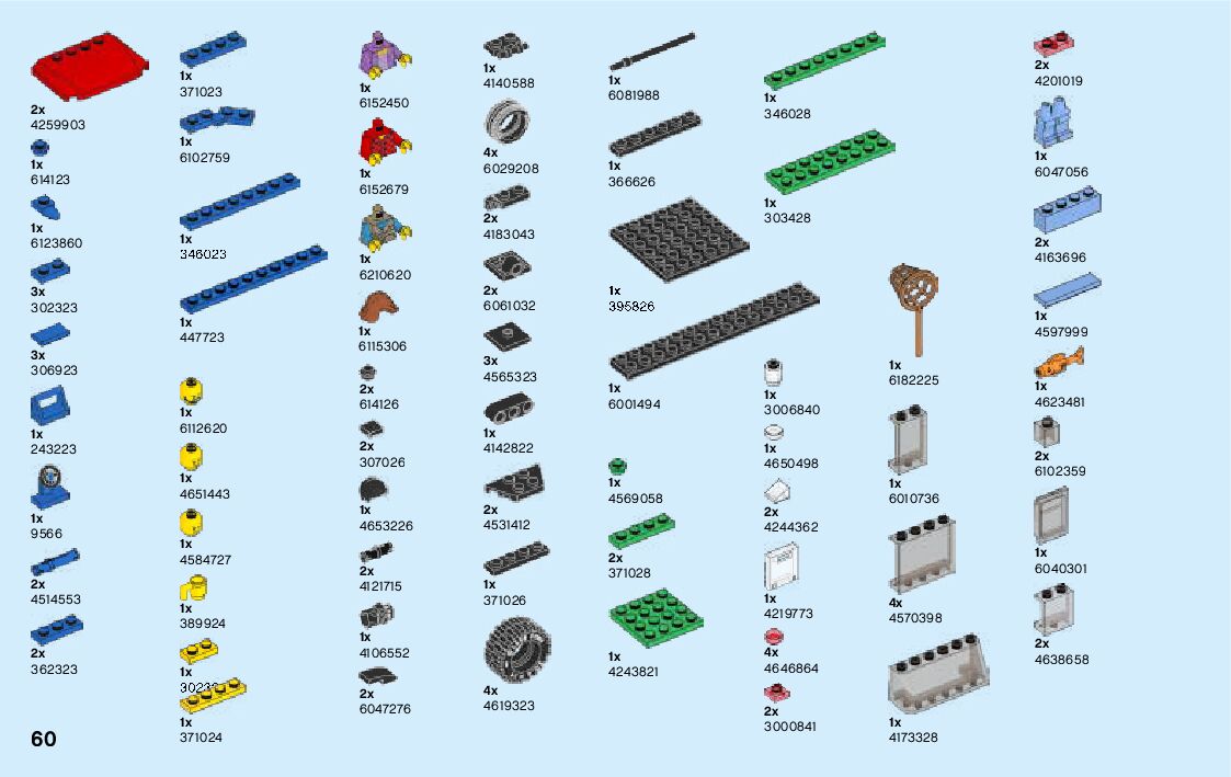 The assembly guide is prepared in a very understandable way for children and adult LEGO enthusiasts. A total of 140 picture galleries are shown, explaining the step-by-step construction stages for 2 different structures.