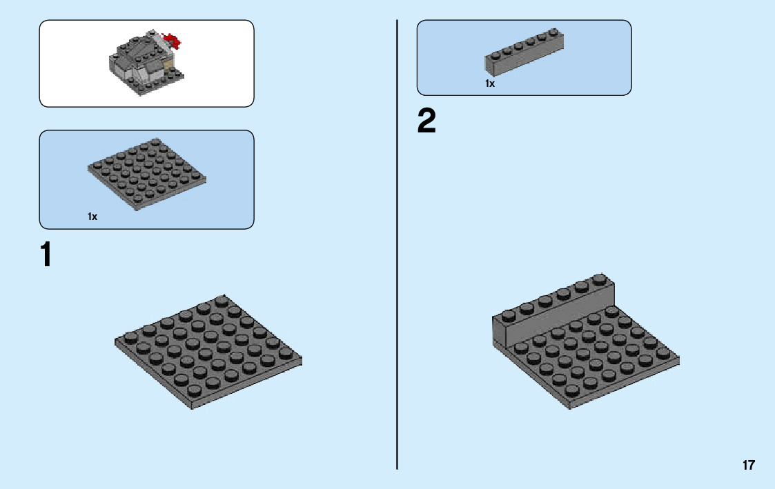 The assembly guide is prepared in a very understandable way for children and adult LEGO enthusiasts. A total of 32 picture galleries are shown, explaining the step-by-step construction stages for 1 different structures.