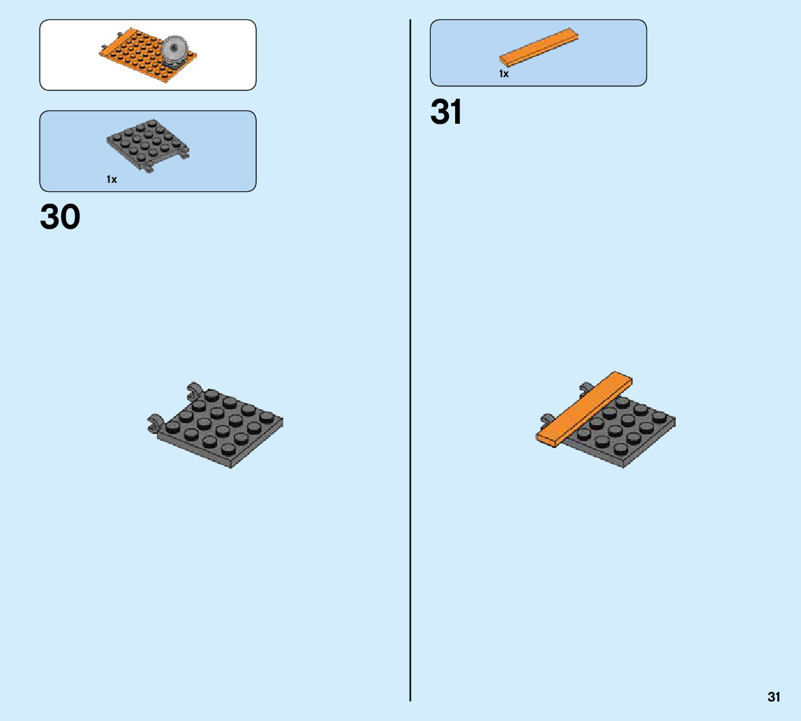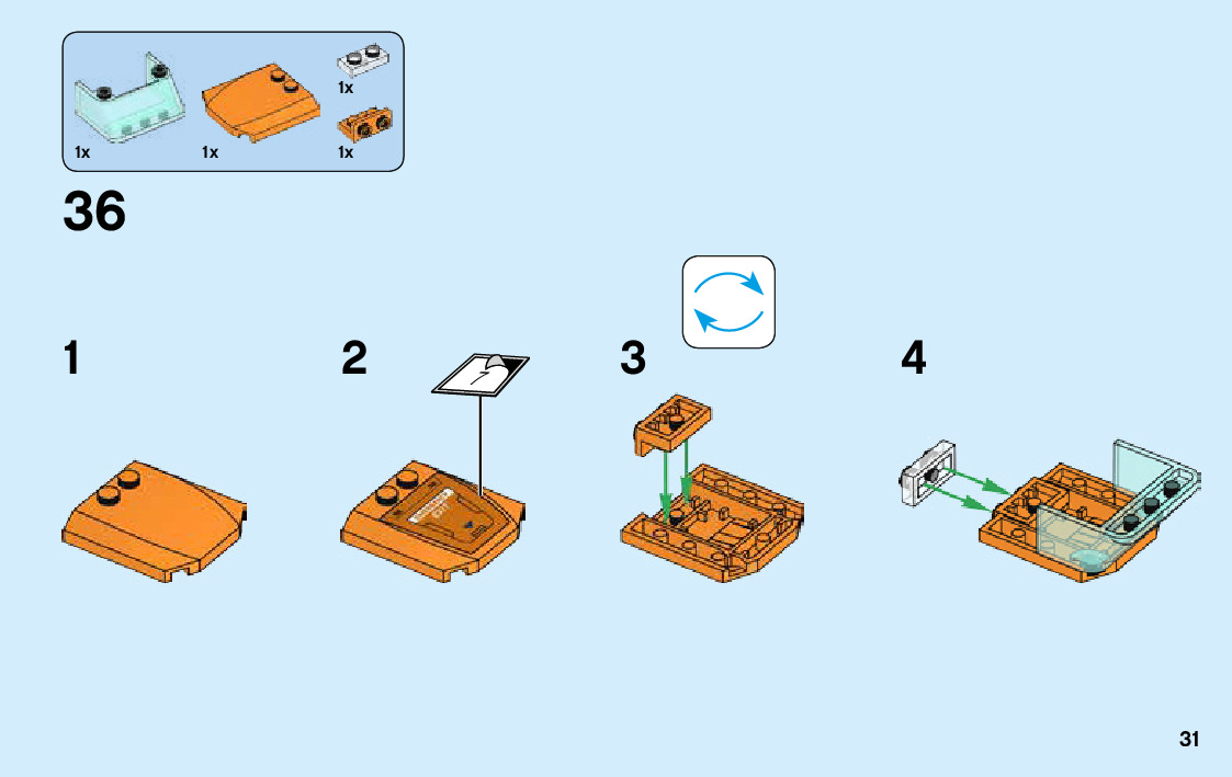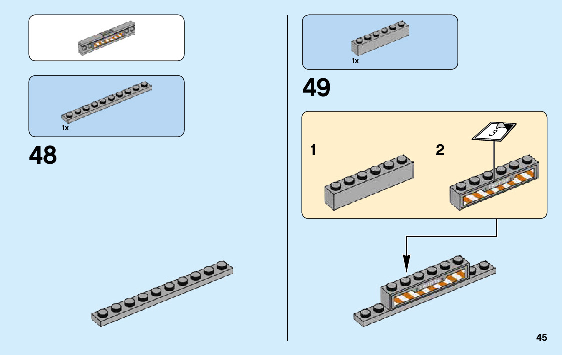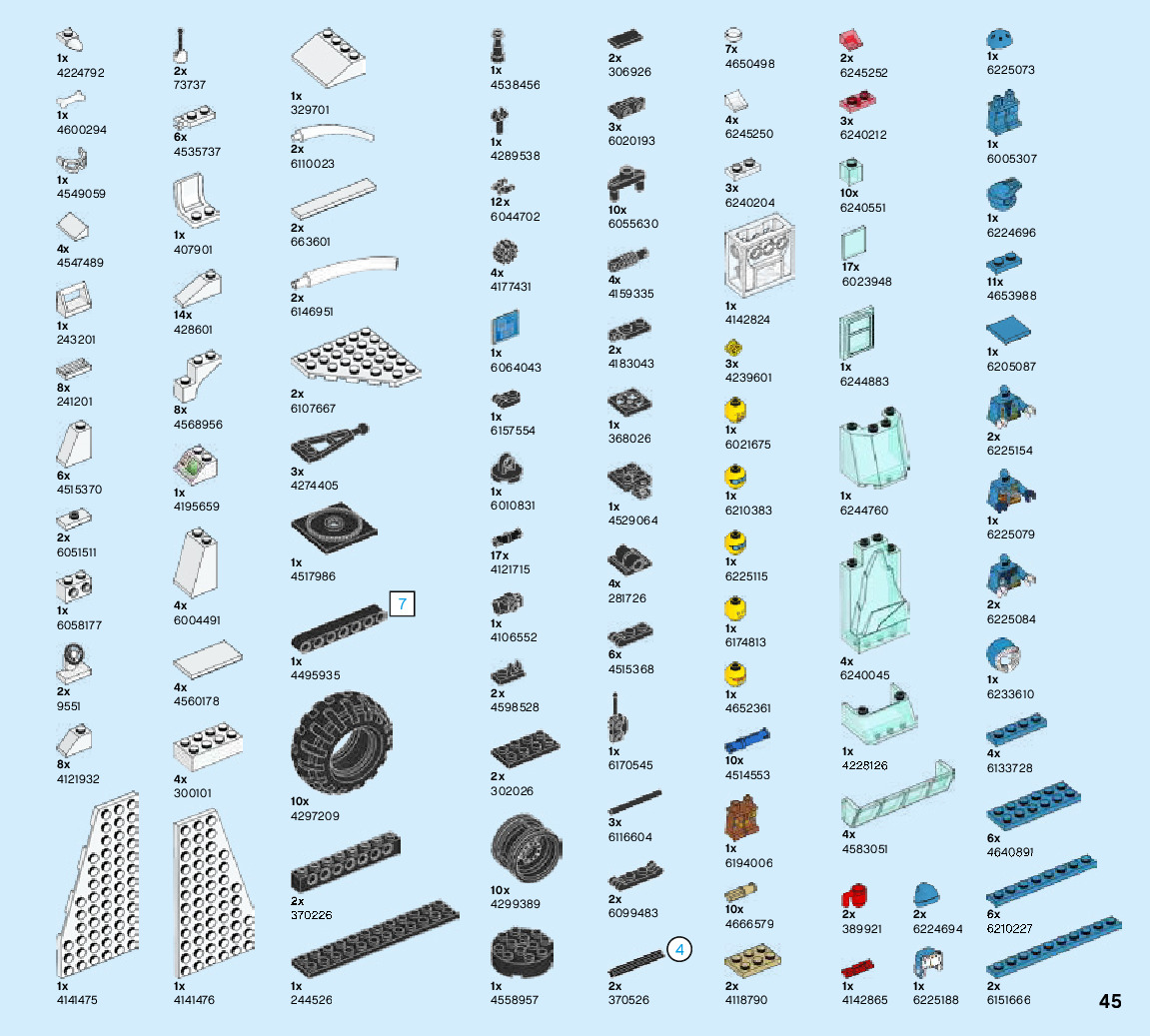 The assembly guide is prepared in a very understandable way for children and adult LEGO enthusiasts. A total of 1180 picture galleries are shown, explaining the step-by-step construction stages for 4 different structures.