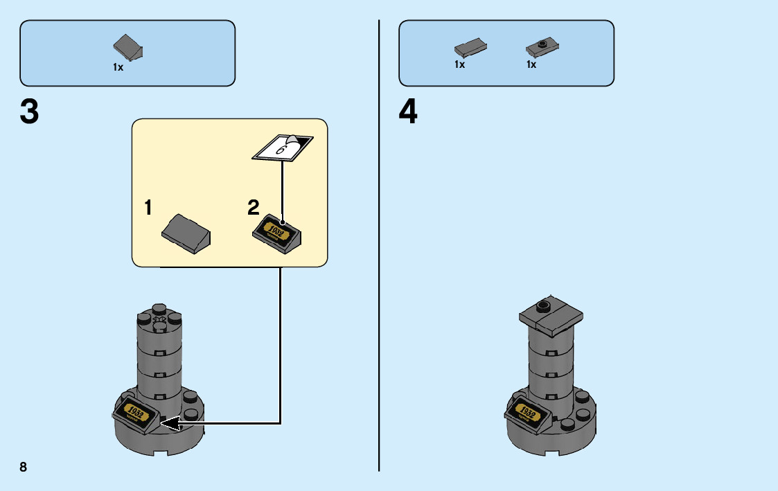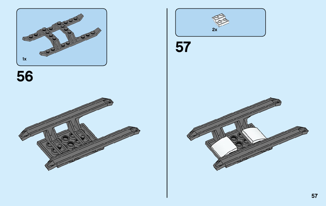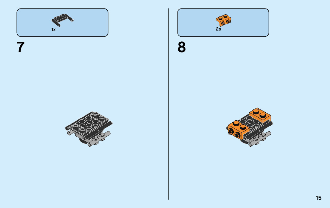 The assembly guide is prepared in a very understandable way for children and adult LEGO enthusiasts. A total of 500 picture galleries are shown, explaining the step-by-step construction stages for 2 different structures.