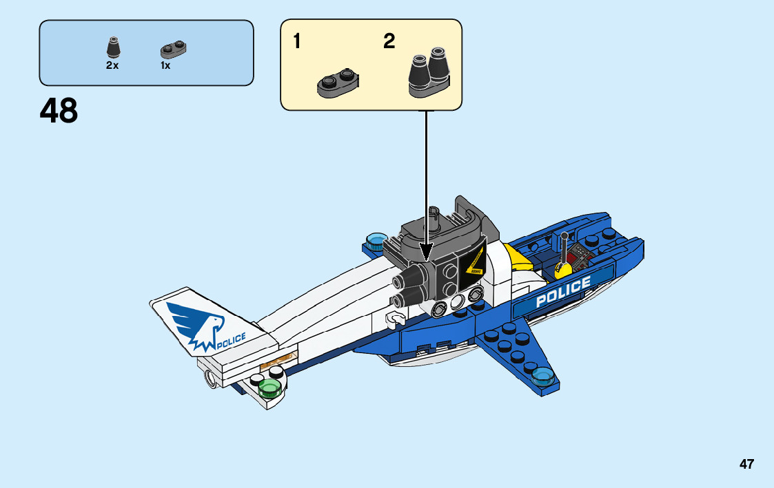 This page shares information about LEGO 60207 Sky Police Drone Chase manual, LEGO 60207 PDF instructions, LEGO 60207 Sky Police Drone Chase building guide online, How to build 60207 Sky Police Drone Chase LEGO.