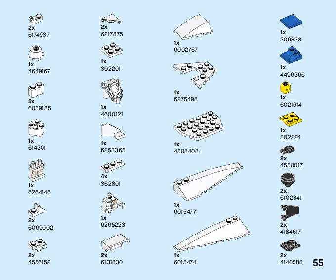 The assembly guide is prepared in a very understandable way for children and adult LEGO enthusiasts. A total of 56 picture galleries are shown, explaining the step-by-step construction stages for 1 different structures.