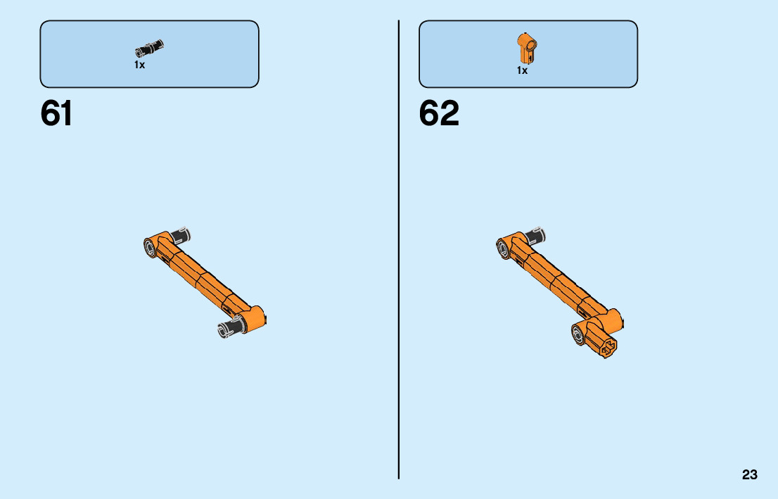 The assembly guide is prepared in a very understandable way for children and adult LEGO enthusiasts. A total of 672 picture galleries are shown, explaining the step-by-step construction stages for 2 different structures.