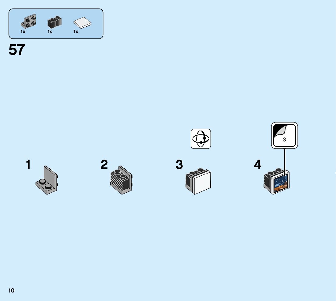 The assembly guide is prepared in a very understandable way for children and adult LEGO enthusiasts. A total of 160 picture galleries are shown, explaining the step-by-step construction stages for 3 different structures.