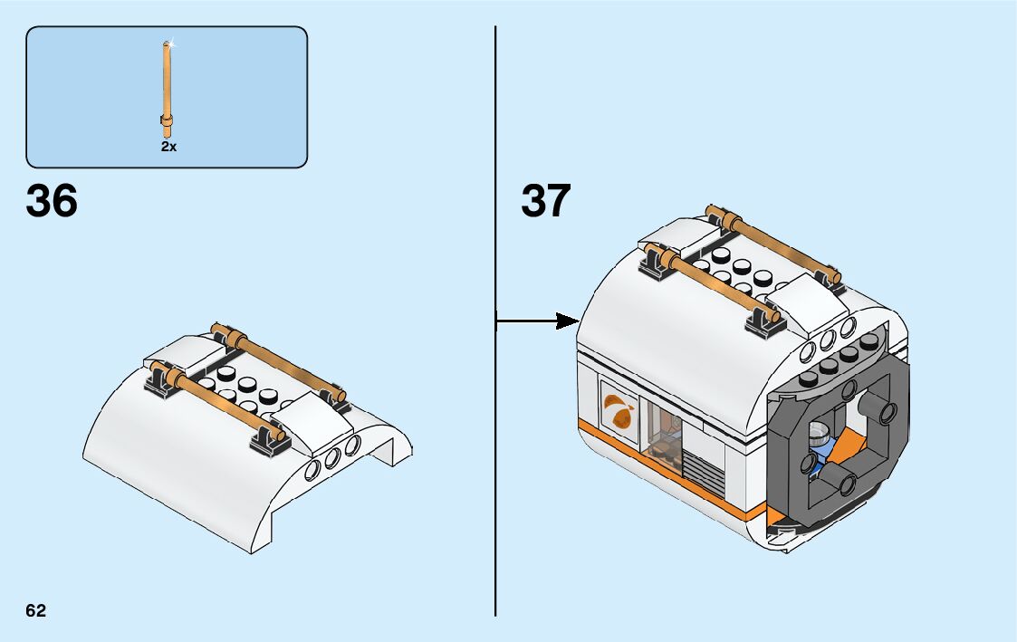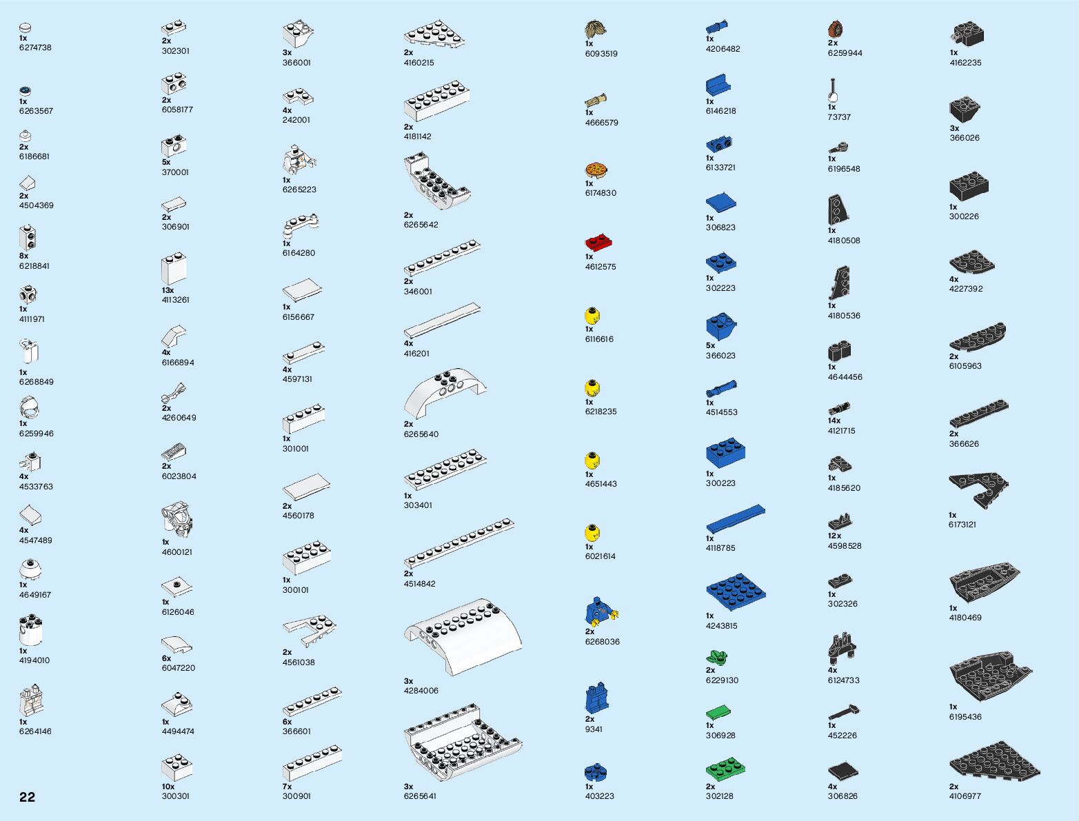 The assembly guide is prepared in a very understandable way for children and adult LEGO enthusiasts. A total of 172 picture galleries are shown, explaining the step-by-step construction stages for 4 different structures.